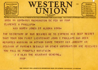 In January of 1945, 22 year-old John Phillips of Waterloo was part of a group of replacement troops sent to the 106th Infantry Division fighting the Battle of the Bulge.