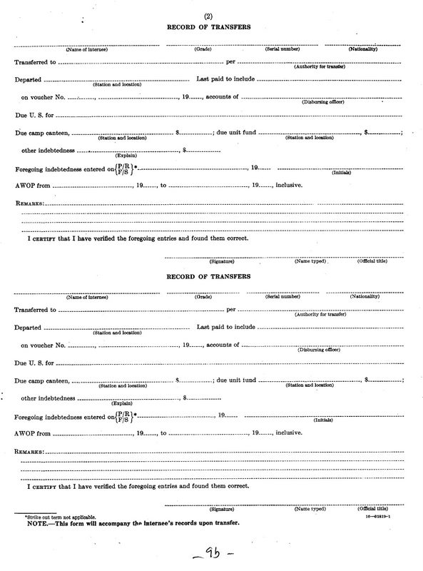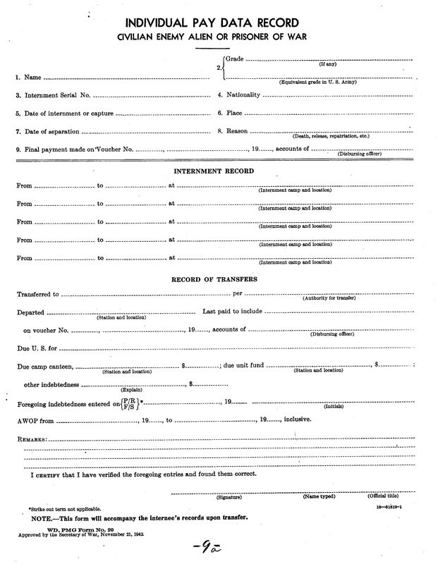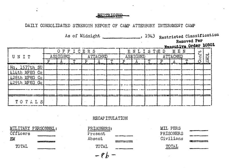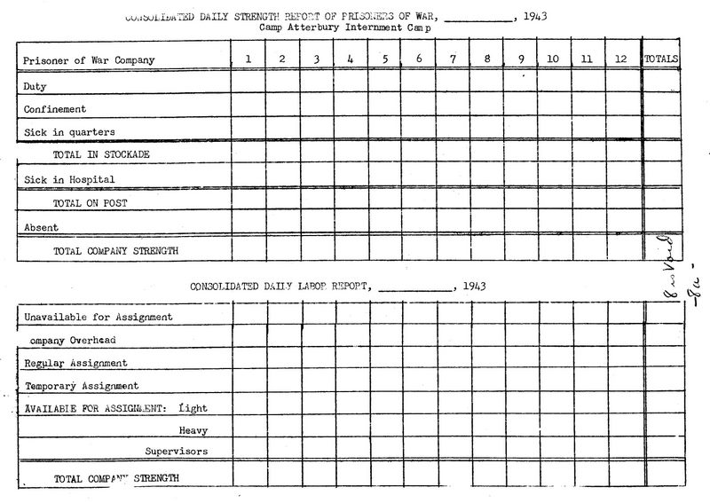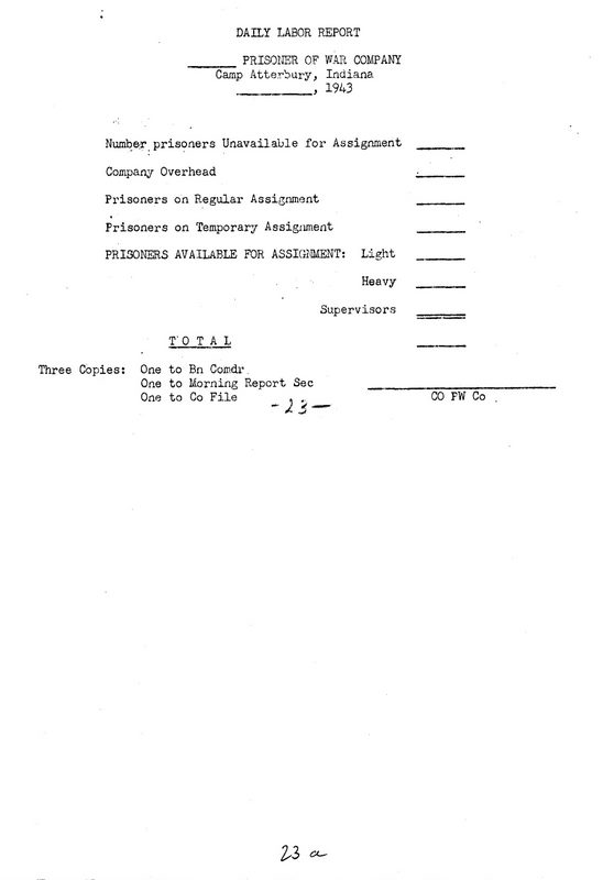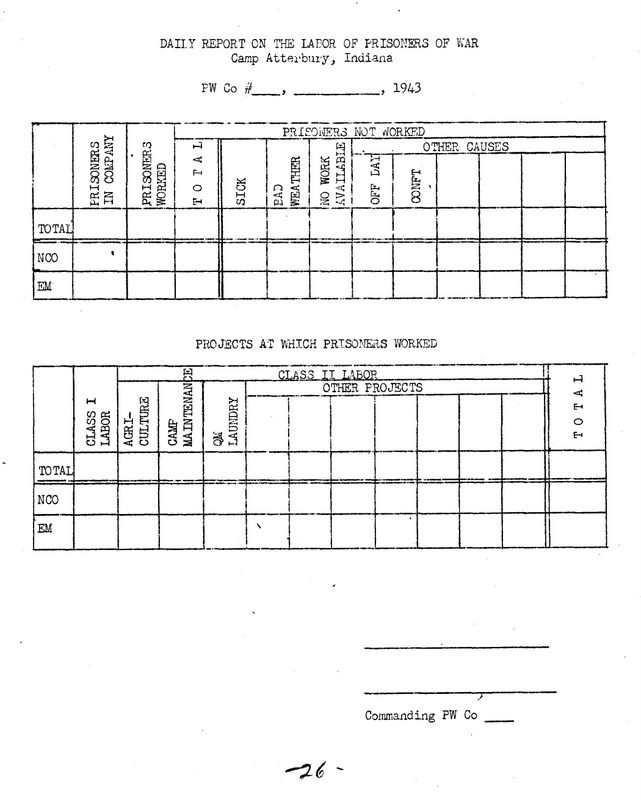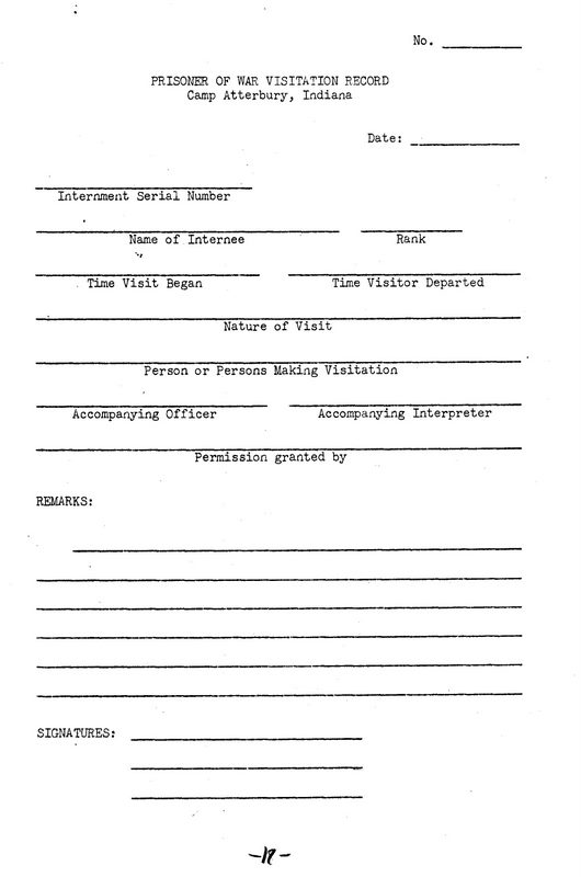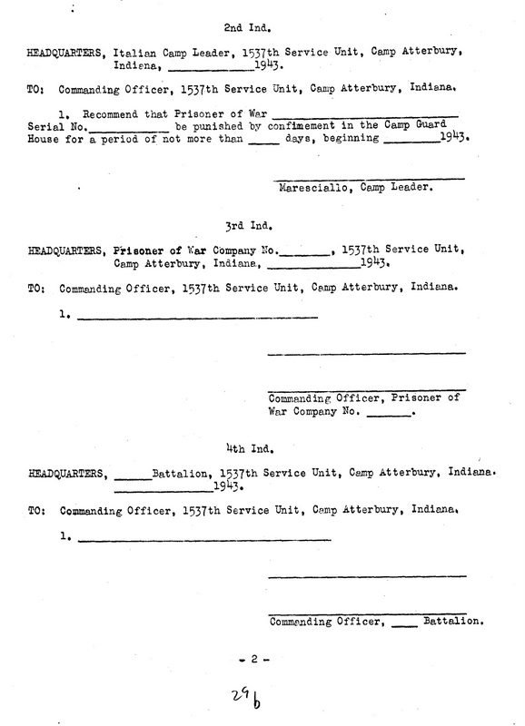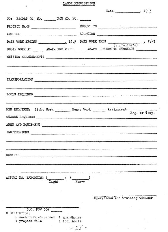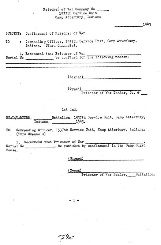 | Various Forms Used by the 1537th Service Unit at Camp Atterbury Prisoner of War Cpmpound |