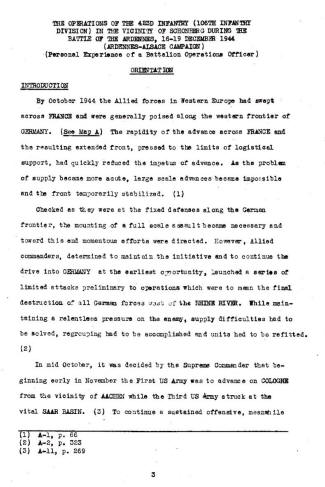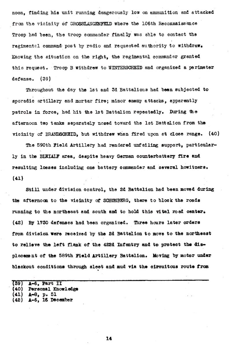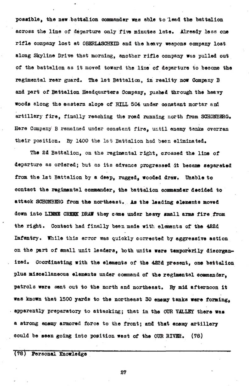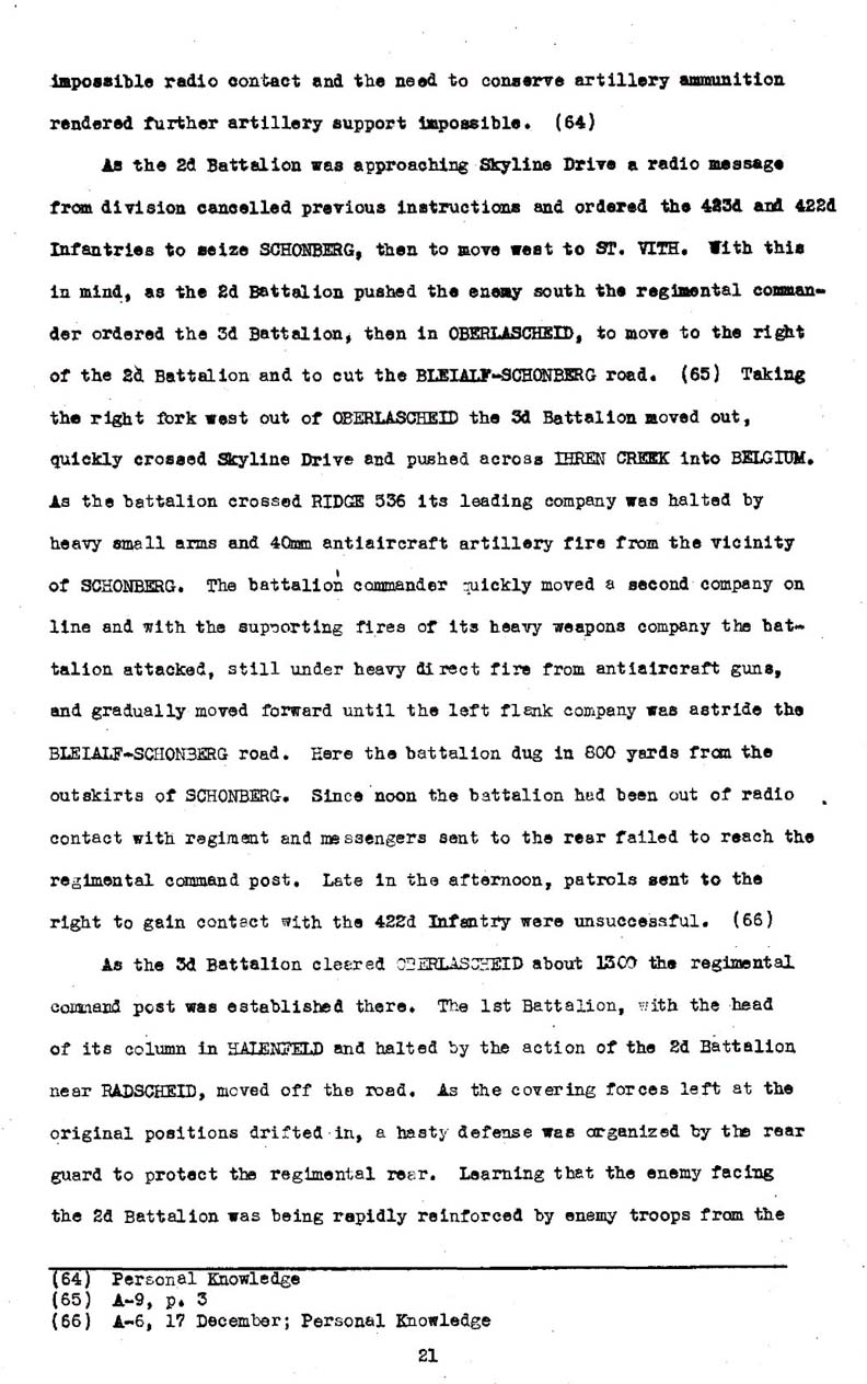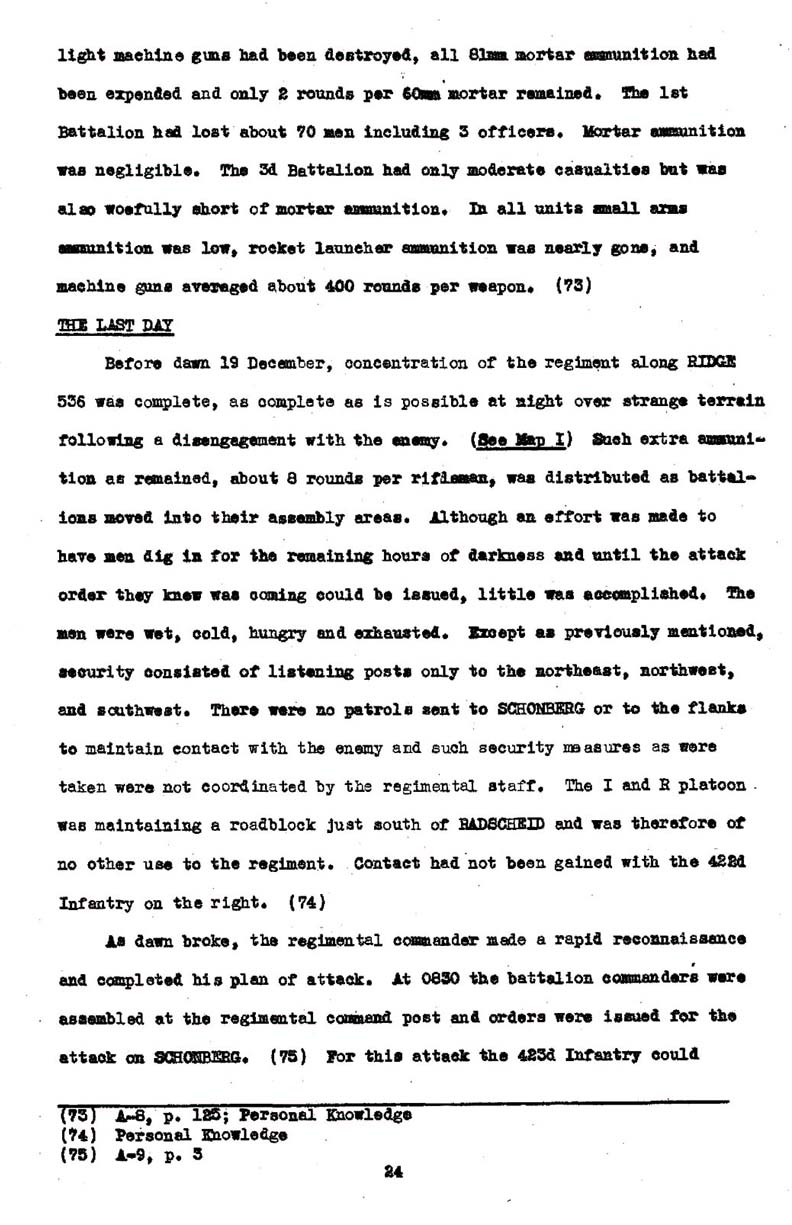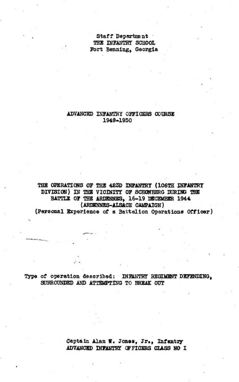 Infantry Division) in the Vicinity of Schonberg During the Battle of the Ardennes, 16 - 19, 1944. Personal Experiences of Captain Alan W. Jones, Jr. |