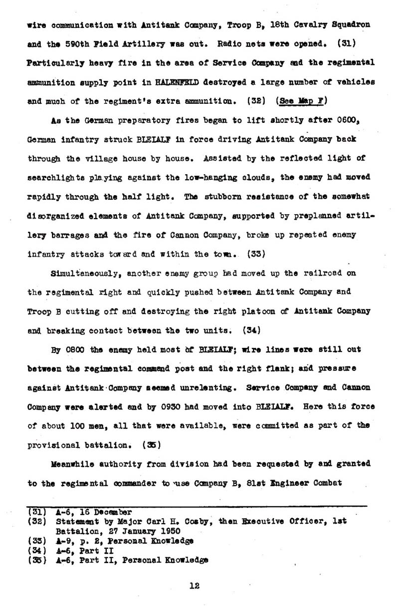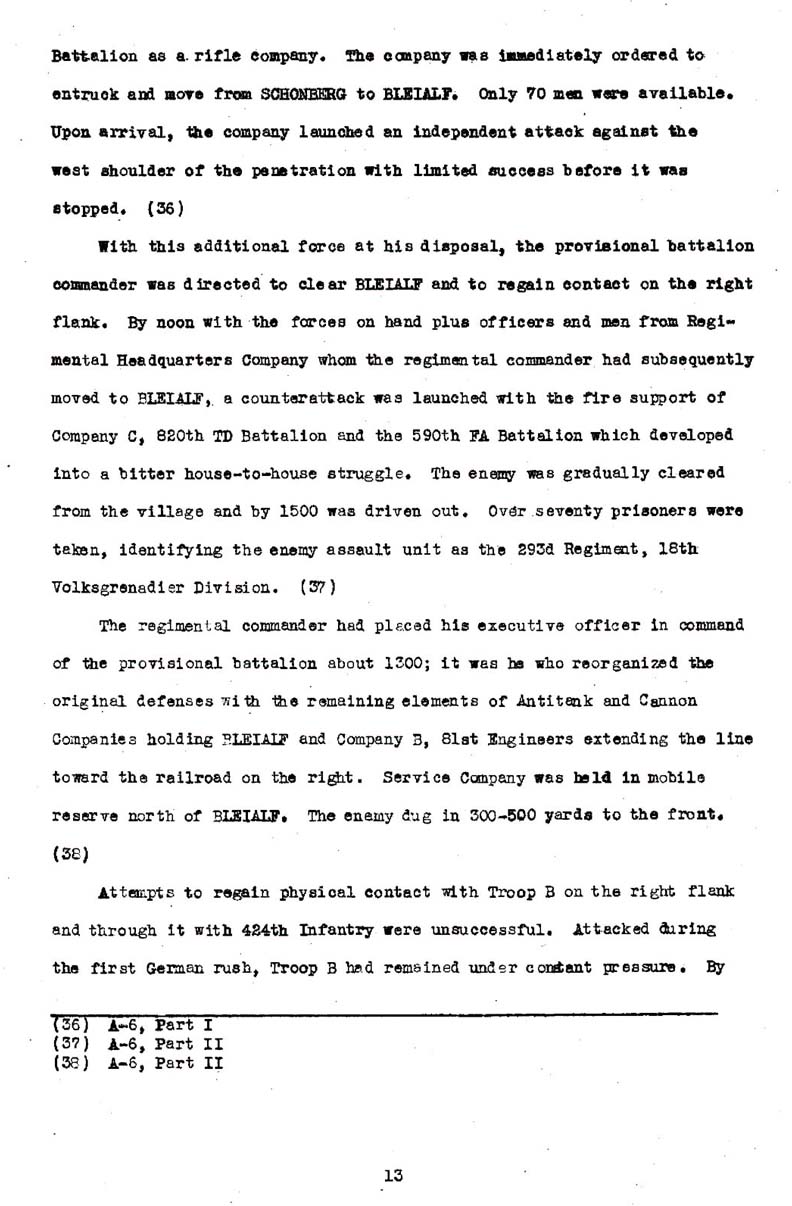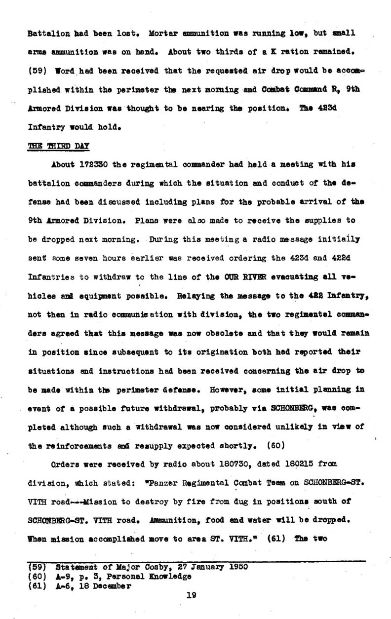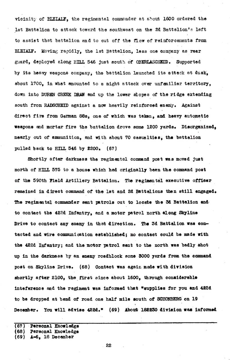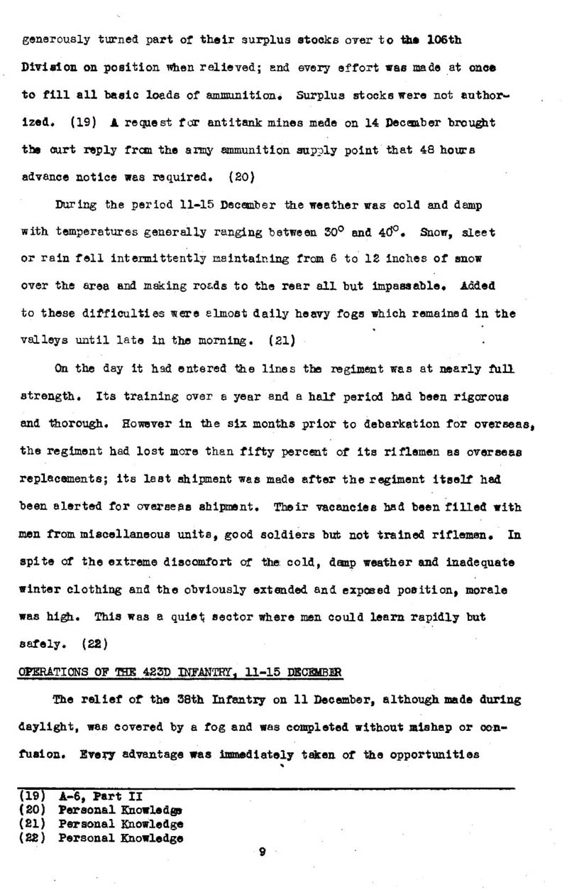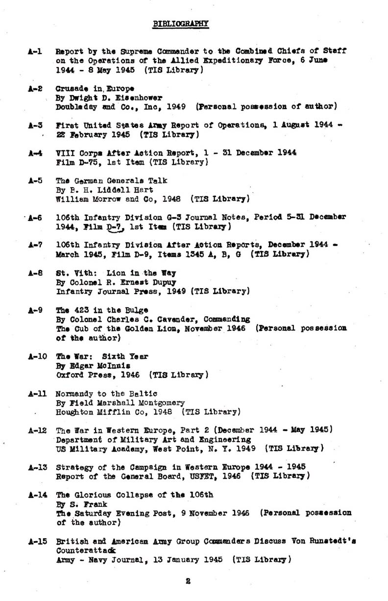 Infantry Division) in the Vicinity of Schonberg During the Battle of the Ardennes, 16 - 19, 1944. Personal Experiences of Captain Alan W. Jones, Jr. |