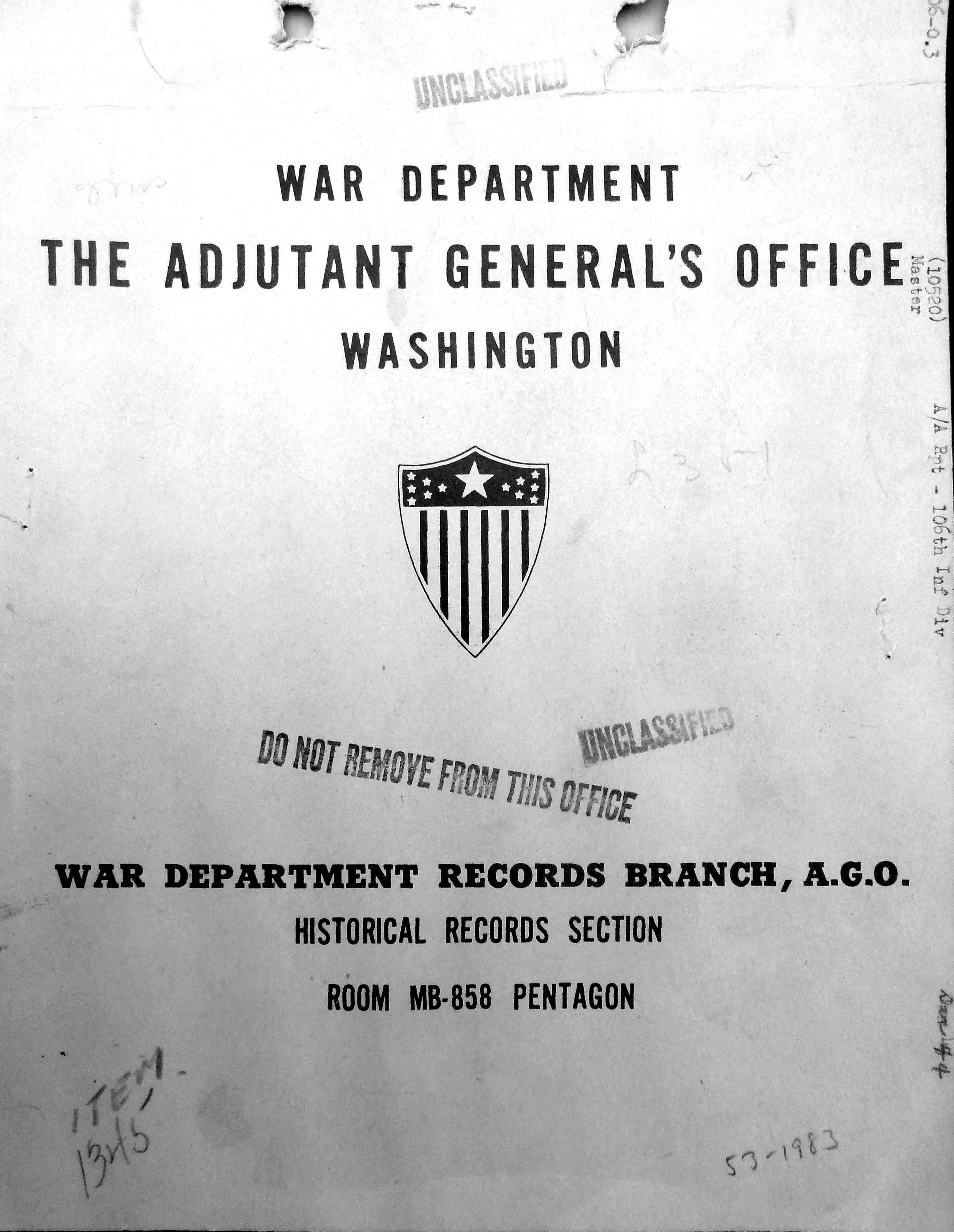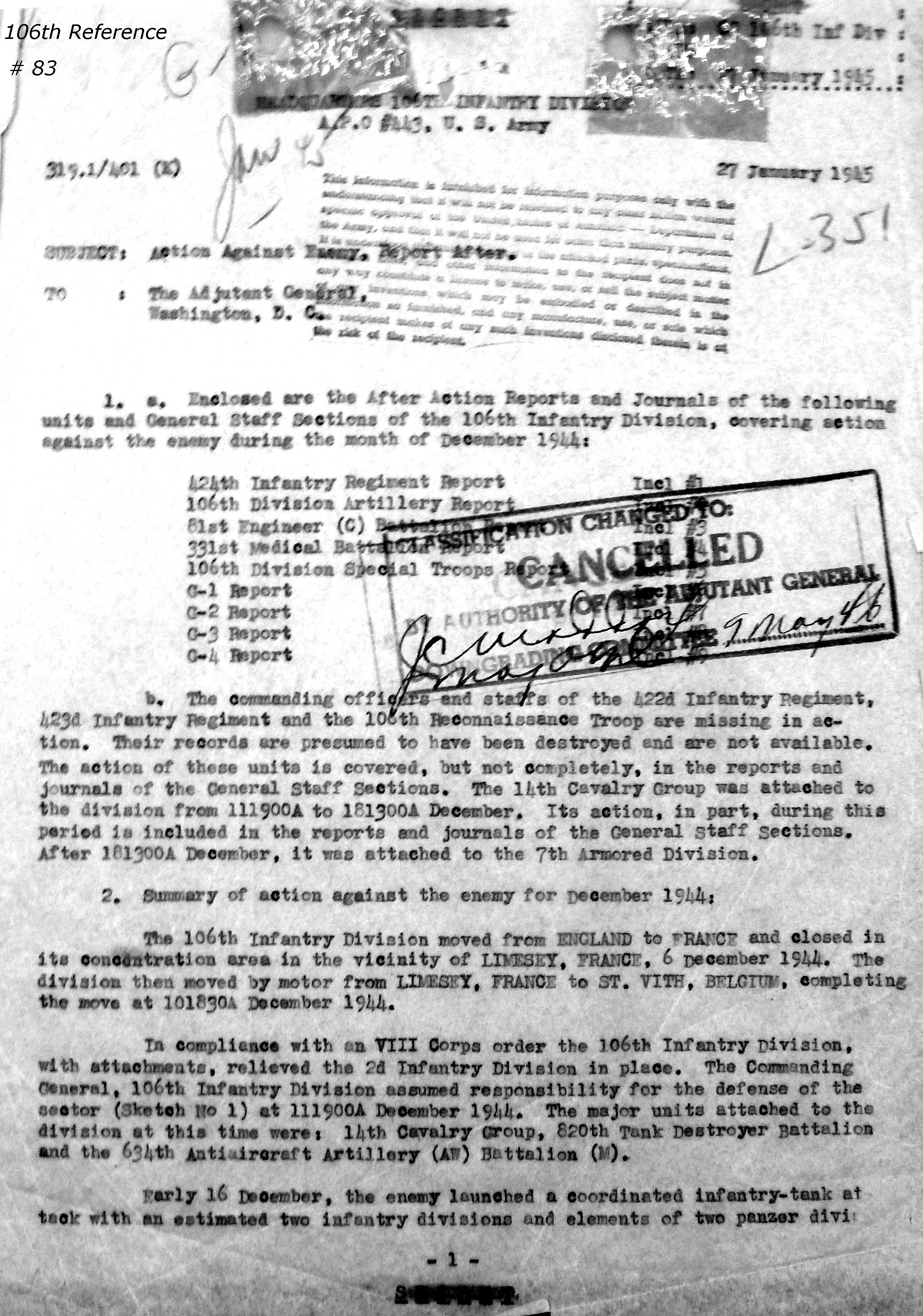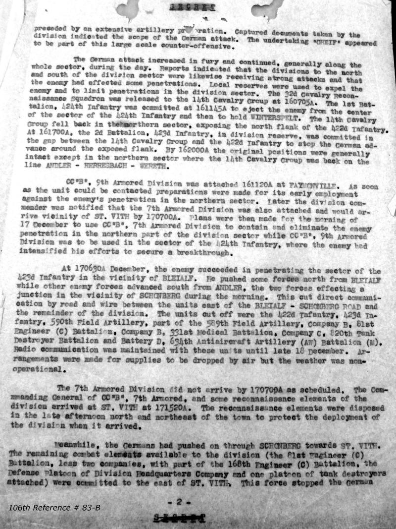 106th Division Reference # 83 After Action Report 12/1944