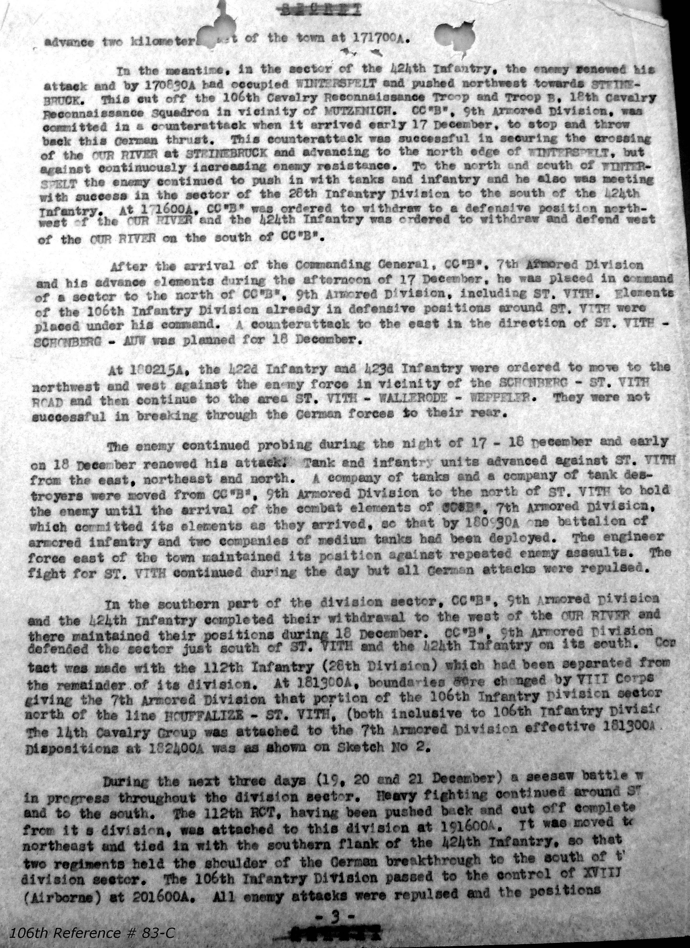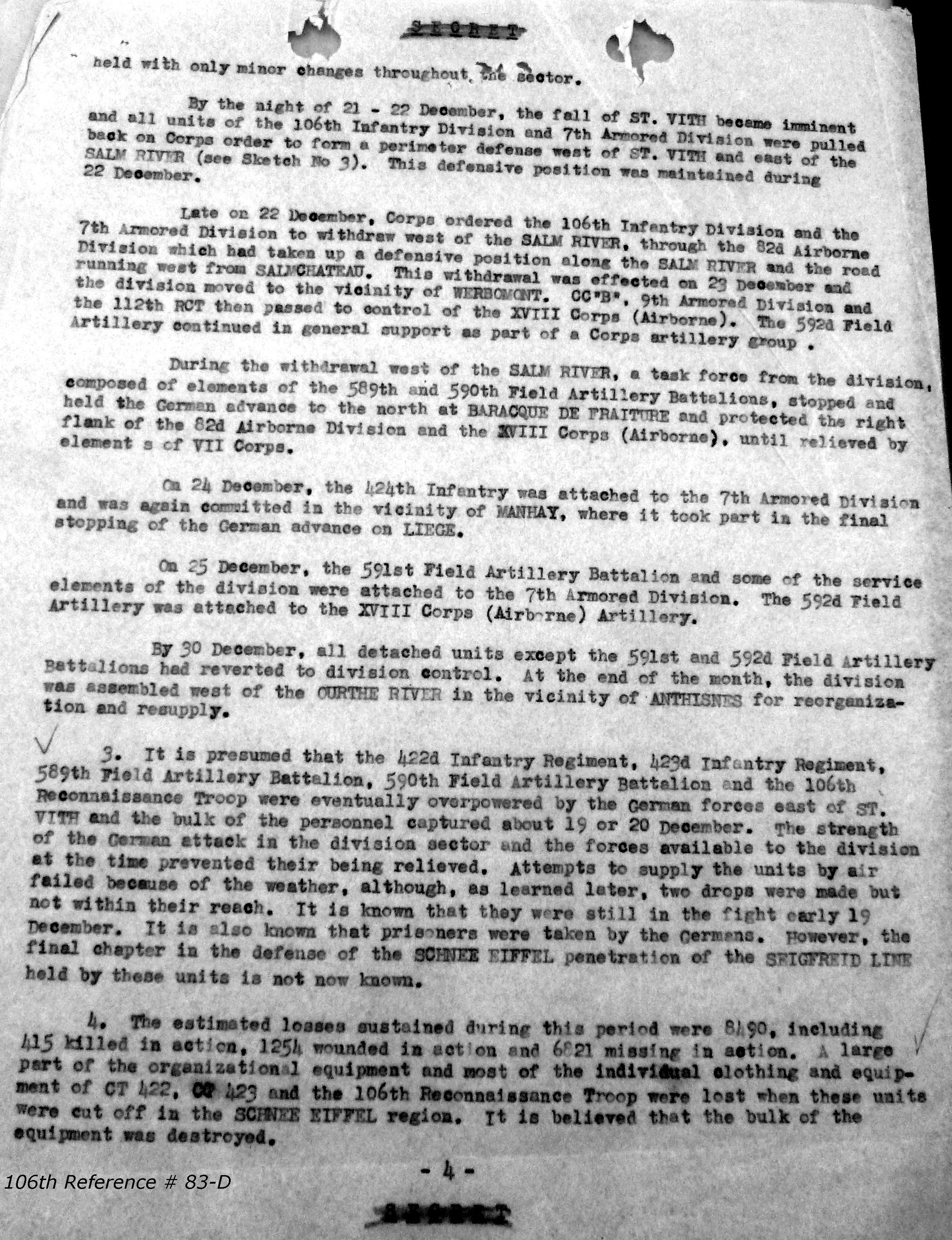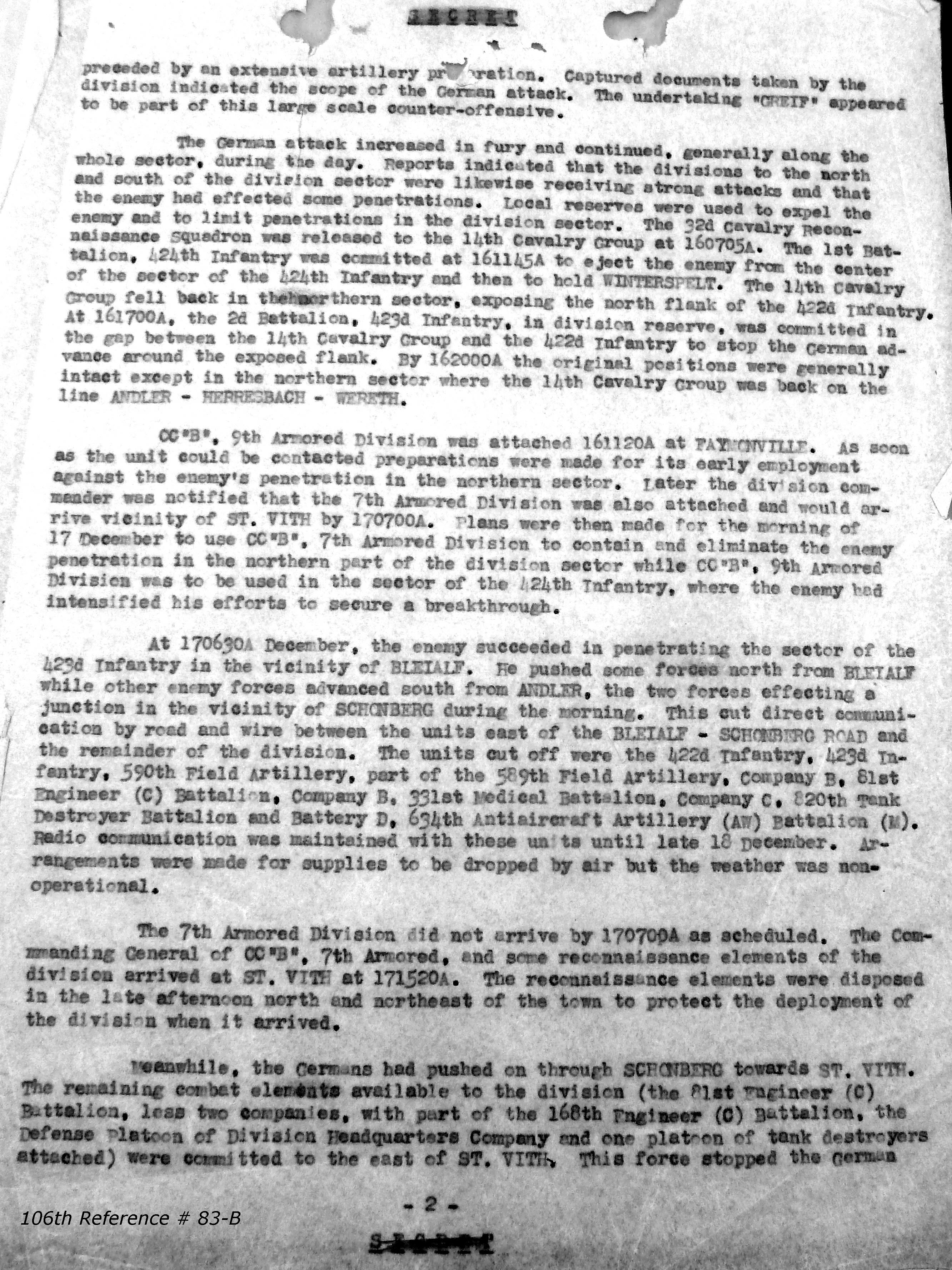 106th Division Reference # 83 After Action Report 12/1944