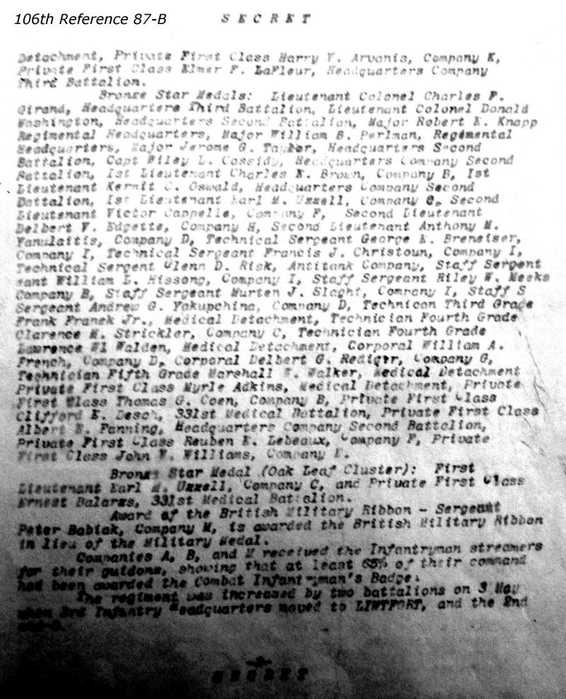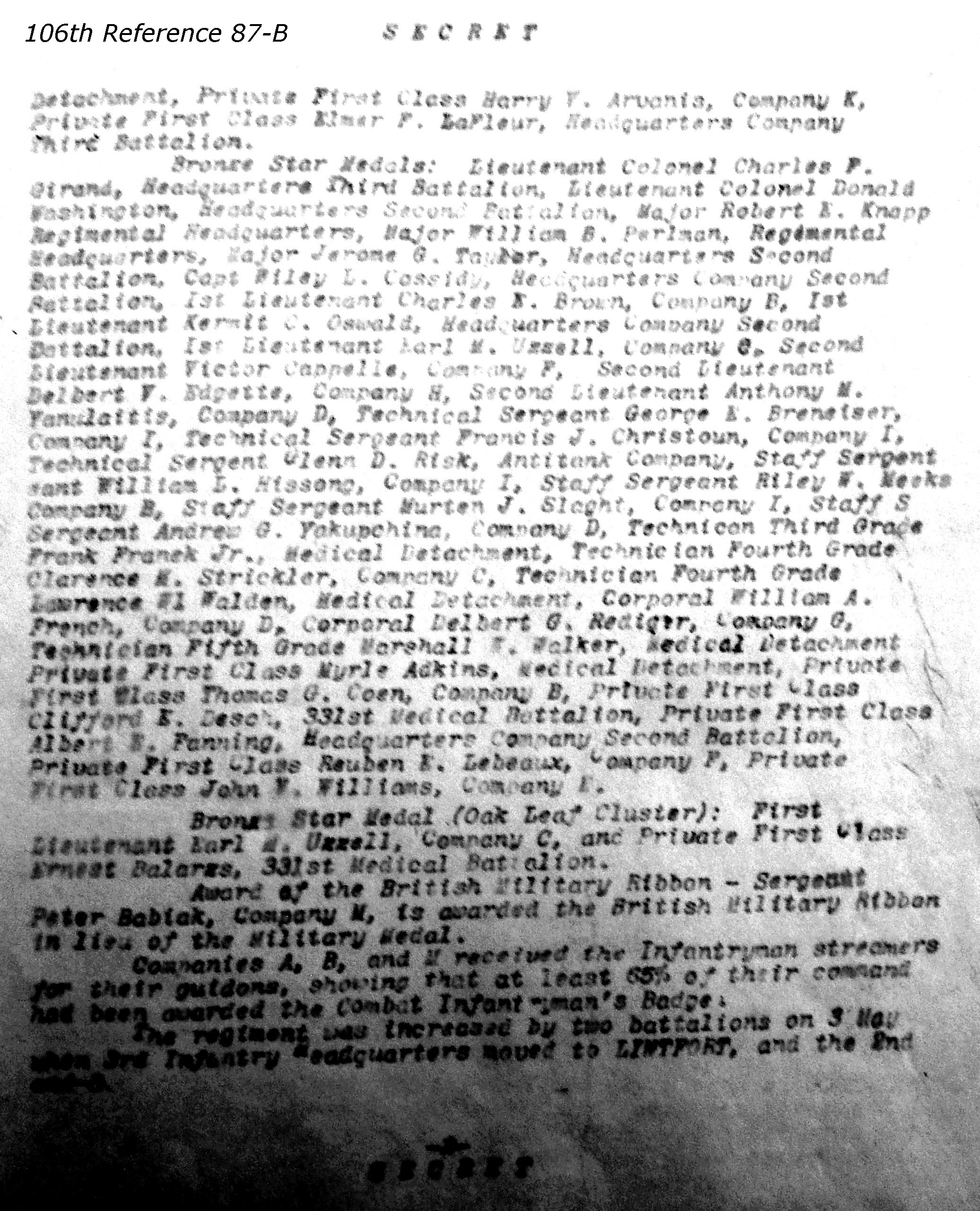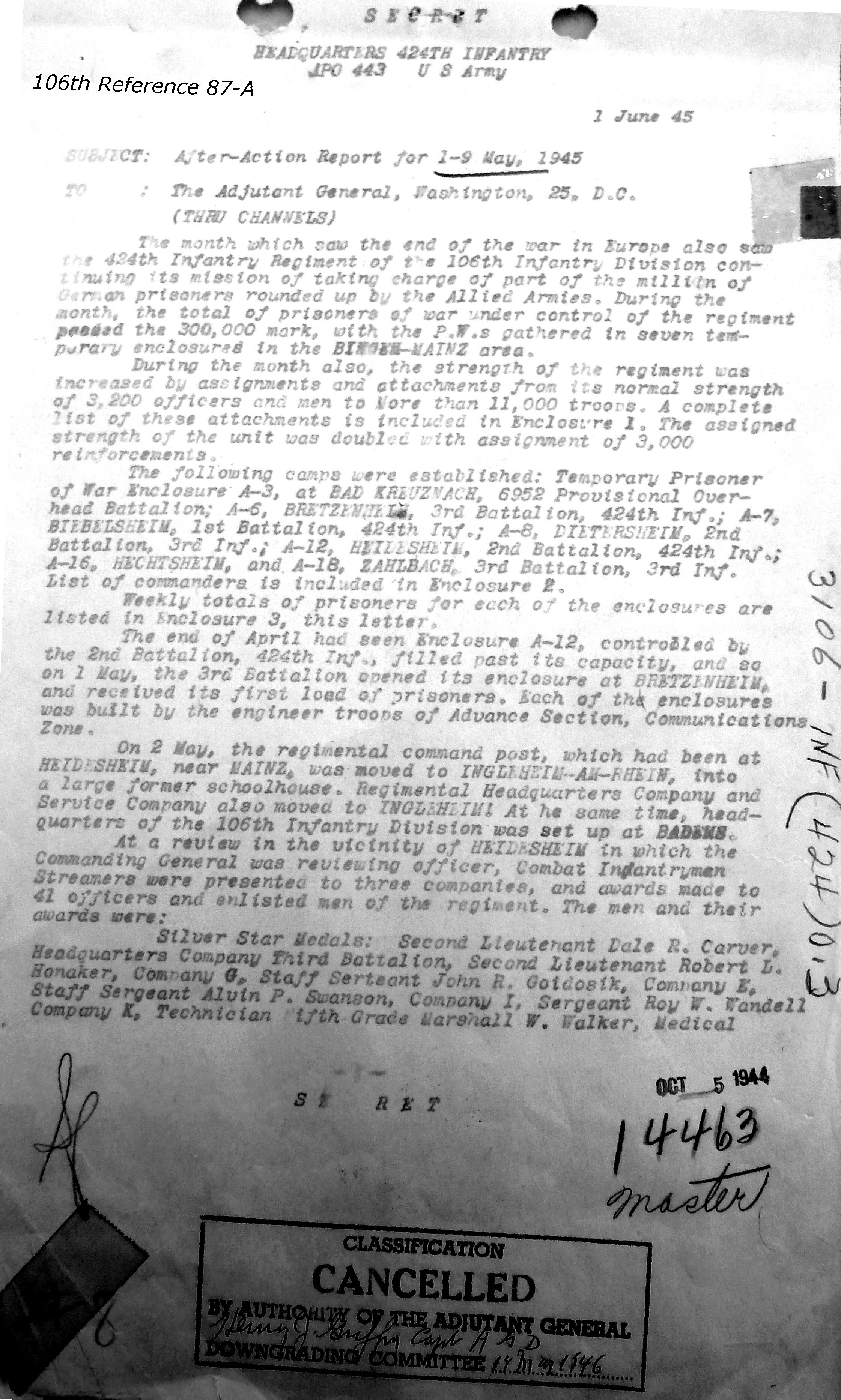 106th Division Reference # 87 After Action Report 01 to 09 May 1945