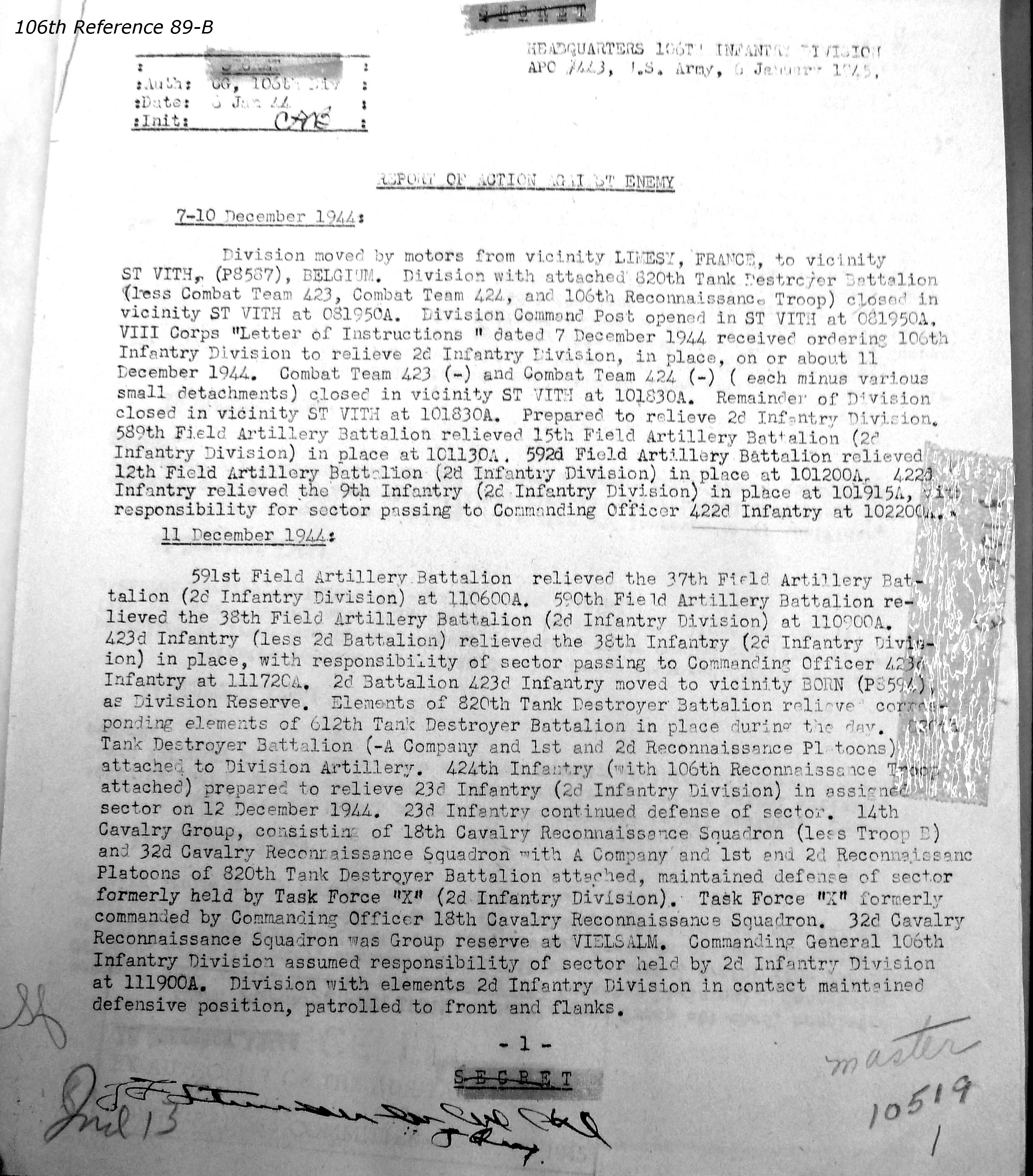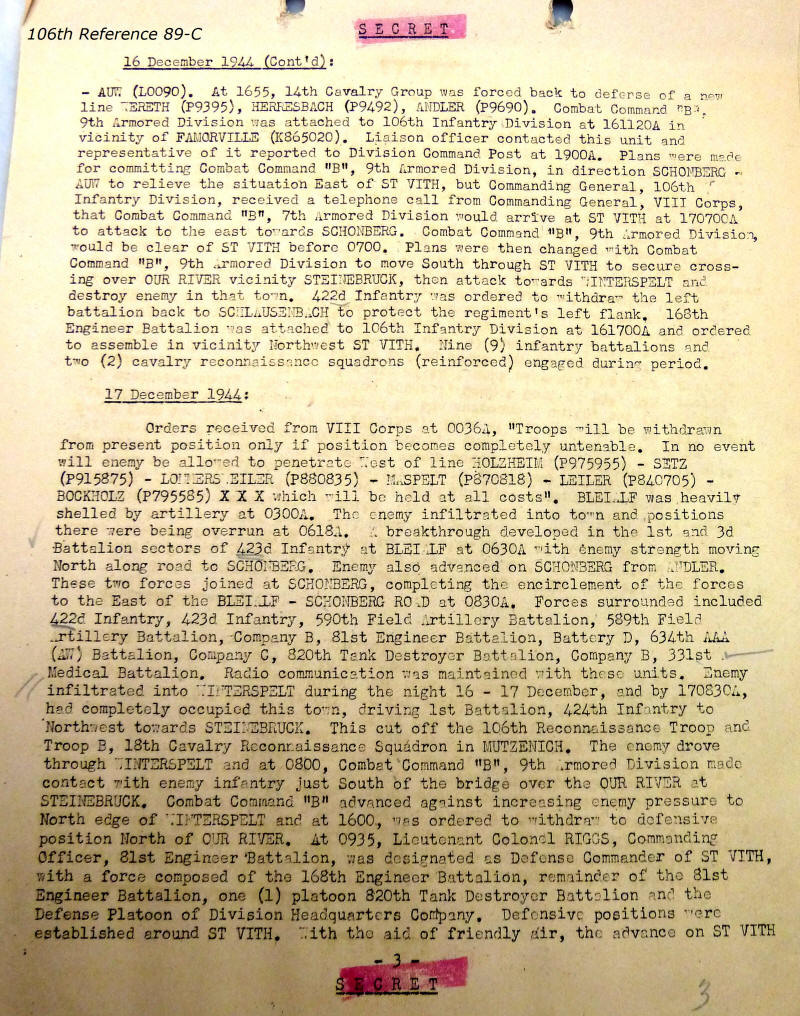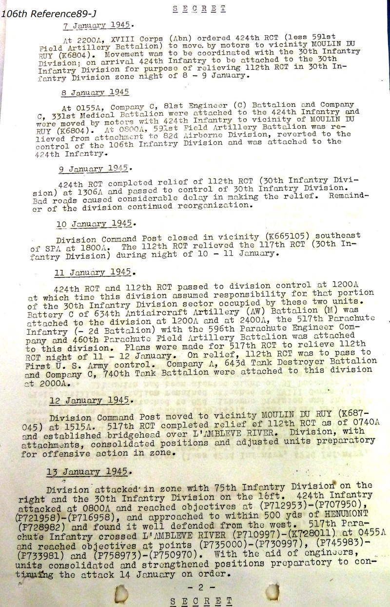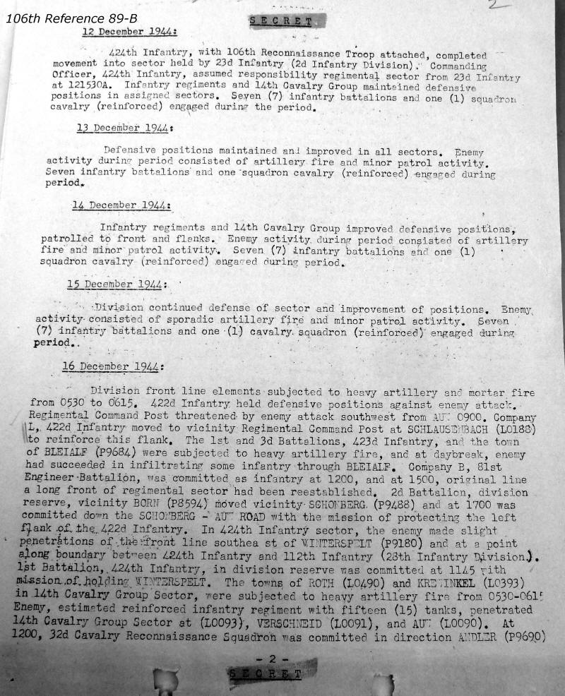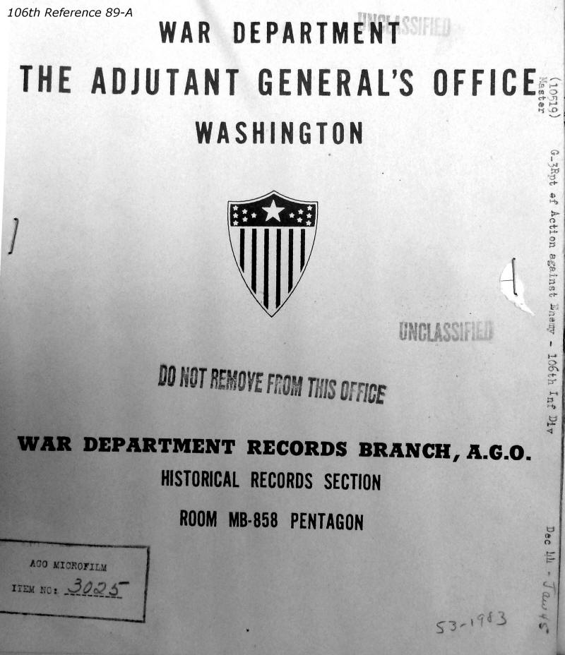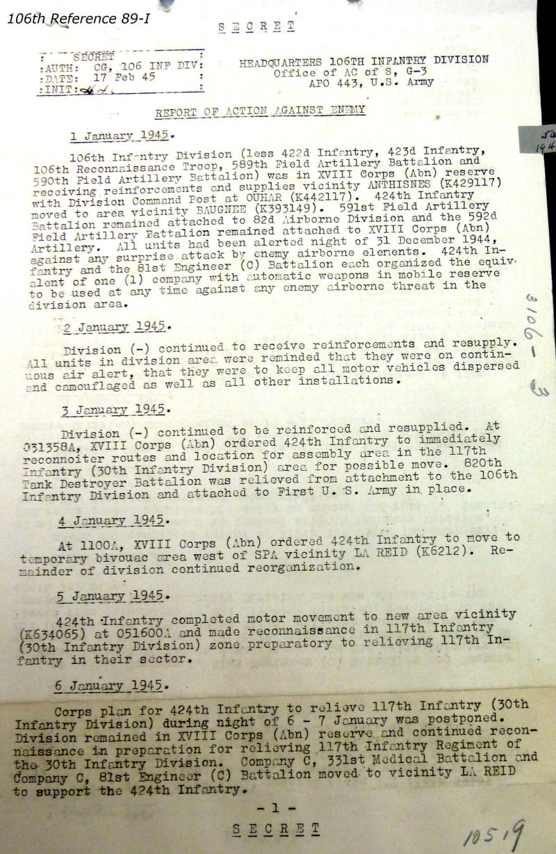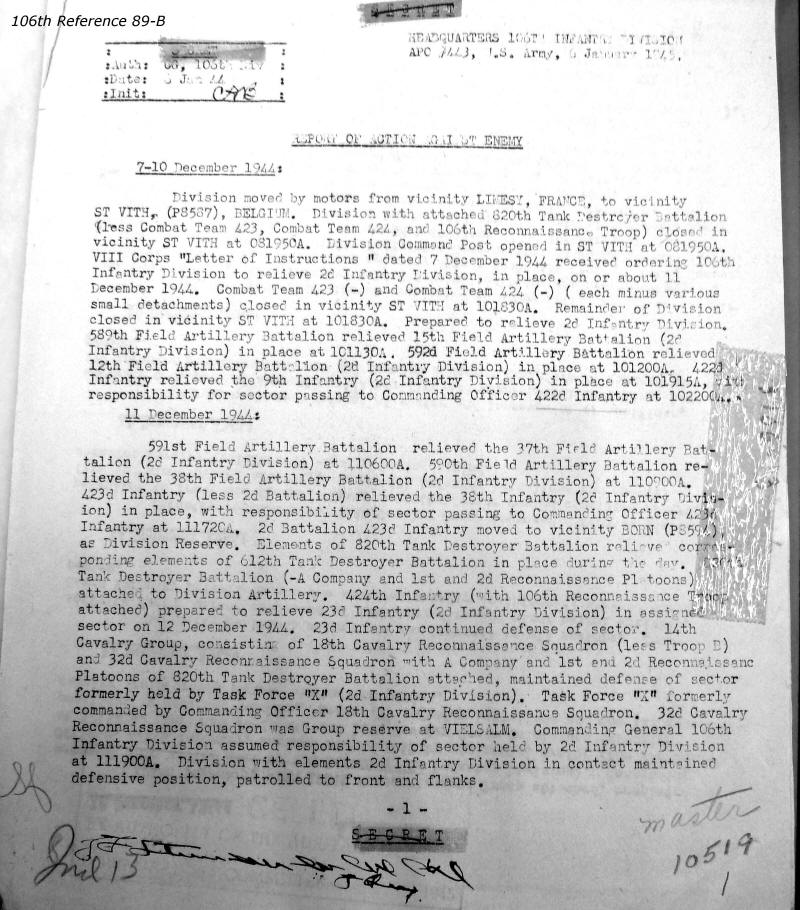 106th Division Reference 89 Reports of Action Against Enemy 12/1944 to 01/1945