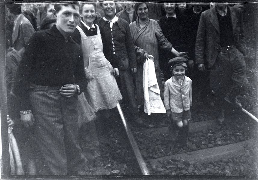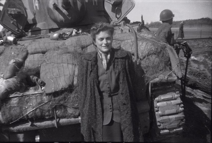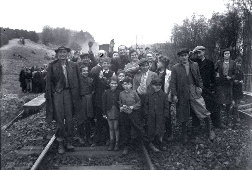 Major Benjamin had come upon some emaciated Finnish soldiers who had escaped from a train full of starving prisoners a short distance away. The major led our two tanks, each carrying several infantrymen from the 30th Infantry Division on its deck, down a narrow road until we came to a valley with a small train station at its head and a motley assemblage of passenger compartment cars and boxcars pulled onto a siding. There was a mass of people sitting or lying listlessly about, unaware as yet of our presence. There must have been guards, but they evidently ran away before or as we arrived, for I remember no firefight. Our taking of the train, therefore, was no great heroic action but a small police operation. The heroism that day was all with the prisoners on the train. Major Benjamin took a powerful picture just as a few of the people became aware that they had been rescued. It shows people in the background still lying about, trying to soak up a bit of energy from the sun, while in the foreground a woman has her arms flung wide and a great look of surprise and joy on her face as she rushes toward us. In a moment, that woman found a pack left by a fleeing German soldier, rummaged through it, and held up triumphantly a tin of rations. She was immediately attacked by a swarm of skeletal figures, each intent upon capturing that prize. My yelling did no good, so that I finally had to leap from my tank and wade through weak and emaciated bodies to pull the attackers off the woman, who ran quickly away with her prize. I felt like a bully, pushing around such weak and starving fellow humans, but it was necessary to save the woman from great harm. The incident drove home to me the terrible plight of the newly freed inhabitants of the train. I pulled my tank up beside the small station house at the head of the train and kept it there as a sign that the train was under American protection now. Carroll Walsh’s tank was soon sent back to the battalion, and I do not remember how long the infantrymen stayed with us, though it was a comfort to have them for a while. My recollection is that my tank was alone for the afternoon and night of the 13th. A number of things happened fairly quickly. We were told that the commander of the 823rd Tank Destroyer battalion had ordered all the burgermeisters of nearby towns to prepare food and get it to the train promptly, and were assured that Military Government would take care of the refugees the following day. So we were left to hunker down and protect the starving people, commiserating with if not relieving their dire condition. I believe that the ranking officer of the Finnish prisoners introduced himself to me and offered to set up a perimeter guard. I think I approved and asked him to organize a guard, set out pickets, and handle the maintenance and relief of the outposts. However it happened, the guard was set up swiftly and efficiently. It was moving and inspiring to see how smartly those emaciated soldiers returned to their military duties, almost joyful at the thought of taking orders and protecting others again. They were armed only with sticks and a few weapons discarded by the fleeing German guards, but they made a formidable force, and they obviously knew their duties, so that I could relax and talk to the people. A young woman named Gina Rappaport came up and offered to be my interpreter. She spoke English very well and was evidently conversant with several other languages besides her native Polish. We stood in front of the tank as along line of men, women, and little children formed itself spontaneously, with great dignity and no confusion, to greet us. It is a time I cannot forget, for it was terribly moving to see the courtesy with which they treated each other, and the importance they seemed to place on reasserting their individuality in some seemingly official way. Each would stand at a position of rigid attention, held with some difficulty, and introduce himself or herself by what grew to be a sort of formula: the full name, followed by “a Polish Jew from Hungary”-or a similar phrase which gave both the origin and the home from which the person had been seized. Then each would shake hands in a solemn and dignified assertion of individual worth. Battle-hardened veterans learn to contain their emotions, but it was difficult then, and I cry now to think about it. What stamina and regenerative spirit those brave people showed! Also tremendously moving were their smiles. I have one picture of several girls, specter-thin, hollow-cheeked, with enormous eyes that had seen much evil and terror, and yet with smiles to break one’s heart. Little children came around with shy smiles, and mothers with proud smiles happily pushed them forward to get their pictures taken. I walked up and down the train seeing some lying in pain or lack of energy, and some sitting and making hopeful plans for a future that suddenly seemed possible again. Others followed everywhere I went, not intruding but just wanting to be close to a representative of the forces that had freed them. How sad it was that we had no food to give immediately, and no medical help, for during my short stay with the train sixteen or more bodies were carried up the hillside to await burial, brave hearts having lost the fight against starvation before we could help them. The boxcars were generally in very bad condition from having been the living quarters of far too many people, and the passenger compartments showed the same signs of overcrowding and unsanitary conditions. But the people were not dirty. Their clothes were old and often ragged, but they were generally clean, and the people themselves had obviously taken great pains to look their best as they presented themselves to us. I was told that many had taken advantage of the cold stream that flowed through the lower part of the valley to wash themselves and their clothing. Once again I was impressed by the indomitable spirits of these co