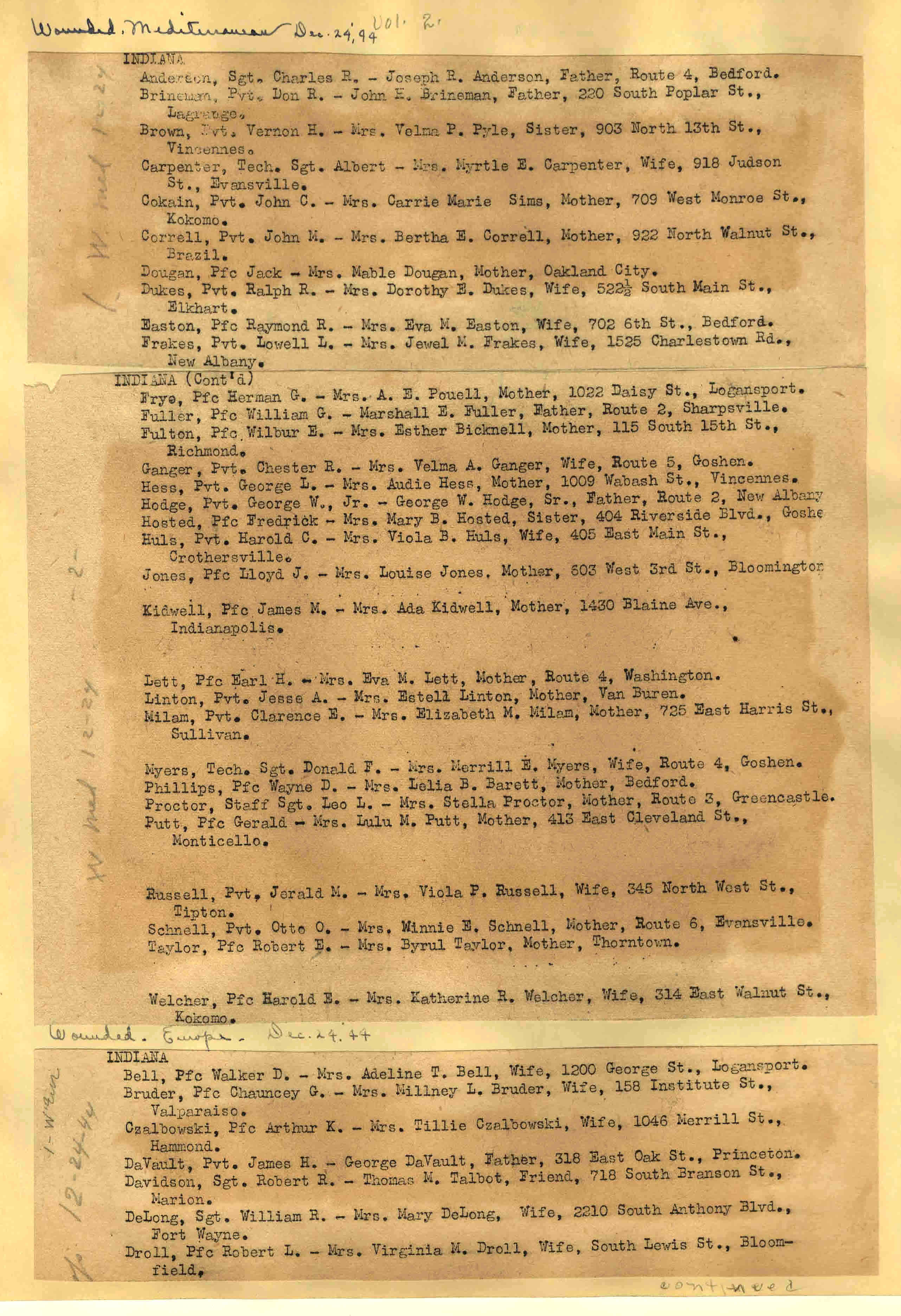 | Wounded - Mediterranean 12/24/1944 Wounded - Europe 12/24/1944 ![]() 24 |