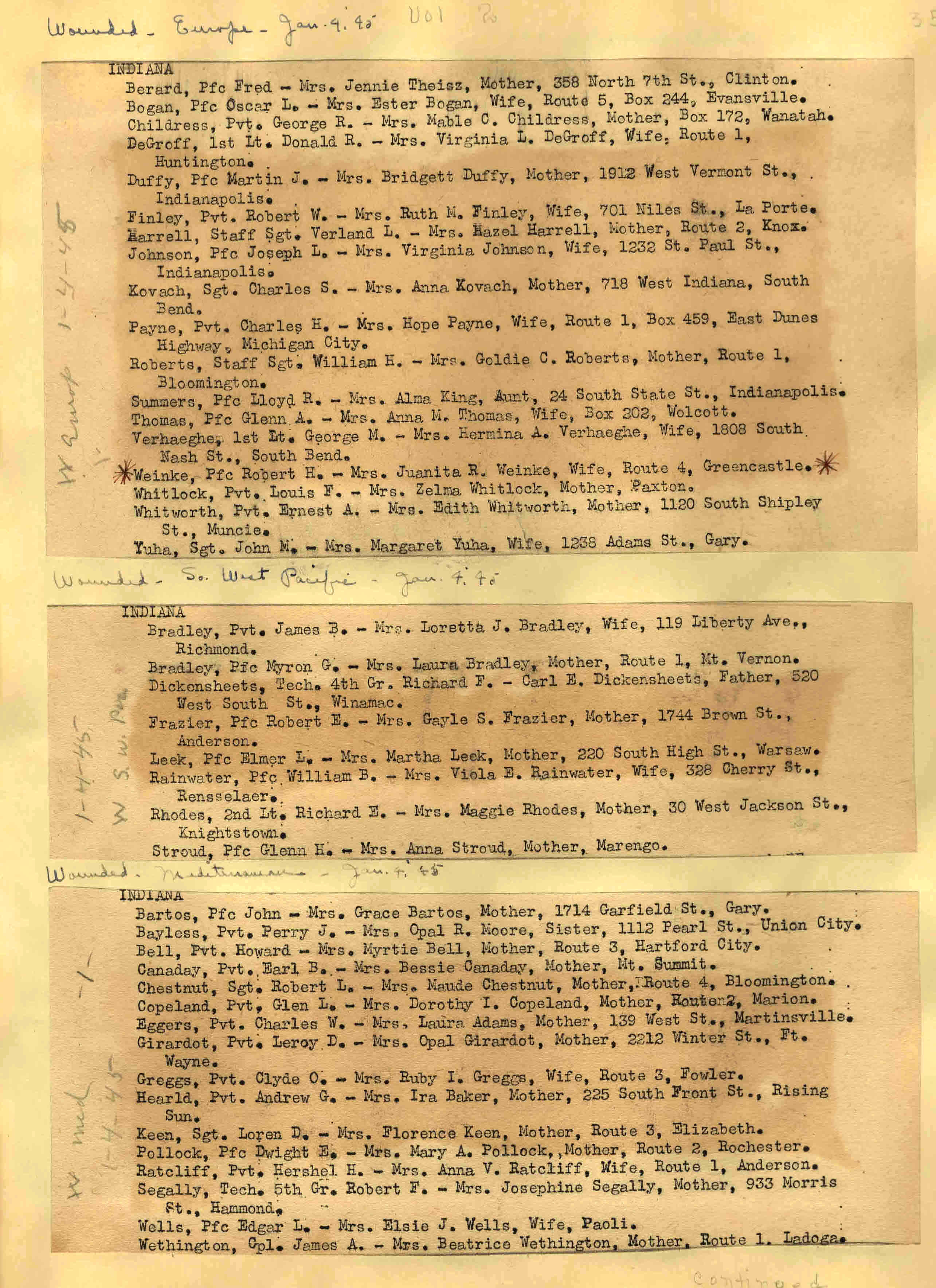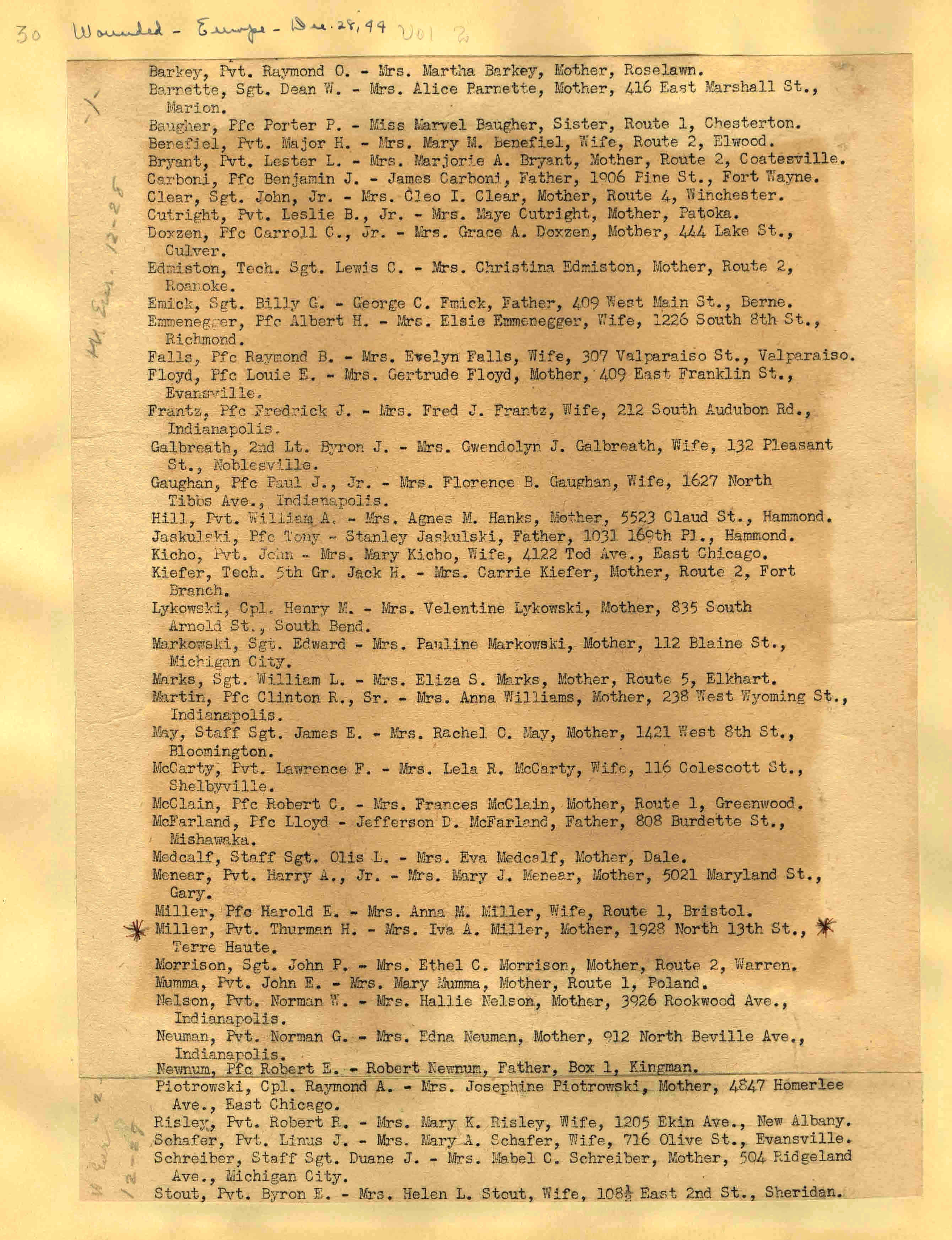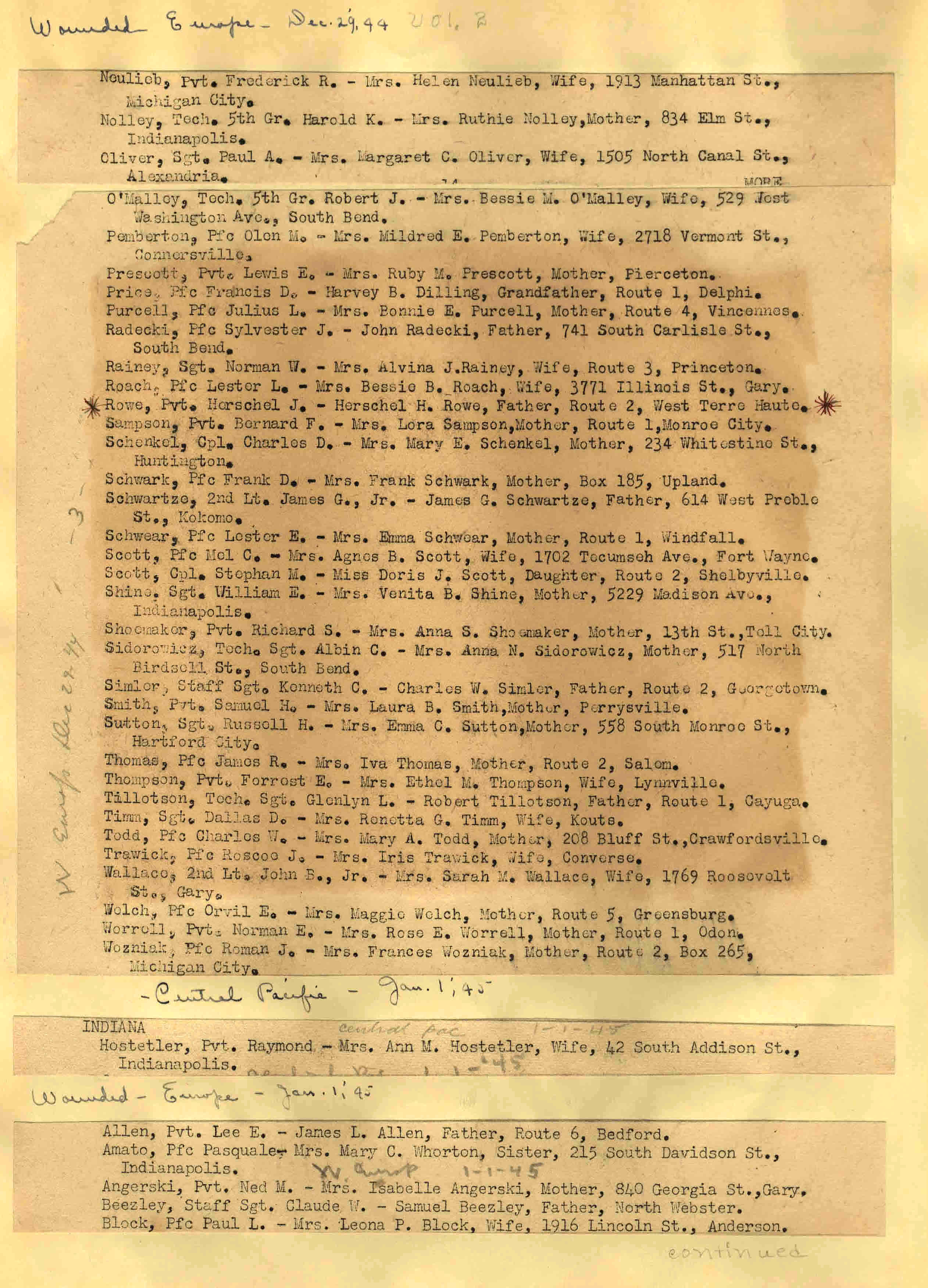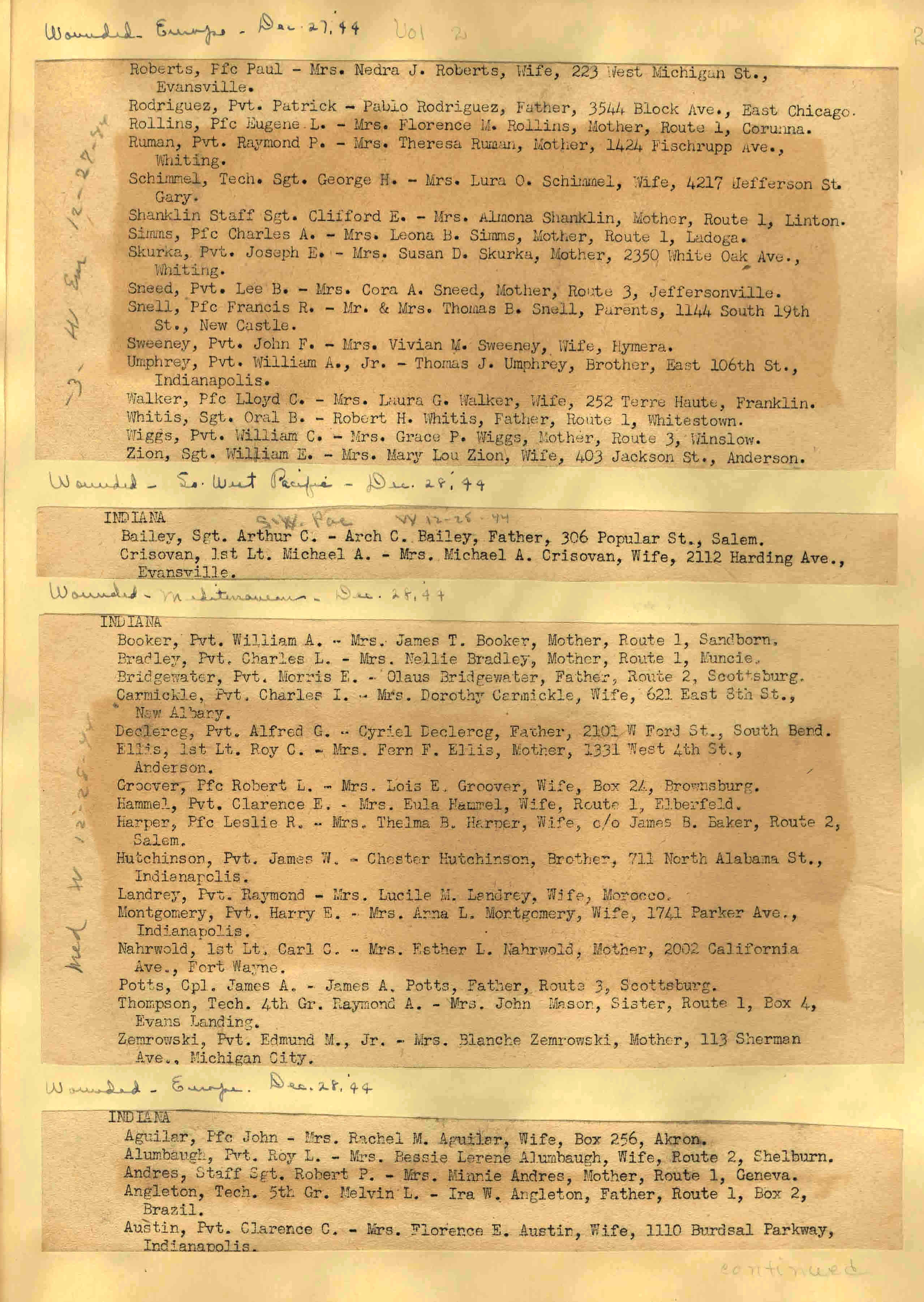 | Wounded - Europe 12/27/1944 Wounded So. West Pacific 12/28/1944 Wounded - Mediterranean 12/28/1944 Wounded - Europe 12/28/1944 ![]() 29 |