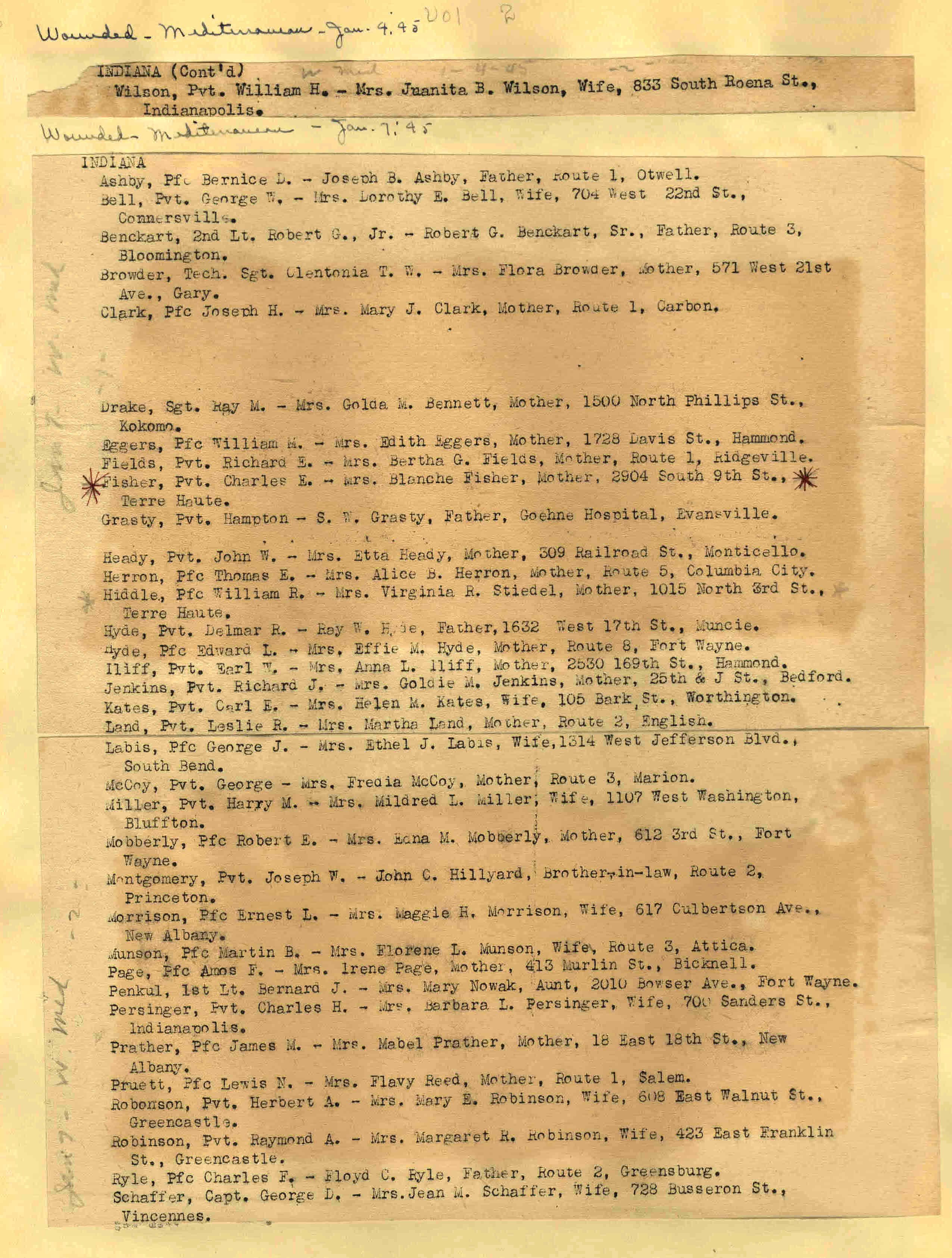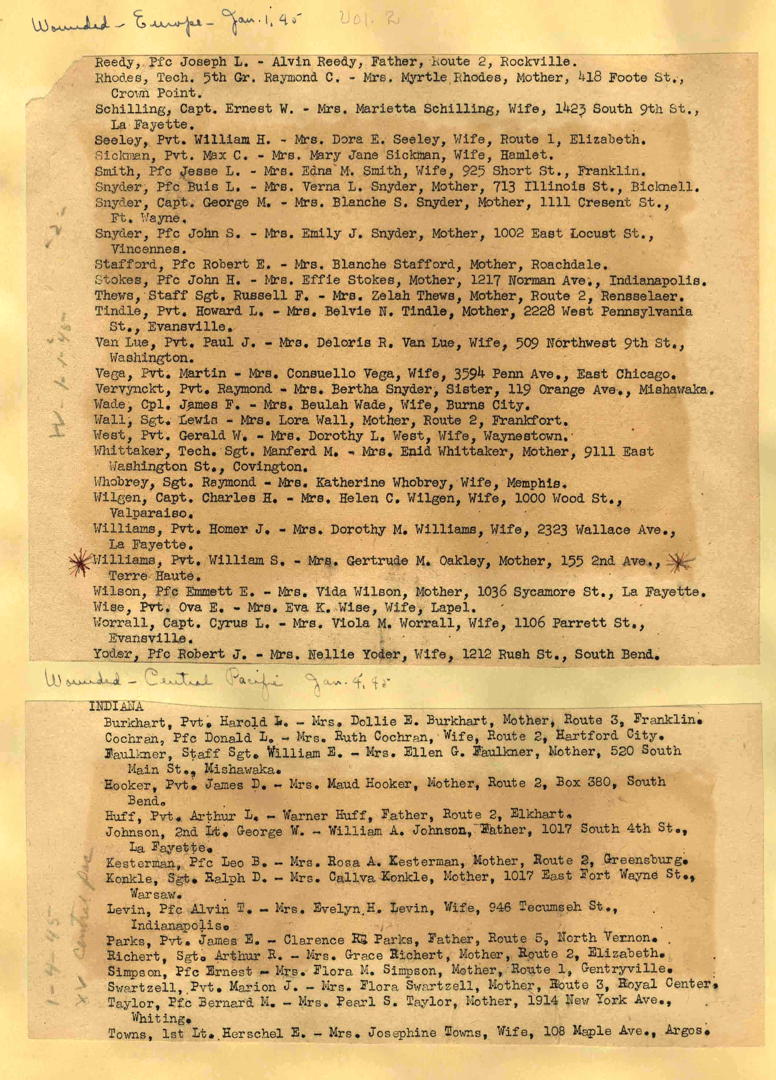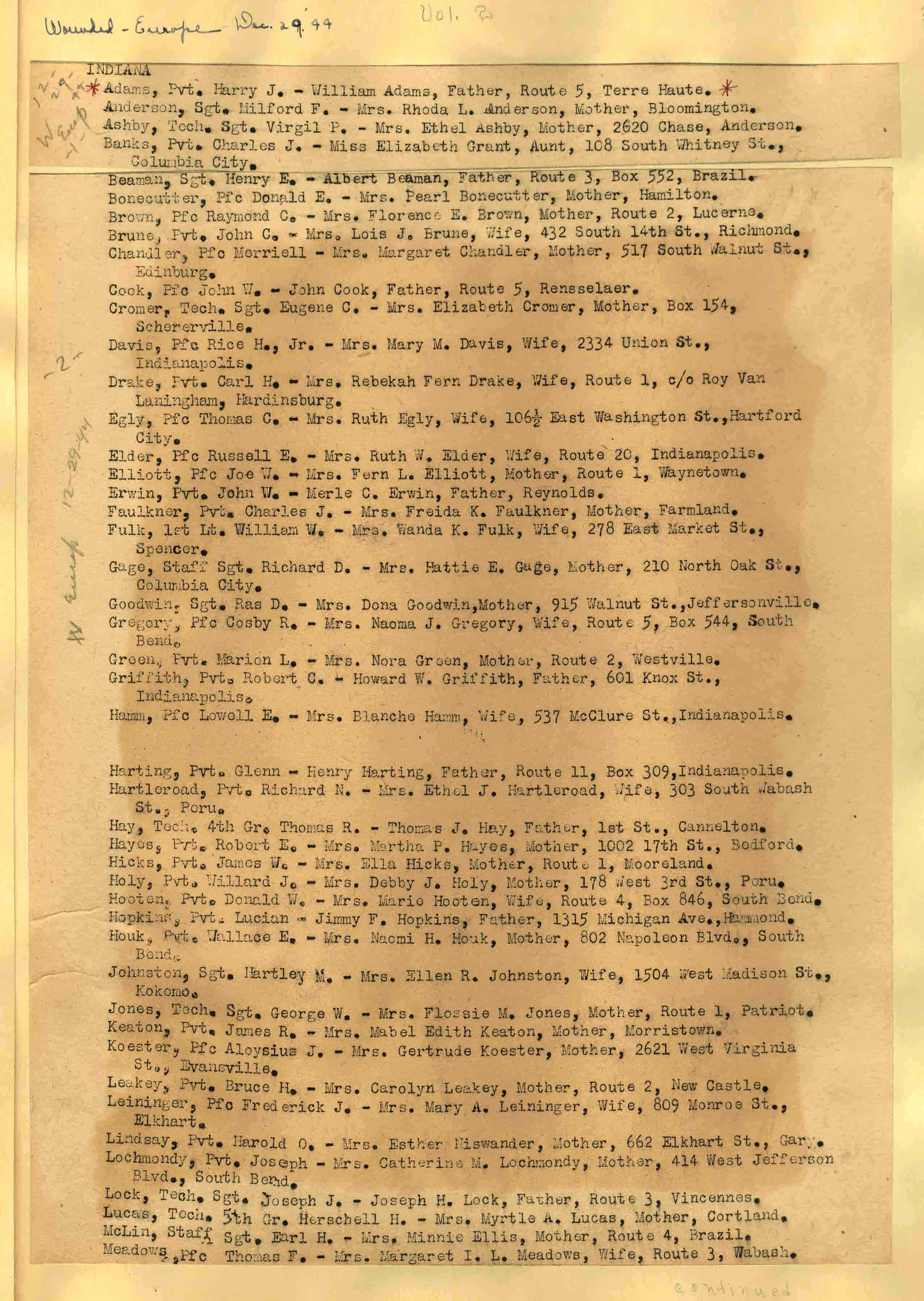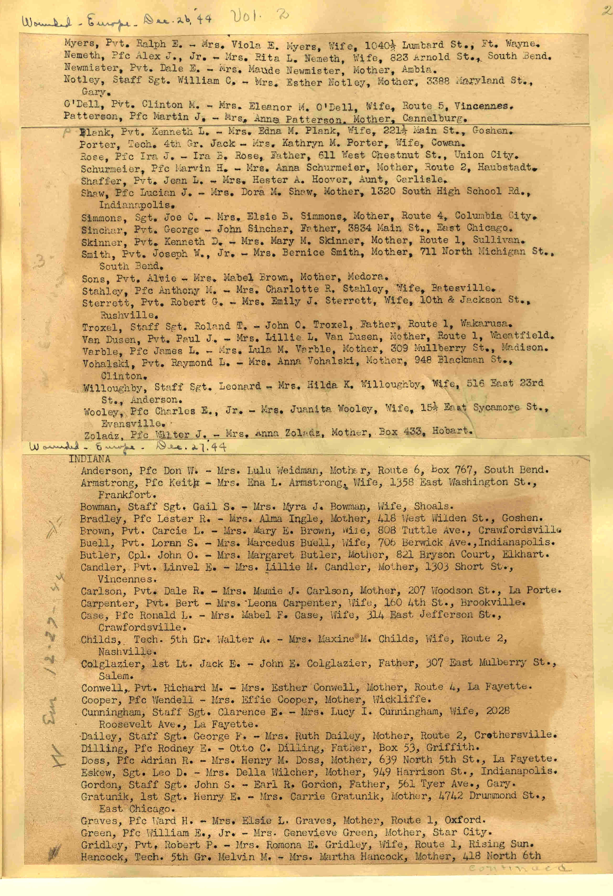 | Wounded - Europe 12/27/1944 Wounded So. West Pacific 12/28/1944 Wounded - Mediterranean 12/28/1944 Wounded - Europe 12/28/1944 ![]() 29 |