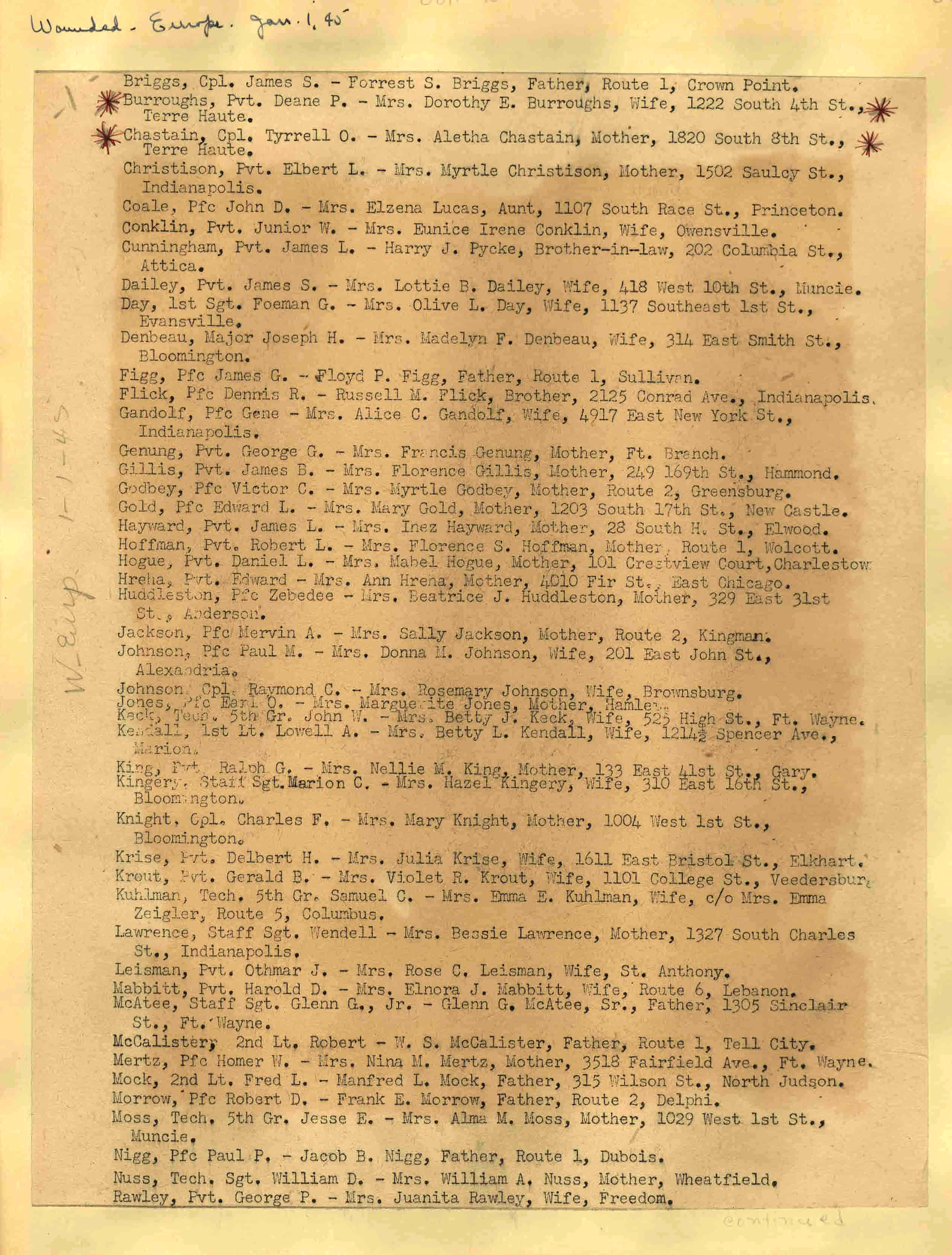 | Wounded - Europe 01/01/1945 ![]() 33 |