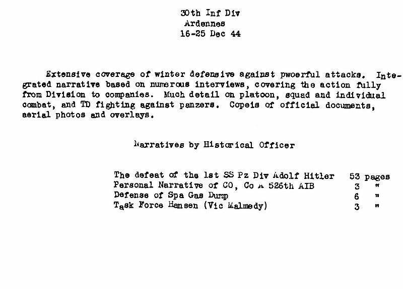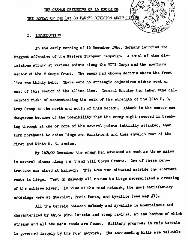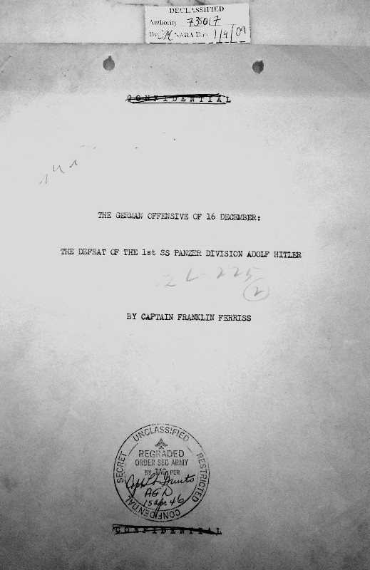 | The German Offensive of 16 December The Defeat of the 1st SS Panzer Division Adolf Hitler by Captain Franklin Ferriss |