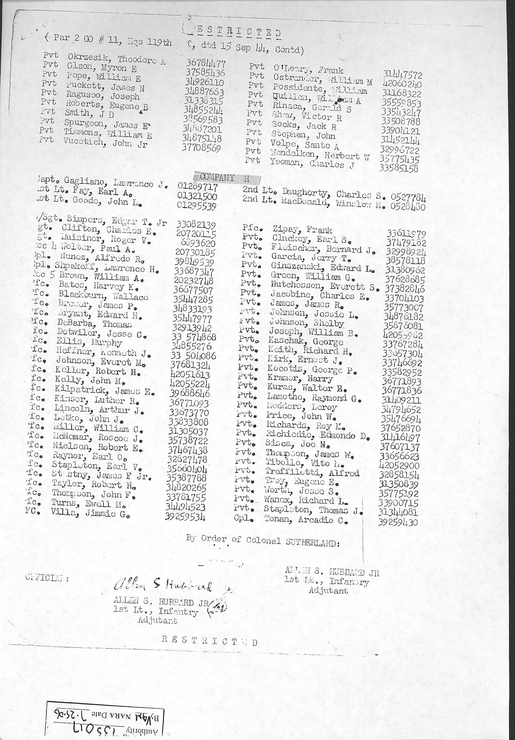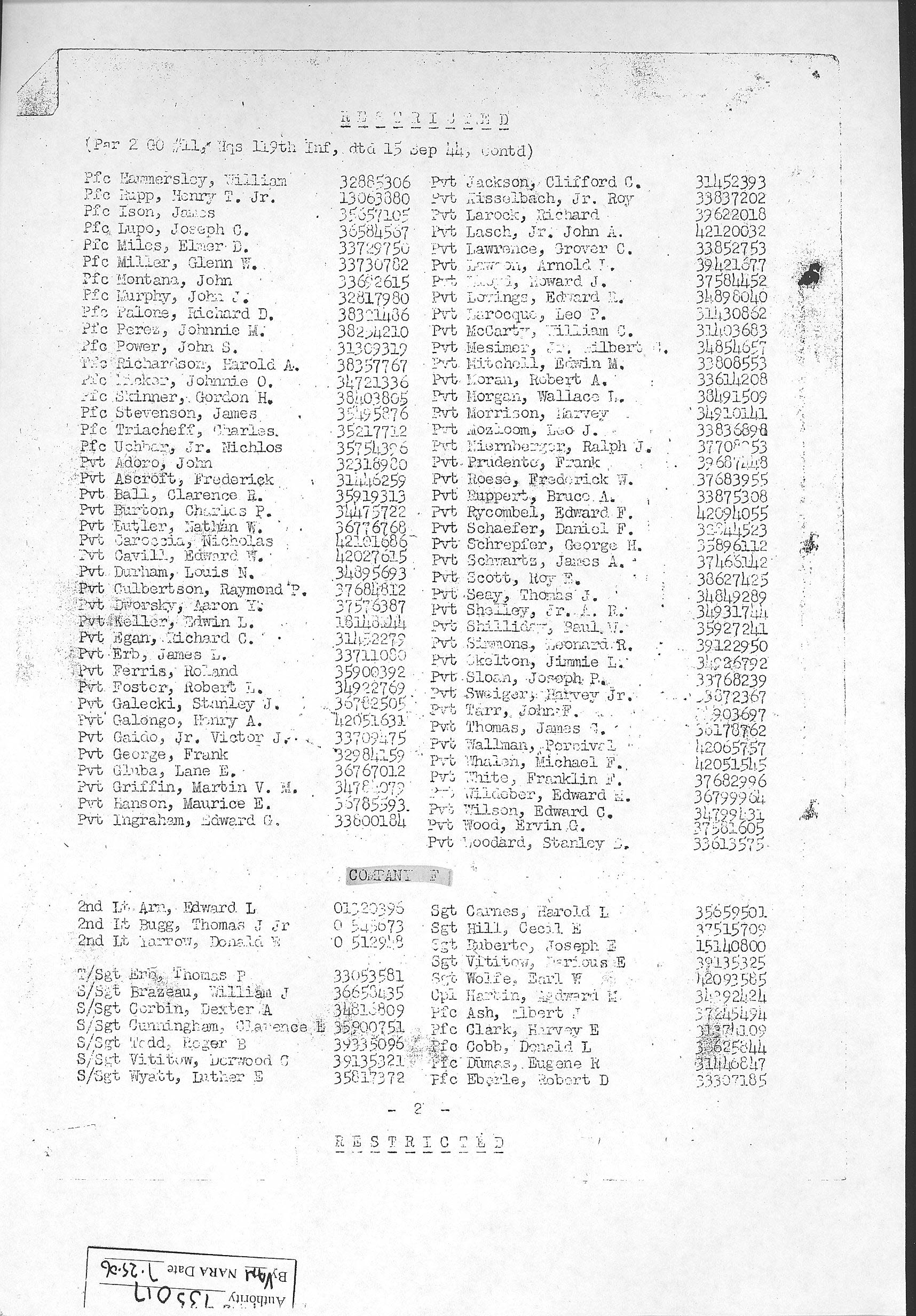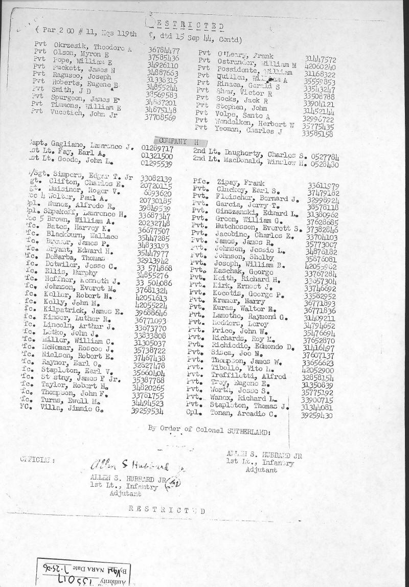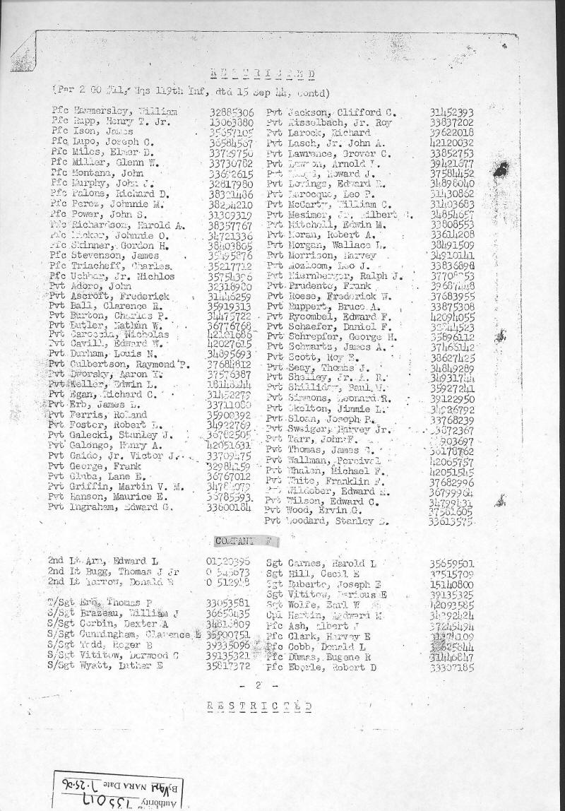 Combat Infantryman's Badge 119/2 BN/HQ CO, 119/E, 119/F, 119/G, 119/H General Order 1944-010-19 07/14/1944 Reference 138