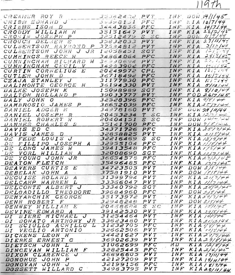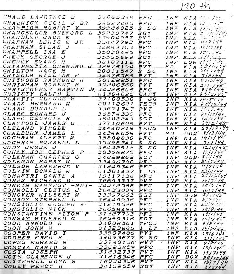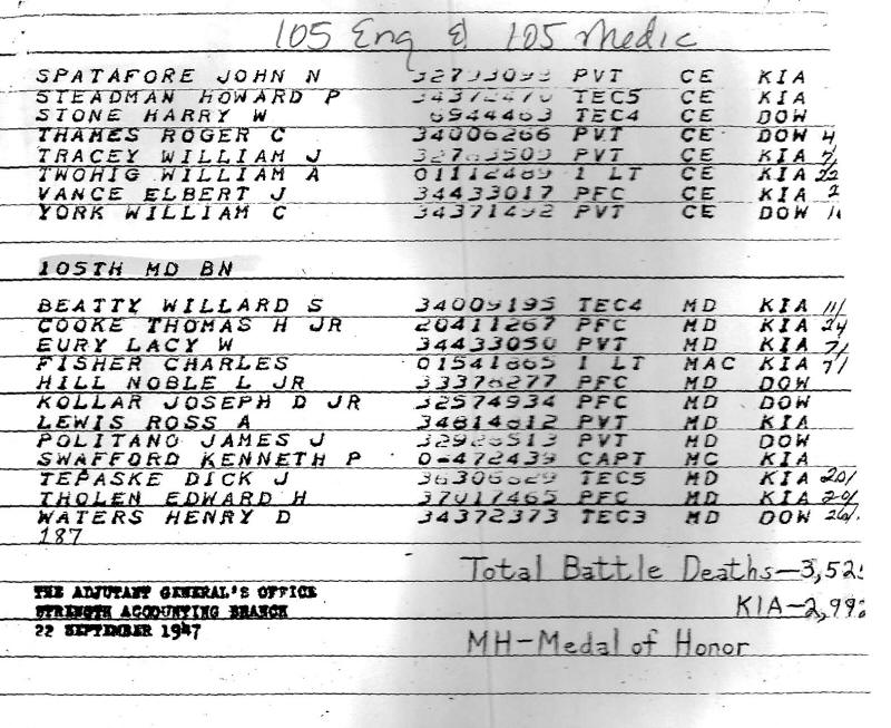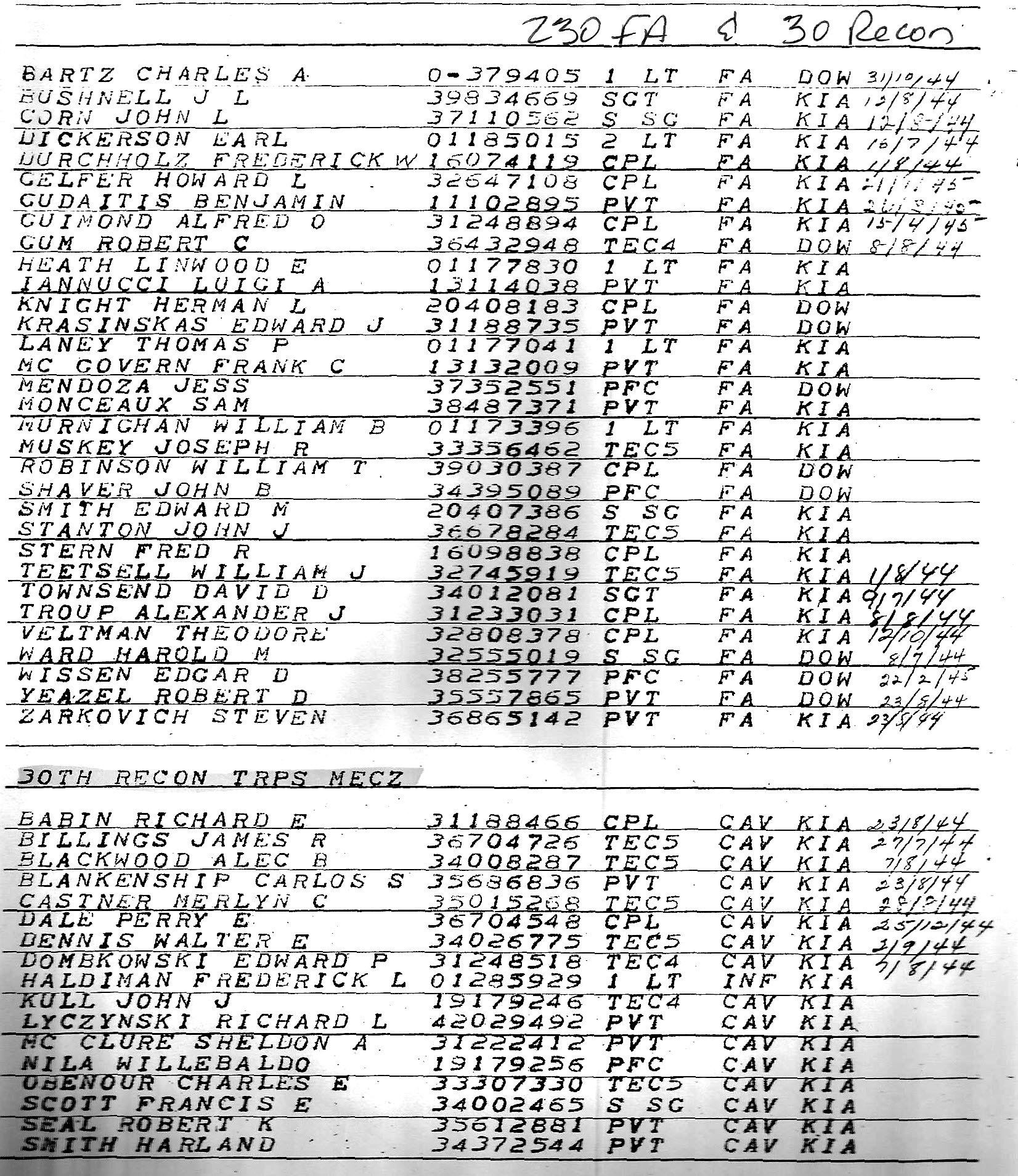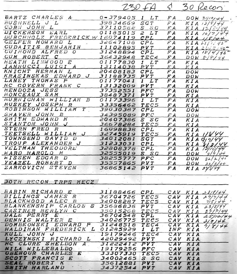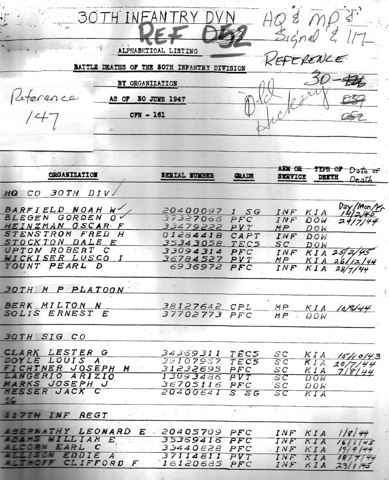 Battle Deaths of the 30th Infantry Division by Organization as of 06/30/1947 Reference 147