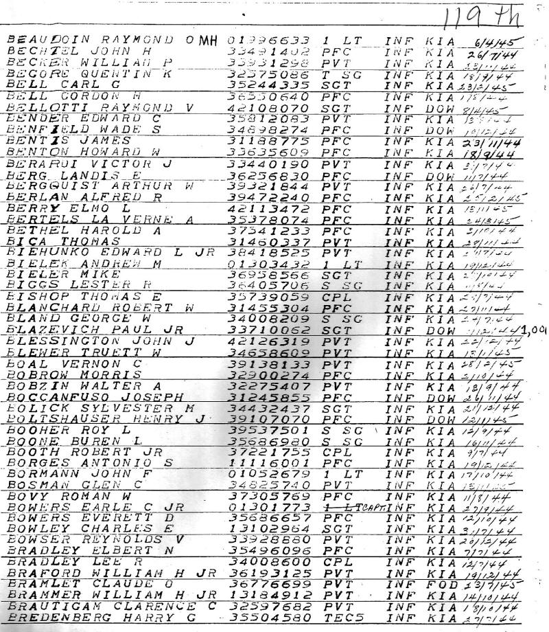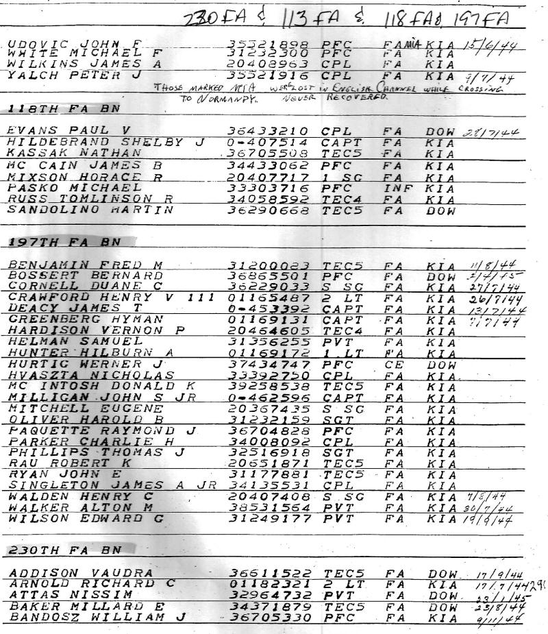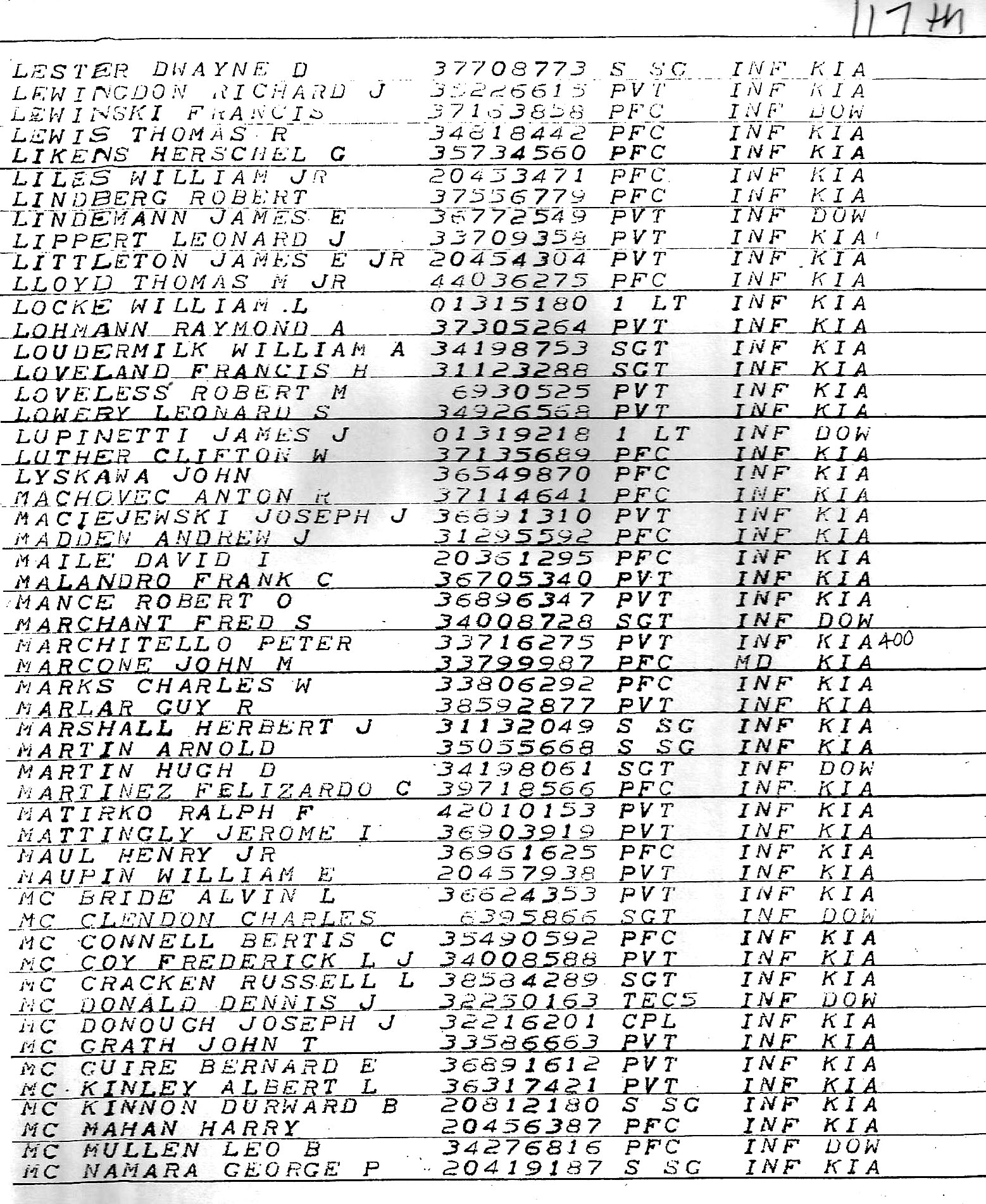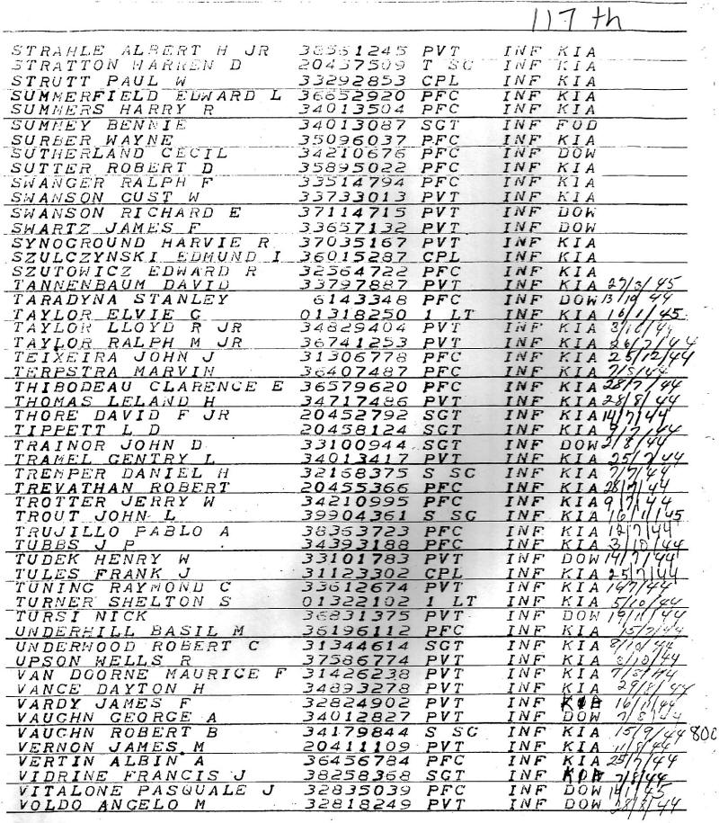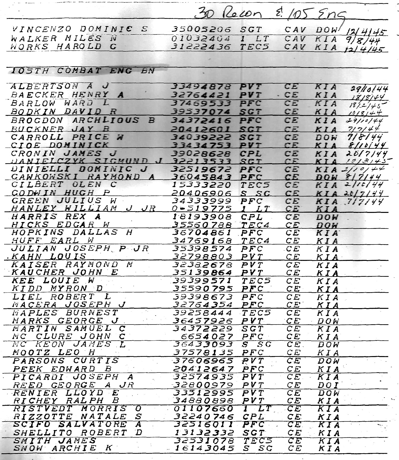Battle Deaths of the 30th Infantry Division by Organization as of 06/30/1947 Reference 147