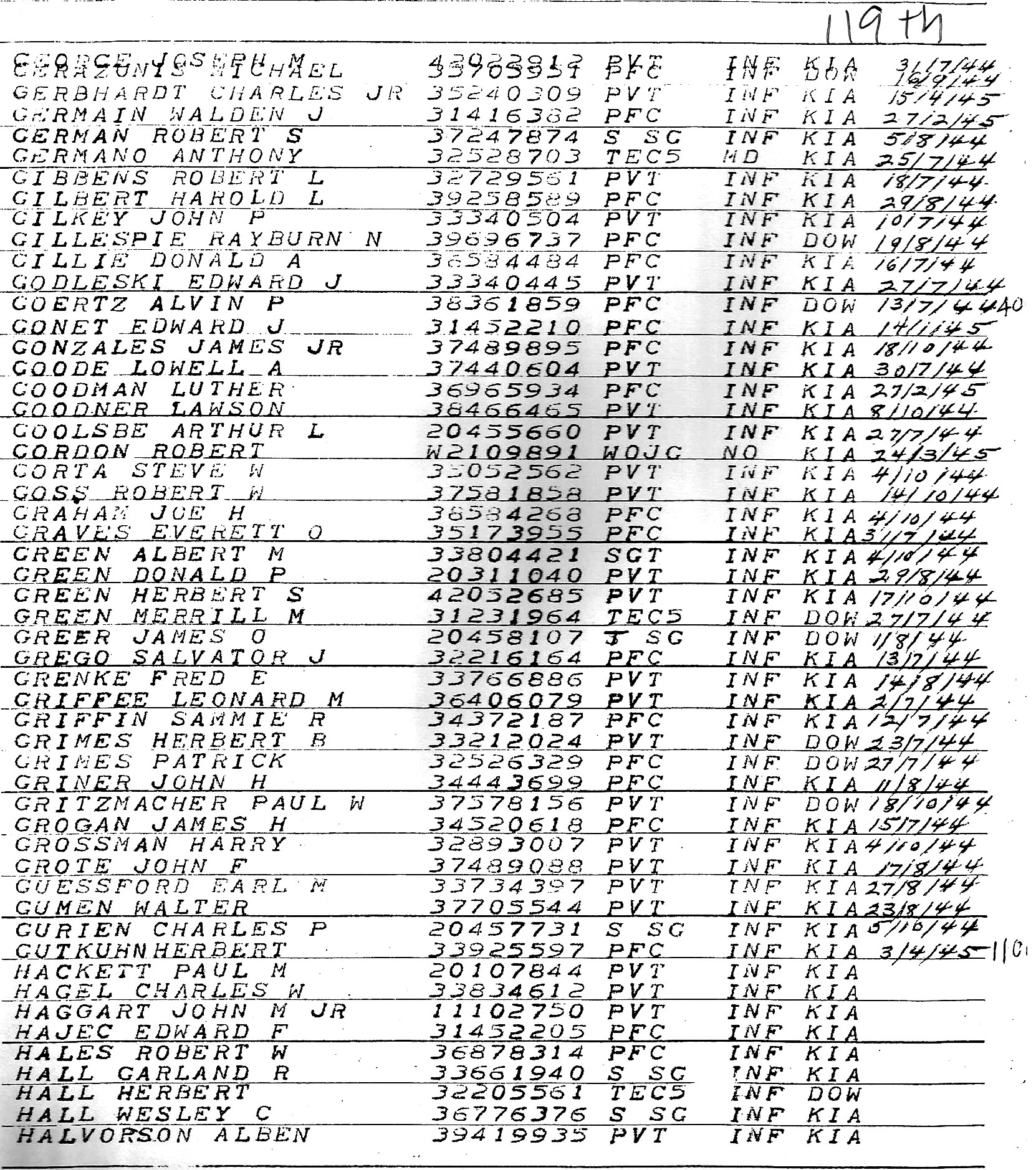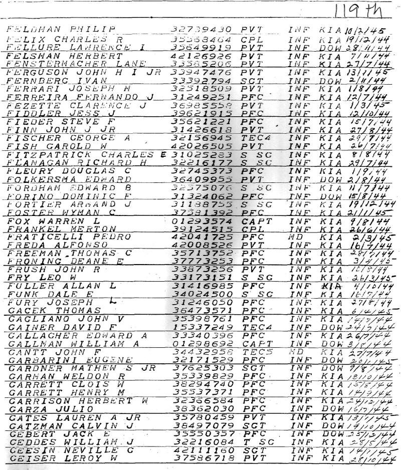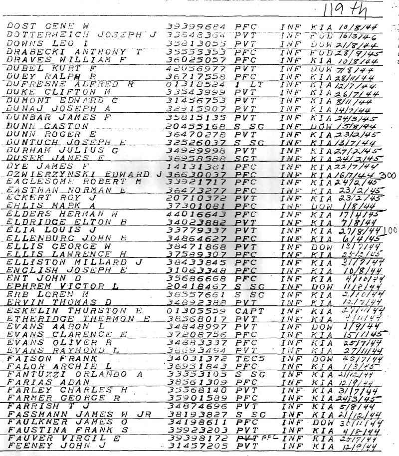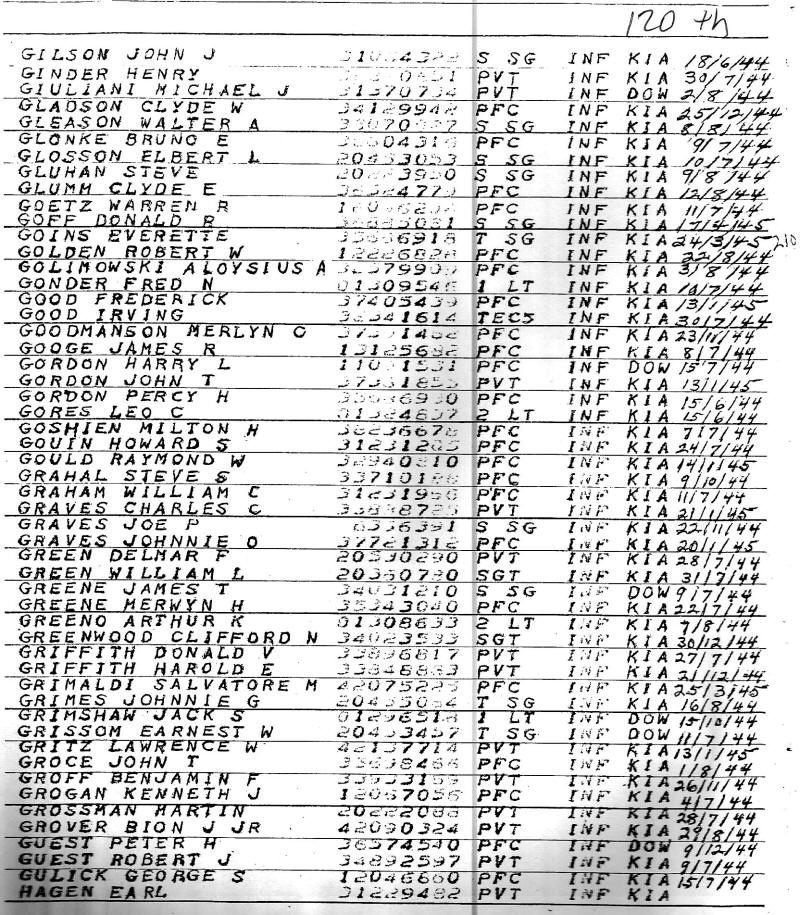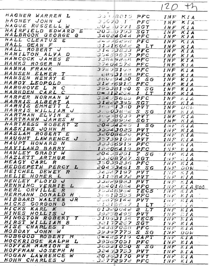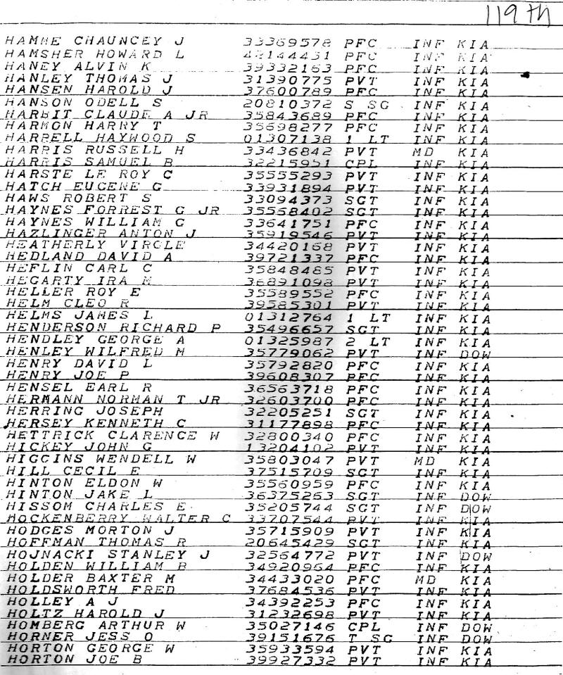 Battle Deaths of the 30th Infantry Division by Organization as of 06/30/1947 Reference 147