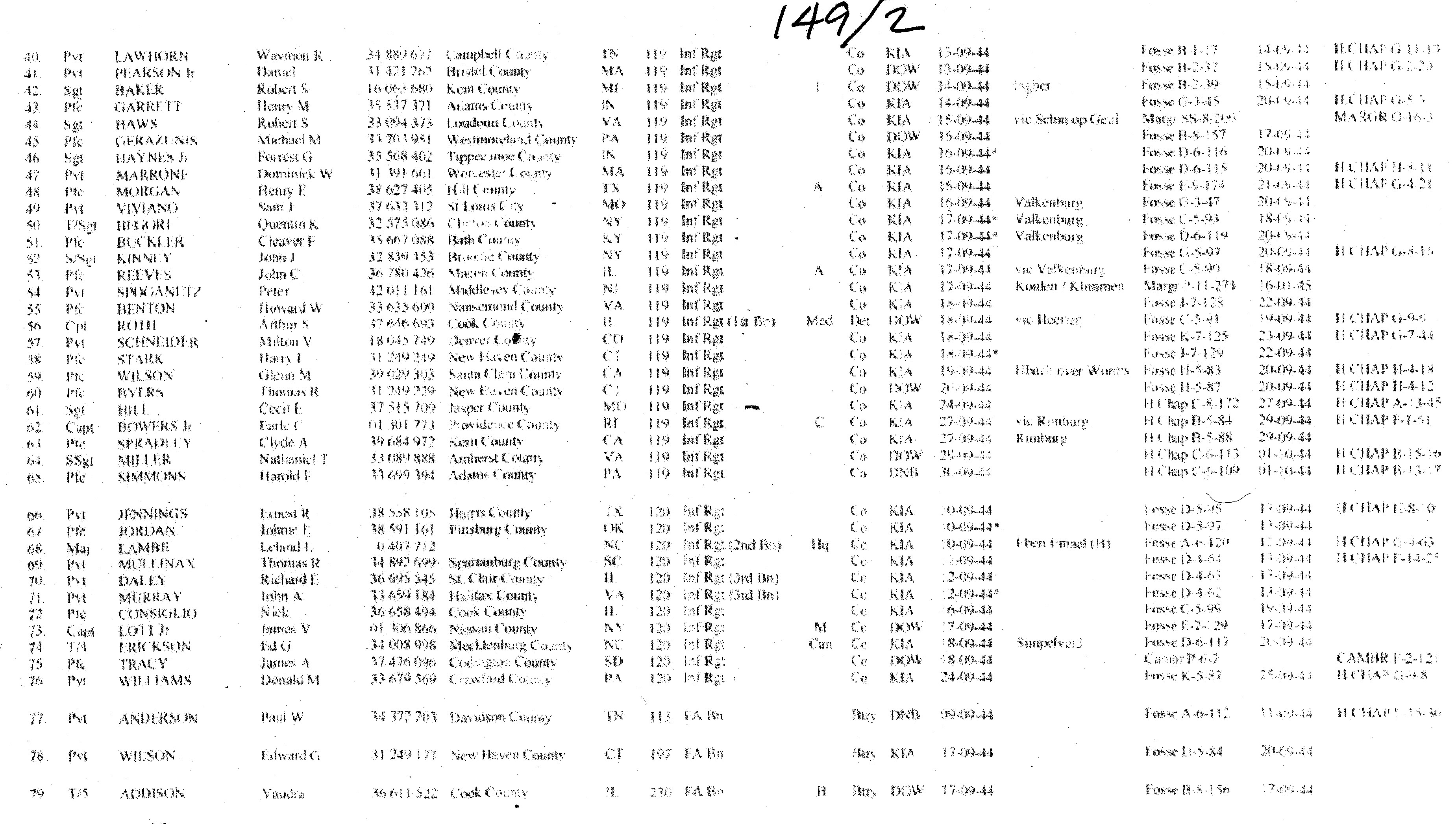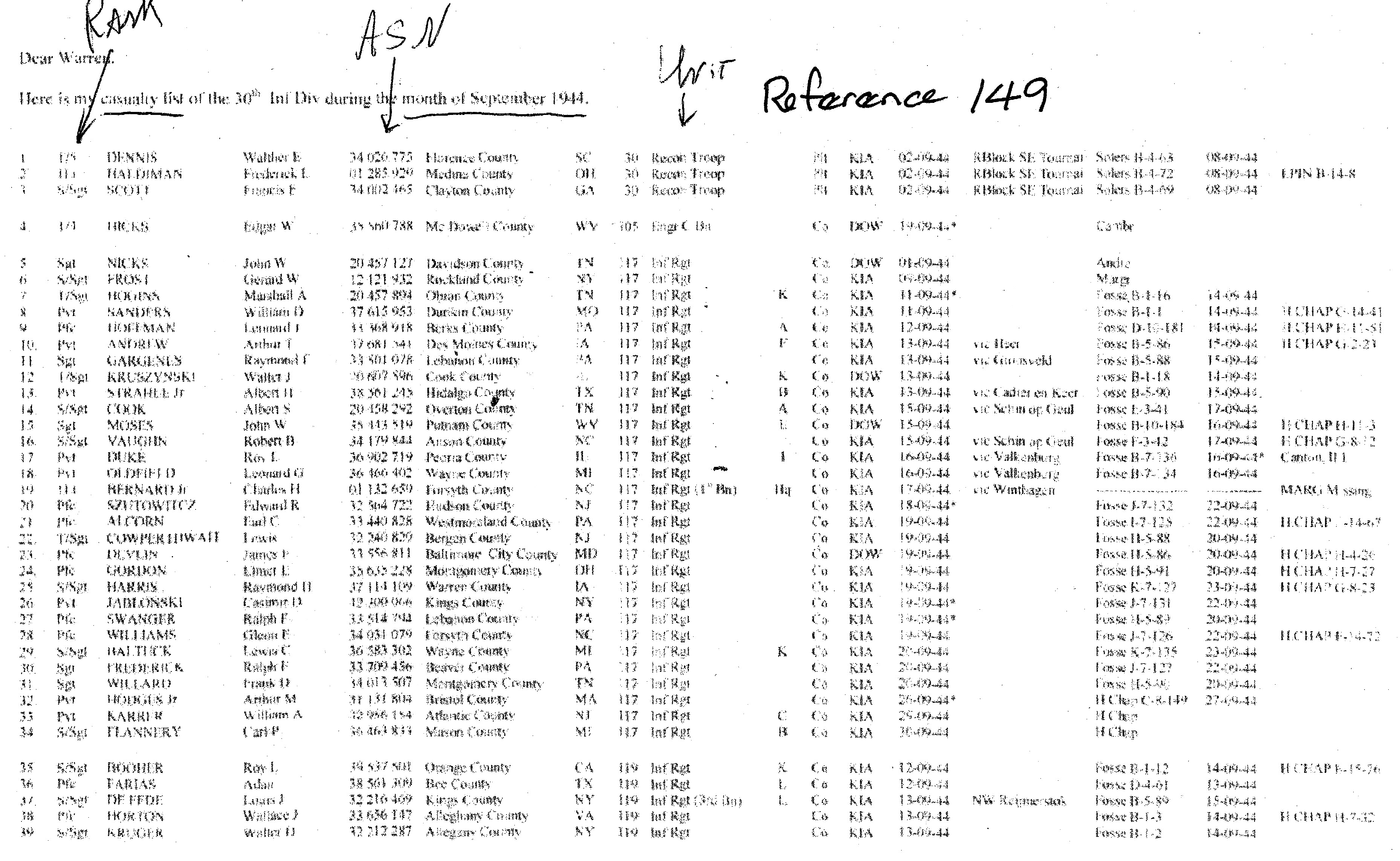 30th division Casualty List