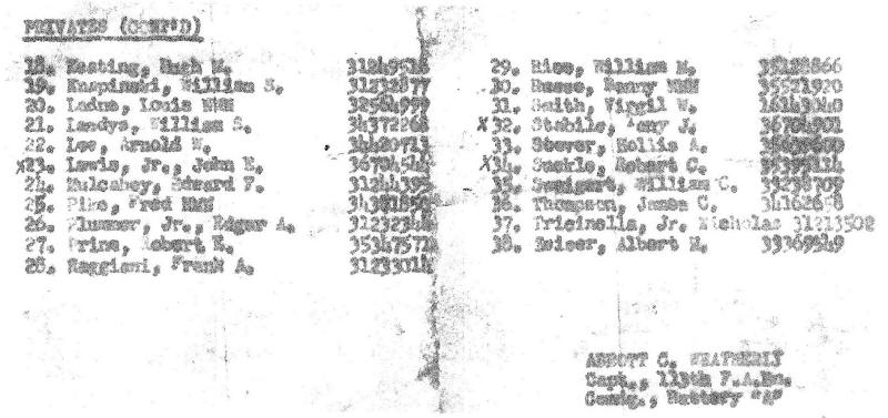Roster of 113 FABN/Battery A