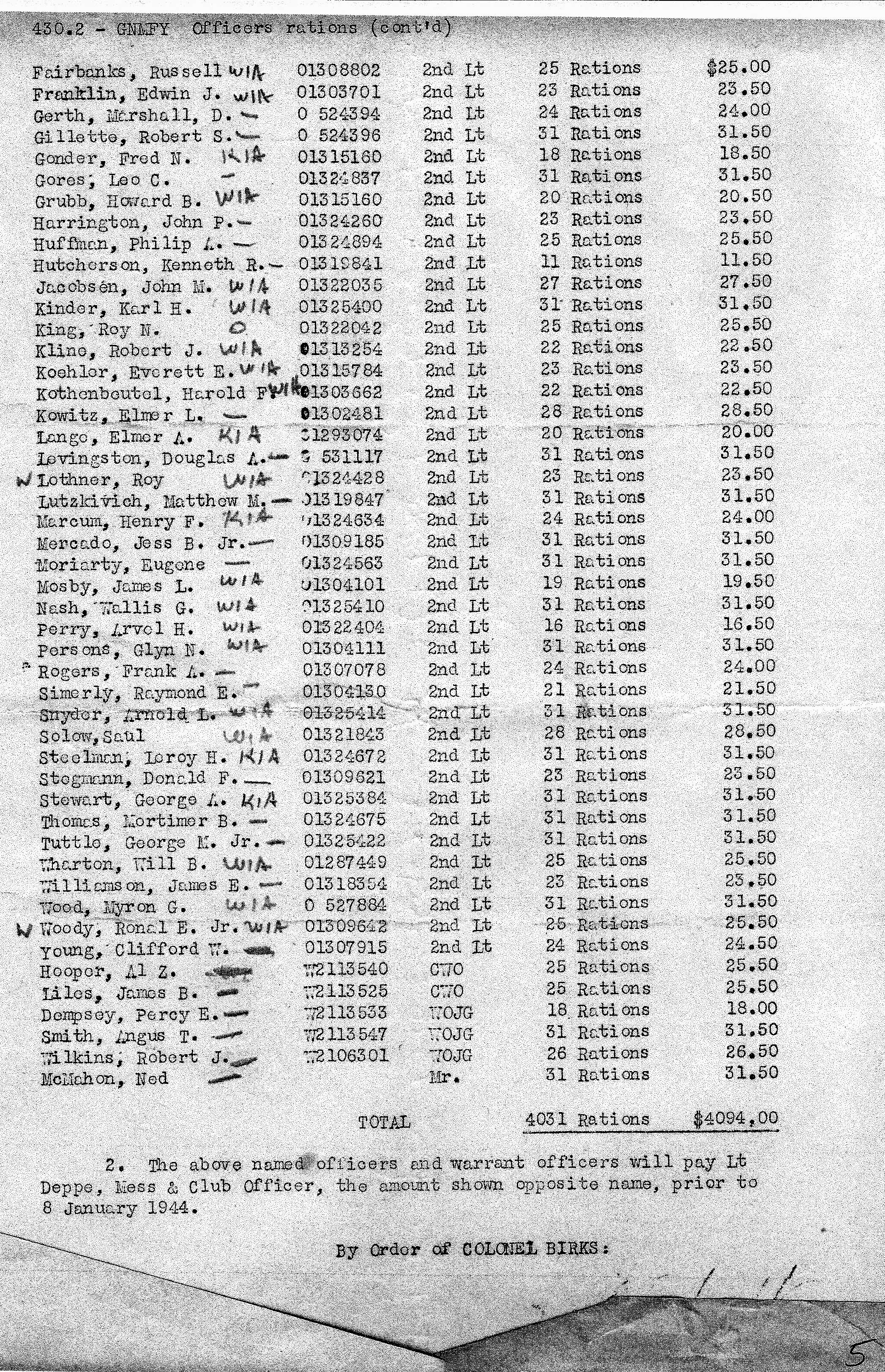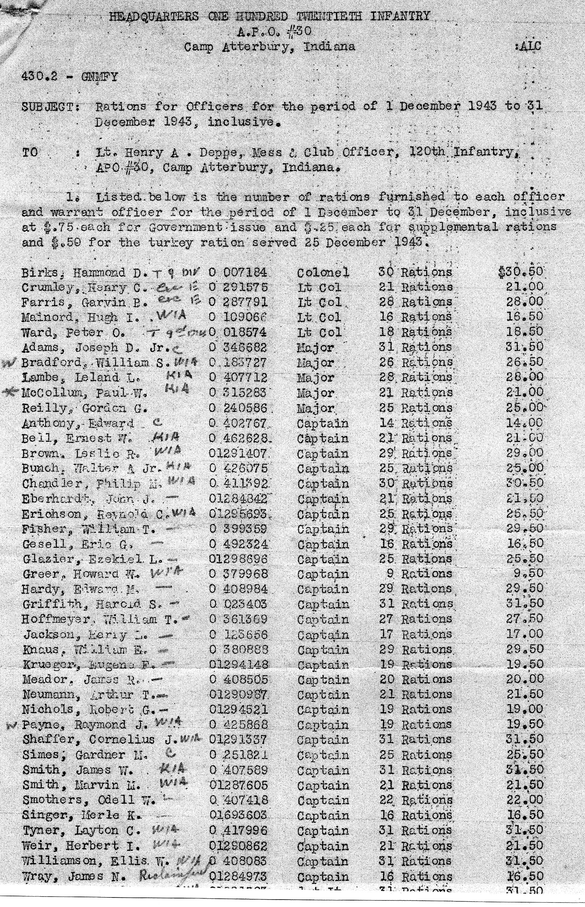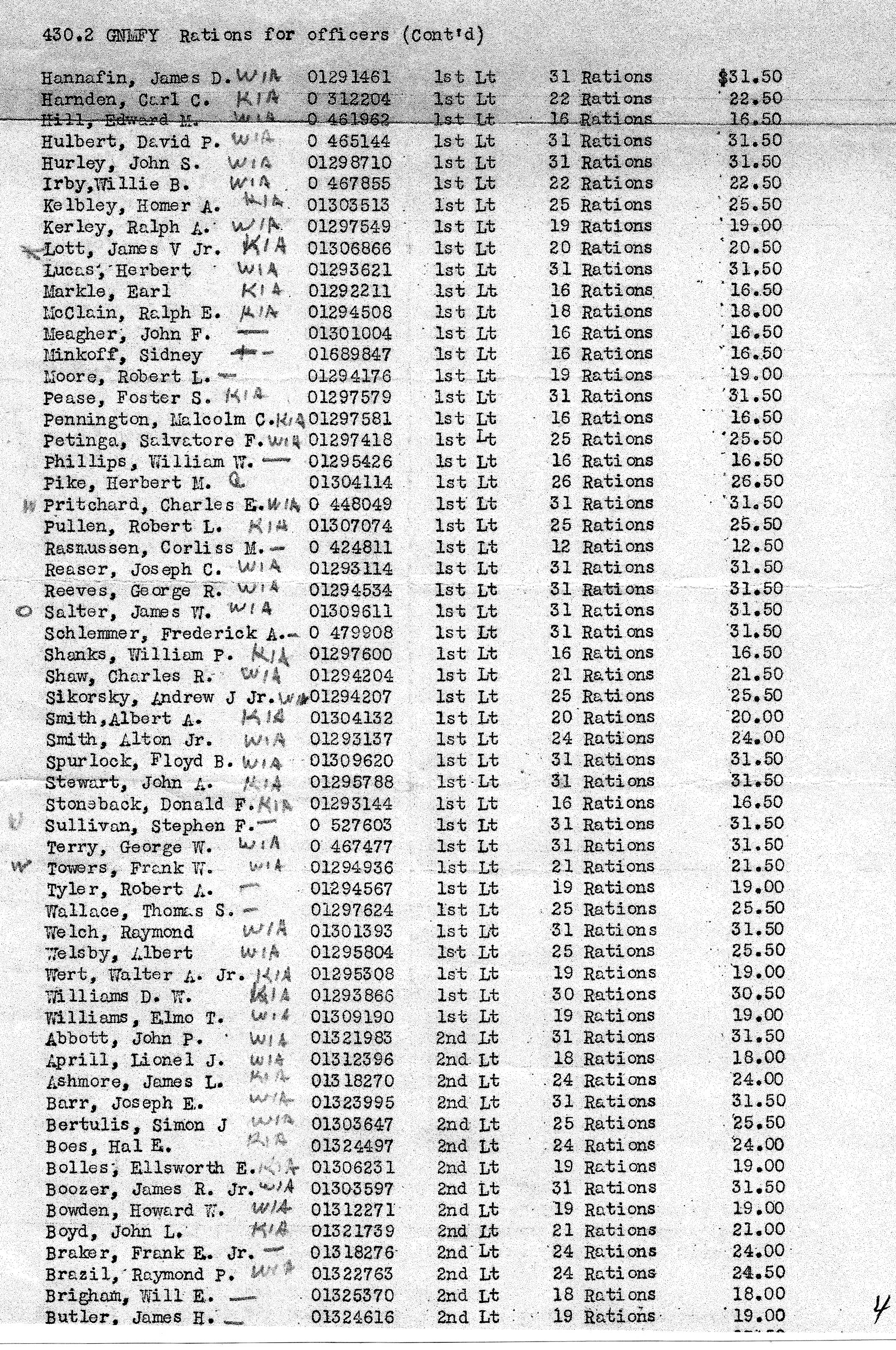 Rations for Officers