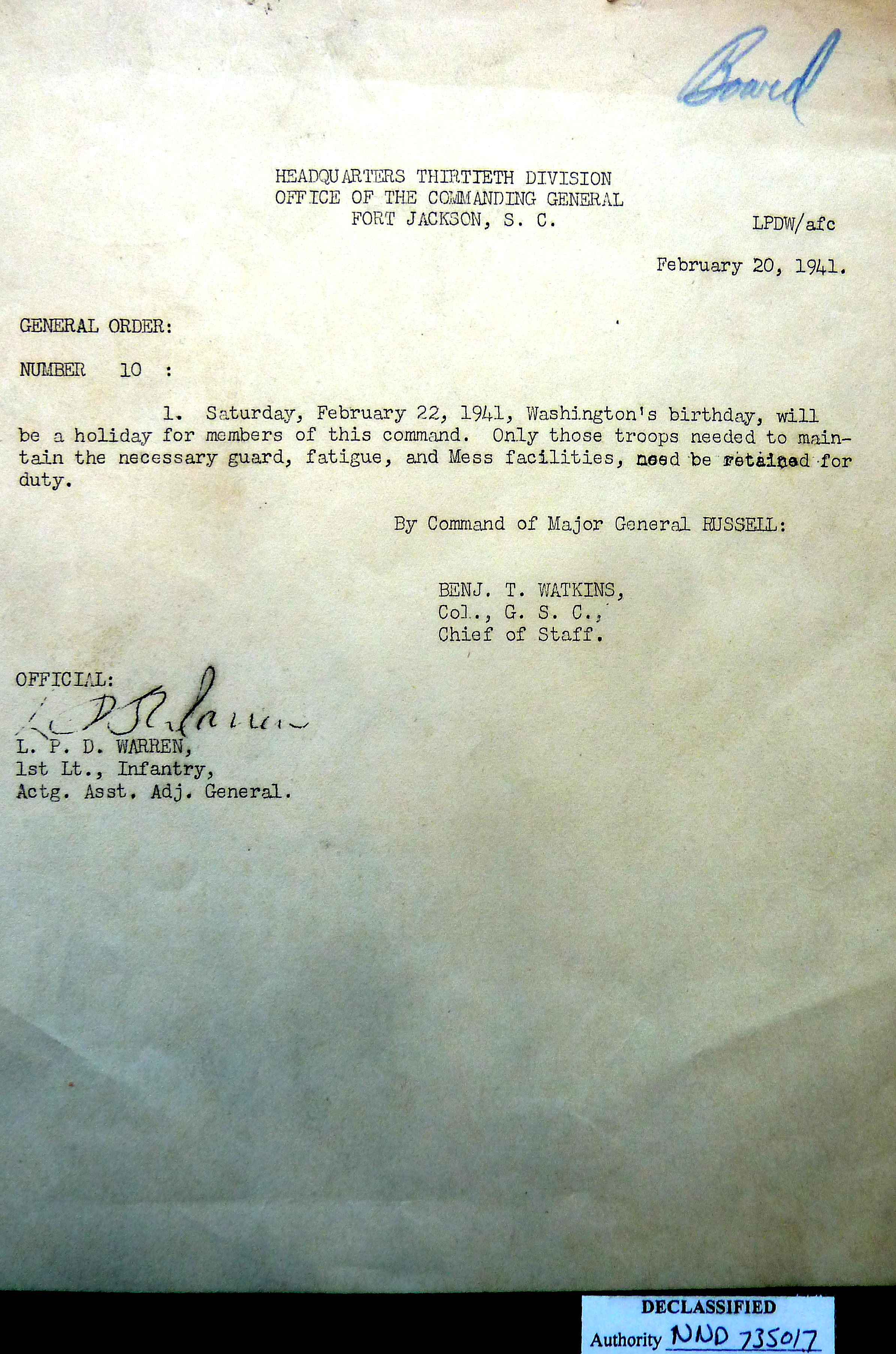 General Order # 1941-10