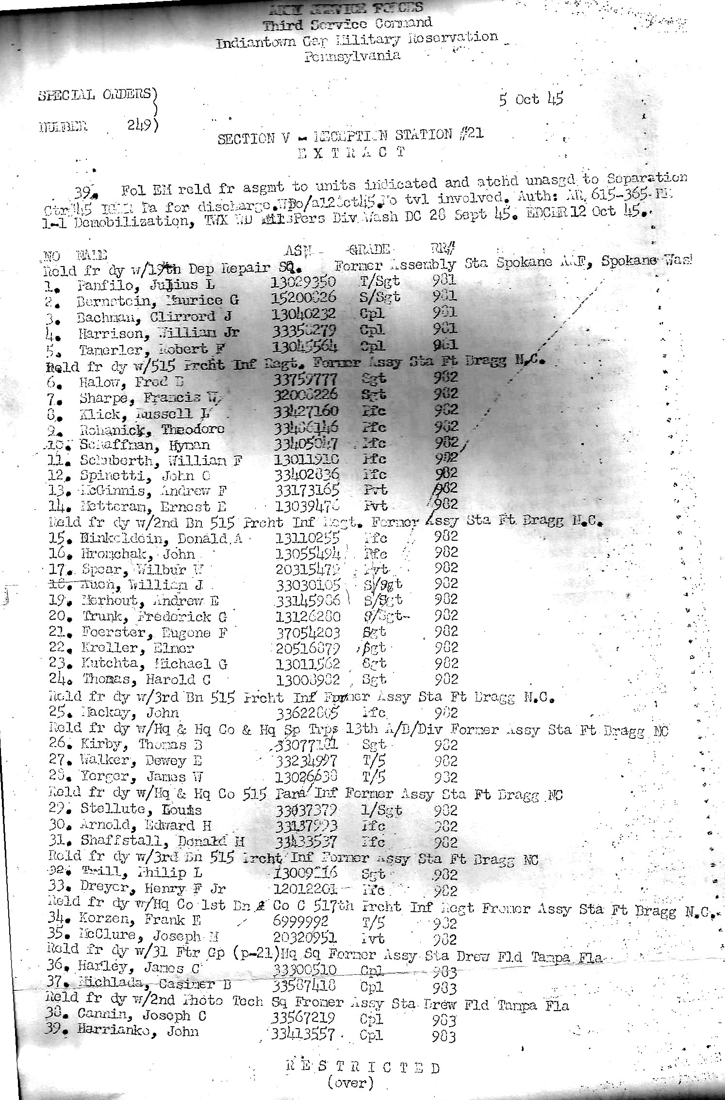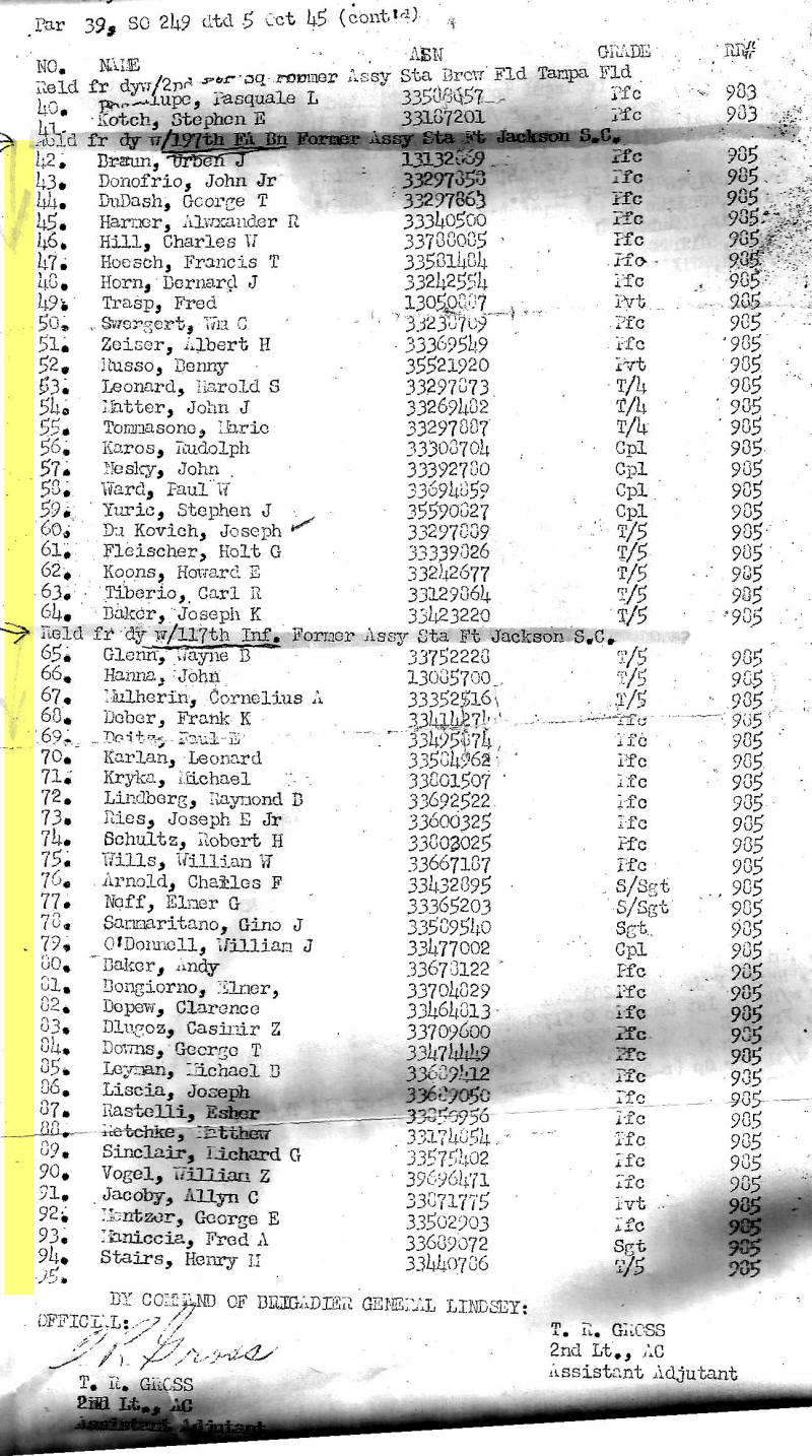 Arrival at Separation Station for Discharge Indiantown Gap Military Reservation 10/05/1945 (30th Division Members on Page 2)