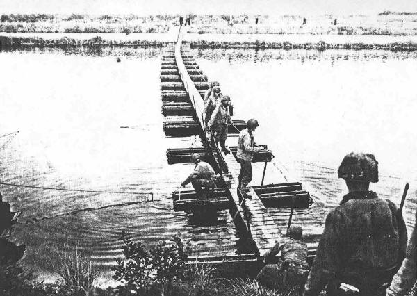 Footbridge constructed by 1st Platoon, Company A, across L'Amblave
