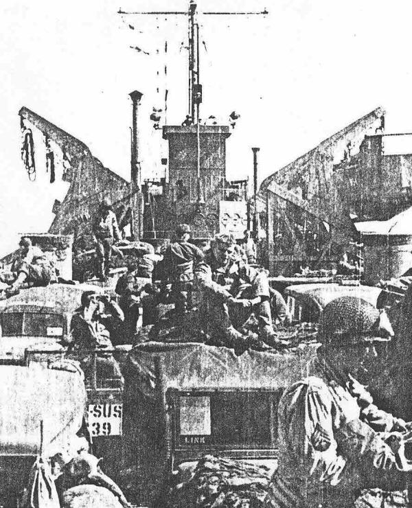 H & S Company, leaving England aboard LST for France, 14 June 1944. |