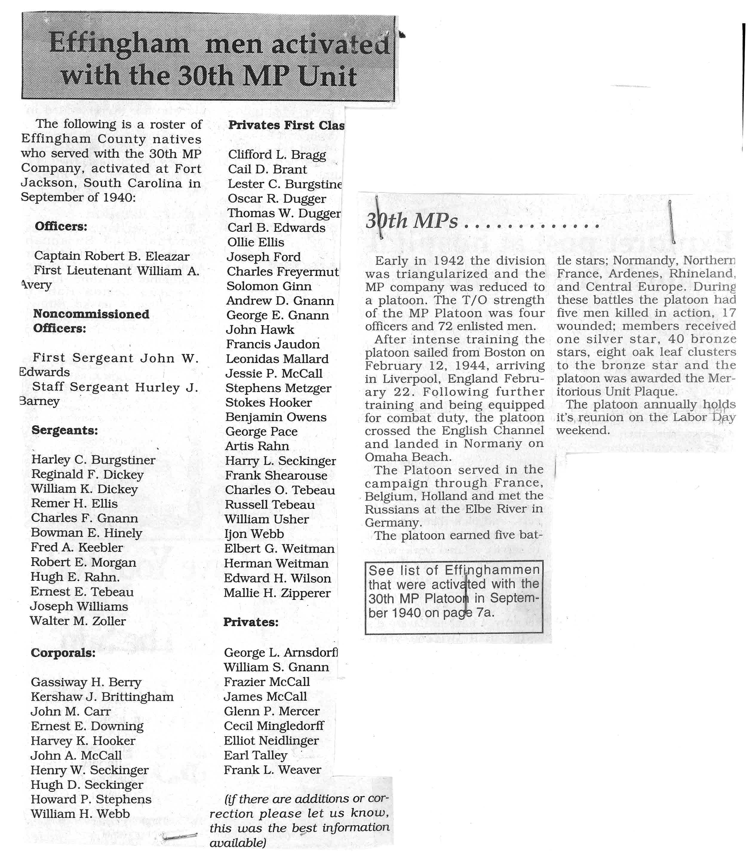 out to the 30th M.P. Platoon members who are members of the 30th Infantry