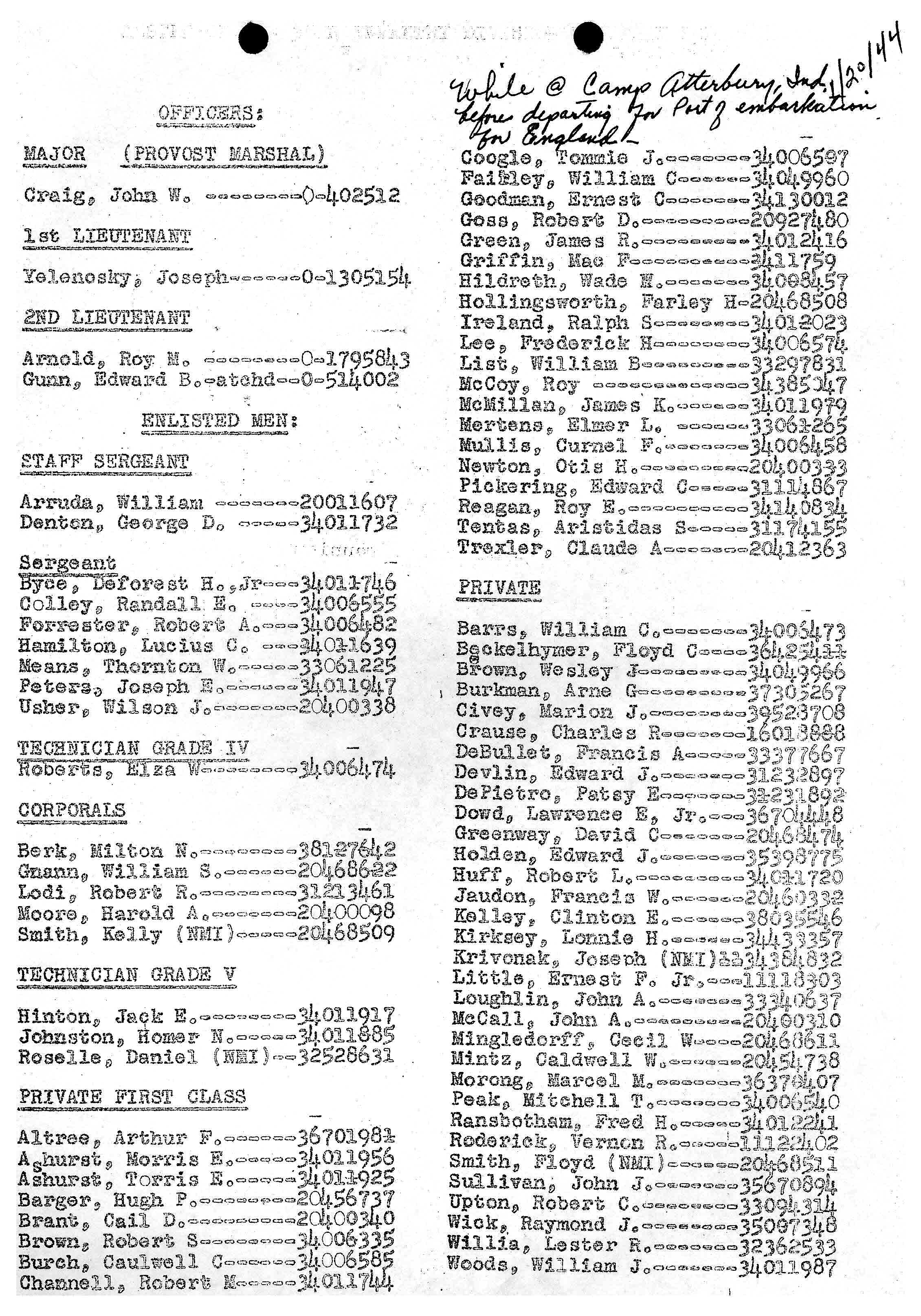 the 30th had moved to Camp Atterbury, Indiana, the military police platoon