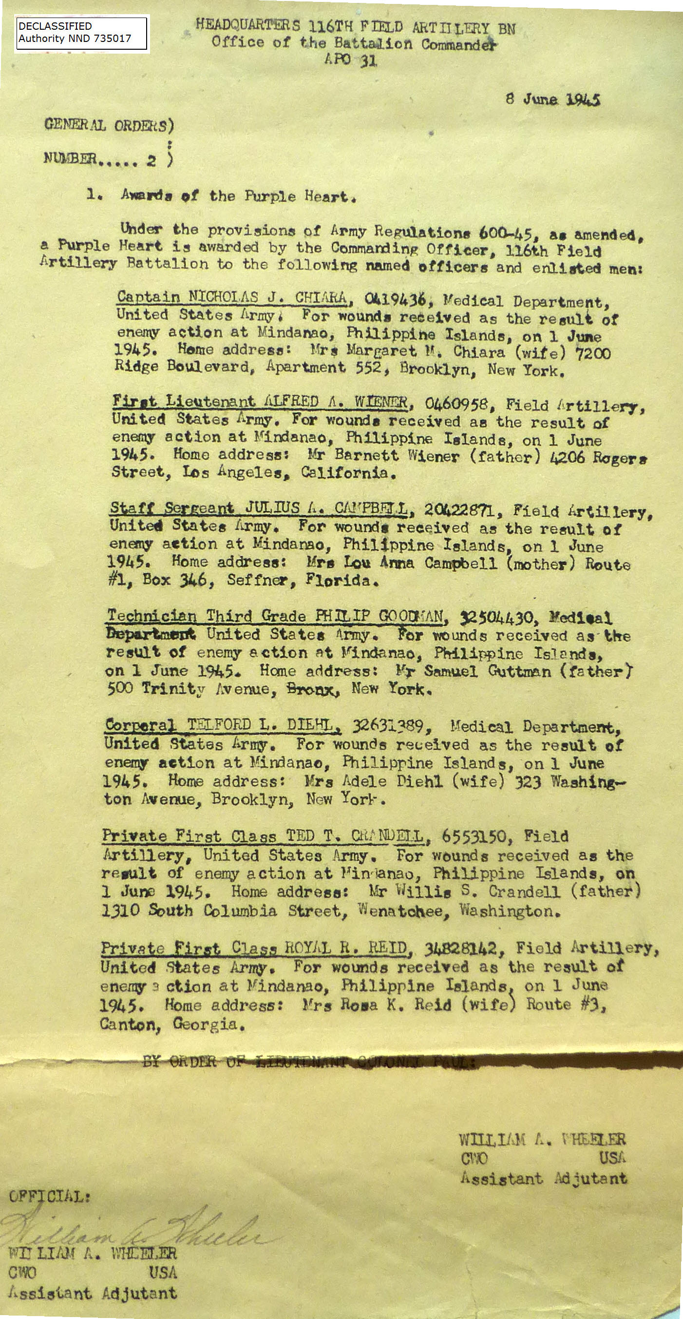 1945-002 | 06/06/1945 | Purple Hearts |
