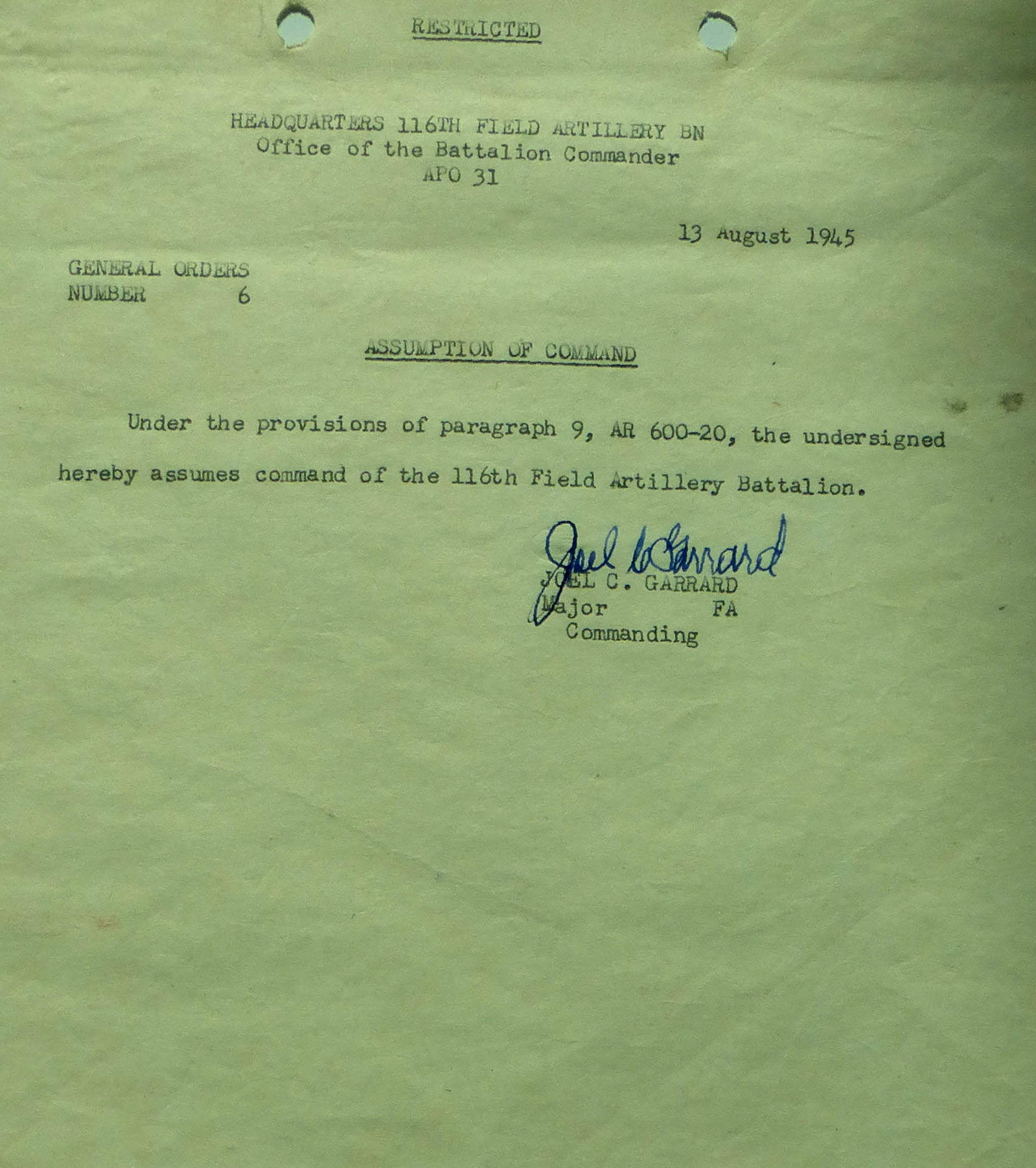 1945-006 | 08/13/1945 | Assumption of Command |