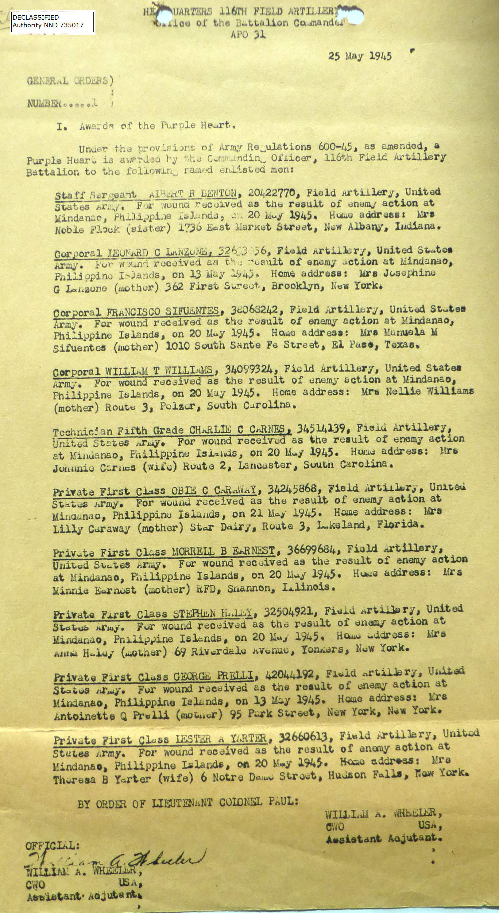 1945-001 | 05/25/1945 | Purple Hearts |