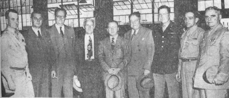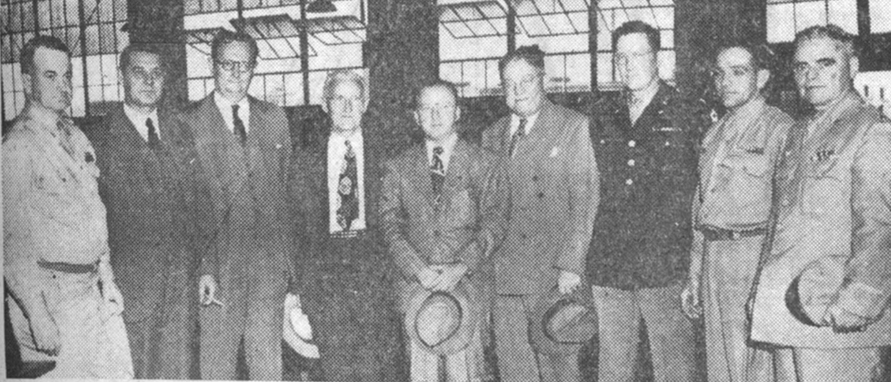 Franklin Evening Star - 29 September 1945 Congressmen, Gov. Gates Tours Atterbury Separation Center Congressional and Indiana dignitaries visited lilt Atterbury lint N Separation ii. l Center this week, the congressional members of the House Military Affairs Committee, were invited by the War Department to tour the center here. Pictured left to right are: Brig. Gen. Ernest A. Bixby, Atterbury Post Commander: Rep. Forest Harness of Indiana: Rep. Overton Brooks of Louisiana; Rep. Charles Elision of Ohio; Rep. Henry U. Lareade, Jr., of Louisiana: Gov. Ralph F. Gates of Indiana: Col. Richard W. Cooper. Director of Personnel, Fifth Service Command: Lt. Col. Bernard C. Knestrick, Executive Officer, War Department Personnel Center: Maj. David C. Hale, Legislative Liaison Officer. Washington, D. C. Getting an "inside" picture of the