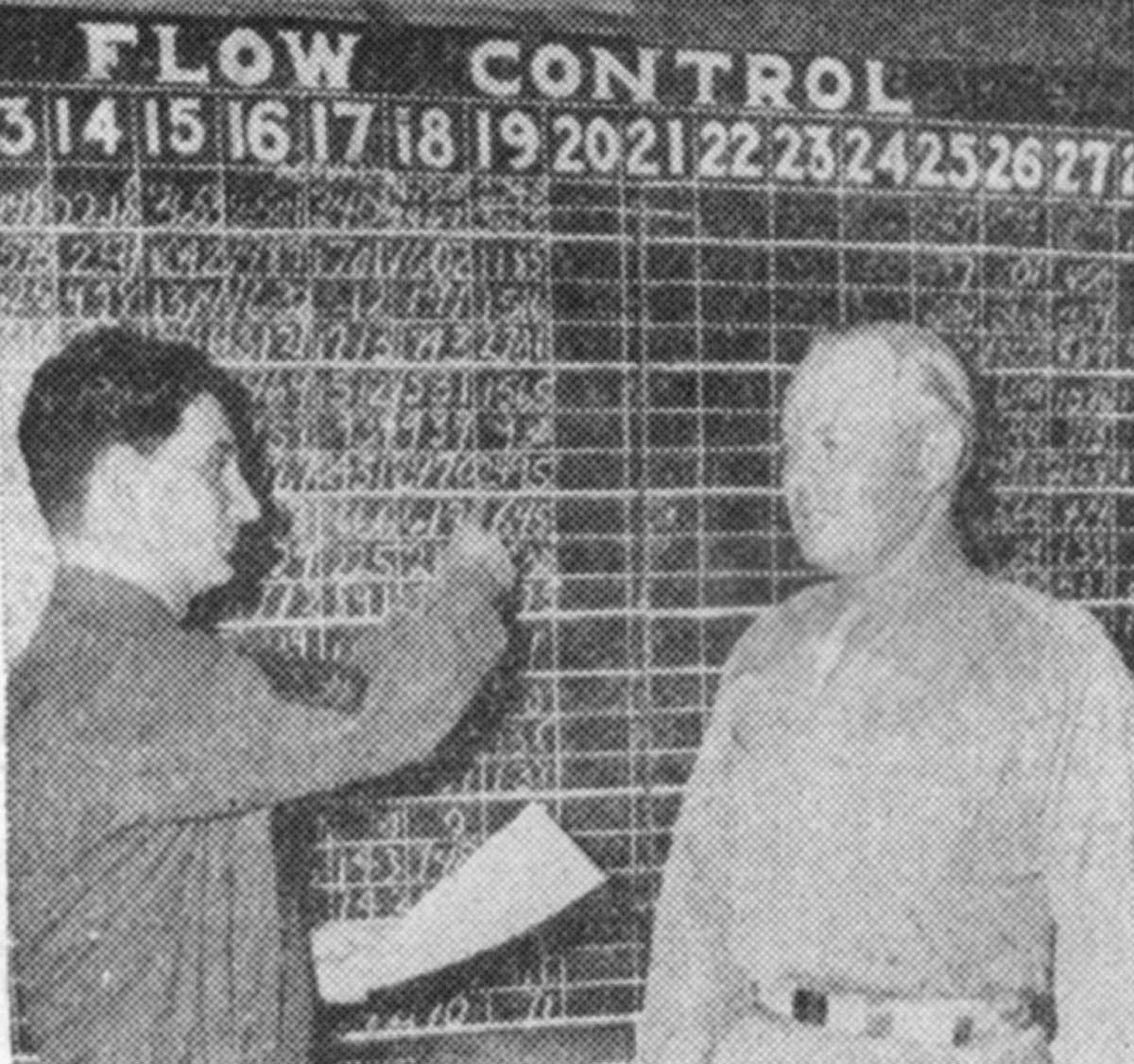 in what was at that time prophetically termed "the first trickle of what eventually will become a great stream. Checking the figures on the Flow Control board In Separation Center: headquarters are M/Sgt. Isadore Lichtman, left, and Maj. L. F. Benson, Adjutant. Col. Chester F. Allen, veteran of 30 months with Sixth Army Headquarters in the Pacific, assumed command of the Separation Center last week. A native of Beloit, Wis., where he was an Industrial engineer in civilian life. Col. Allen was called into service in October, 1940. as commanding officer of Co. L. 128th Regiment of the 32nd Division, then the Wisconsin National Guard. He was later assigned to Third Army Headquarters at Ft. Sam Houston, Tex., remaining there until transferring to Sixth Army Headquarters for shipment overseas. While overseas he served in Australia, New Guinea, Leyte and Luzon. He left Luzon six weeks ago. Col. Allen is a graduate of Beloit College, where he starred in football and basketball in 1932 and 1933, accepting a position as assistant coach the following two years. |