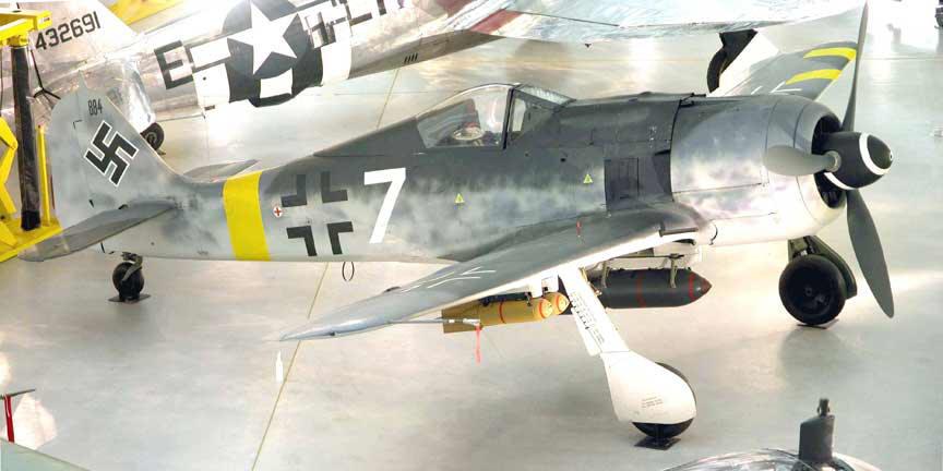 A ground floor view. A beautifully proportioned and aerodynamically clean airframe. The tight cowling around the BMW 801 radial engine blended well with the over all contours of the airframe, but caused no end of problems with engine overheating.