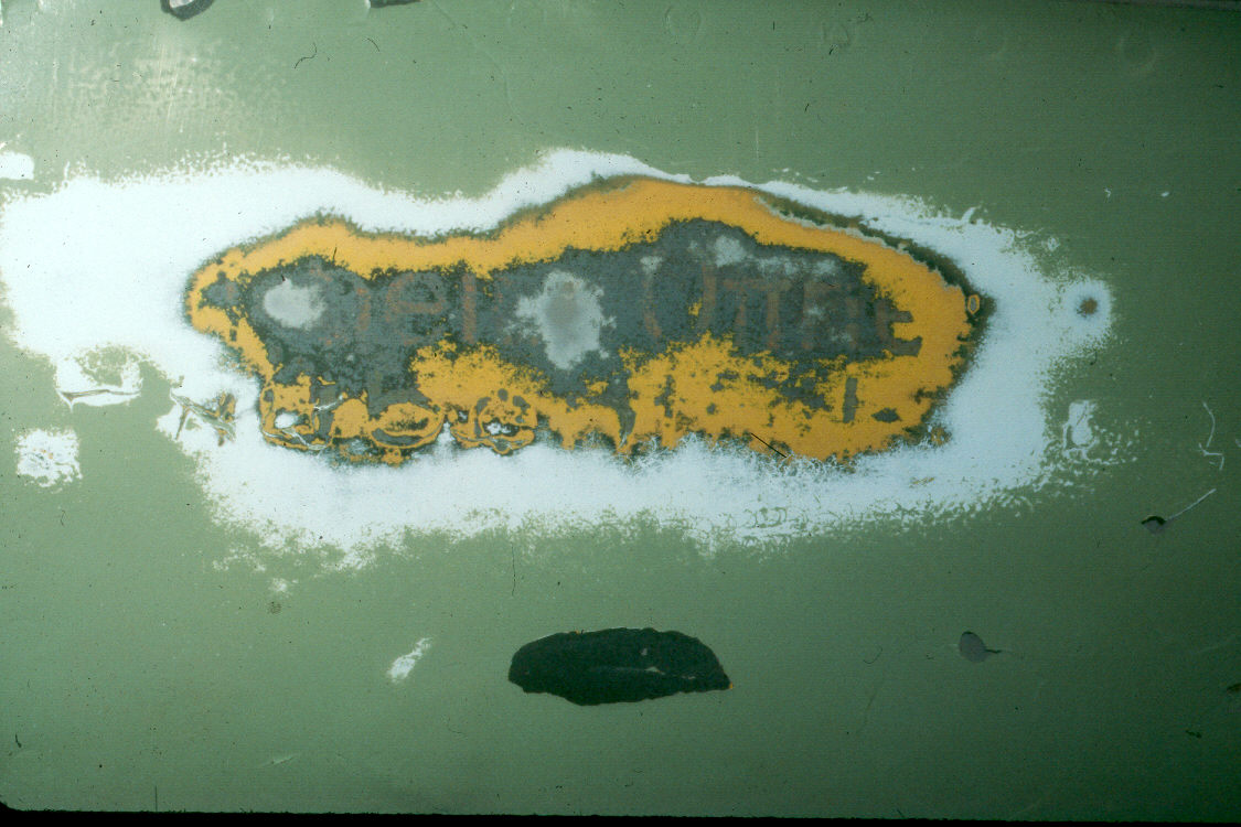layers of old paint to uncover the original markings. “beim Offnen” is