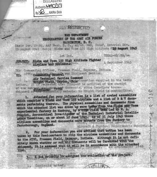 | Below | 07/31/1945 Notice to Freeman Field of the planes' shipment to them. |