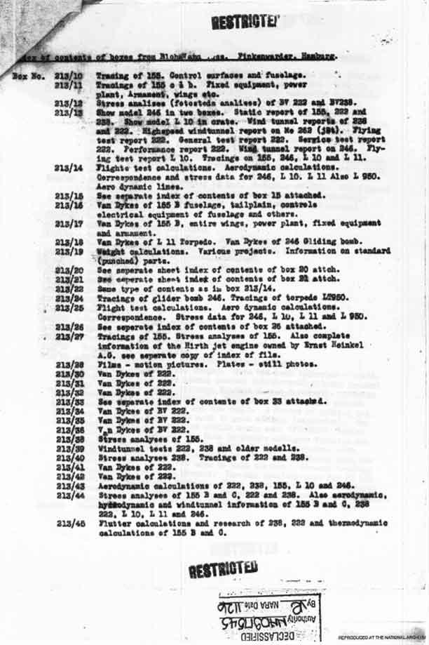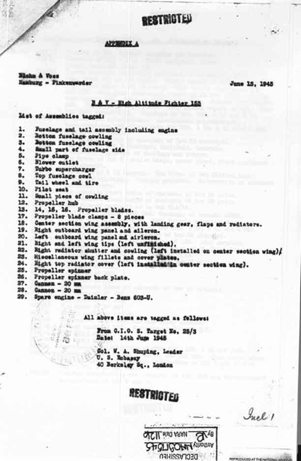 FE-505 Bv-155B V3 This prototype was captured before it was completed , and came to the US by way of the Royal Aircraft Establishment in Farnborough , England, where it was on display in fall 1945. It was probably shipped to the US in early 1946, going to Park Ridge that summer, and subsequently to Silver Hill. It is presently in storage at the Paul E. Garber Facility. |