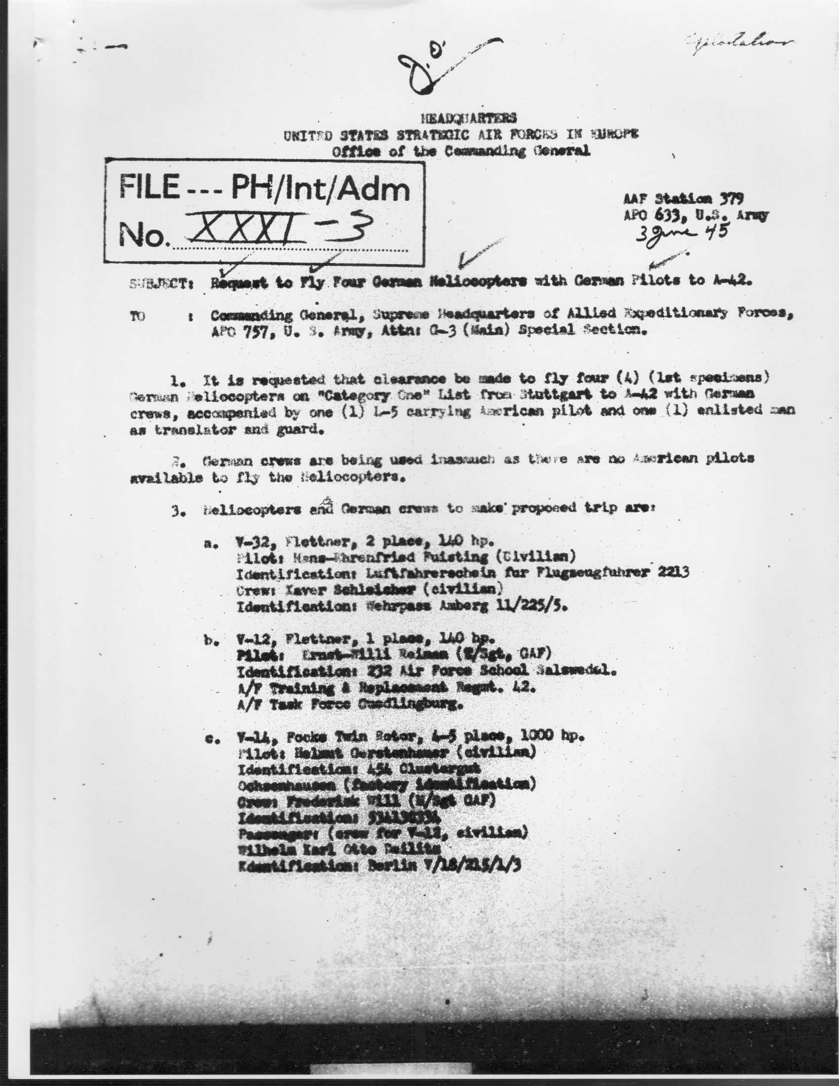 Request to Fly Four German Heliocopters