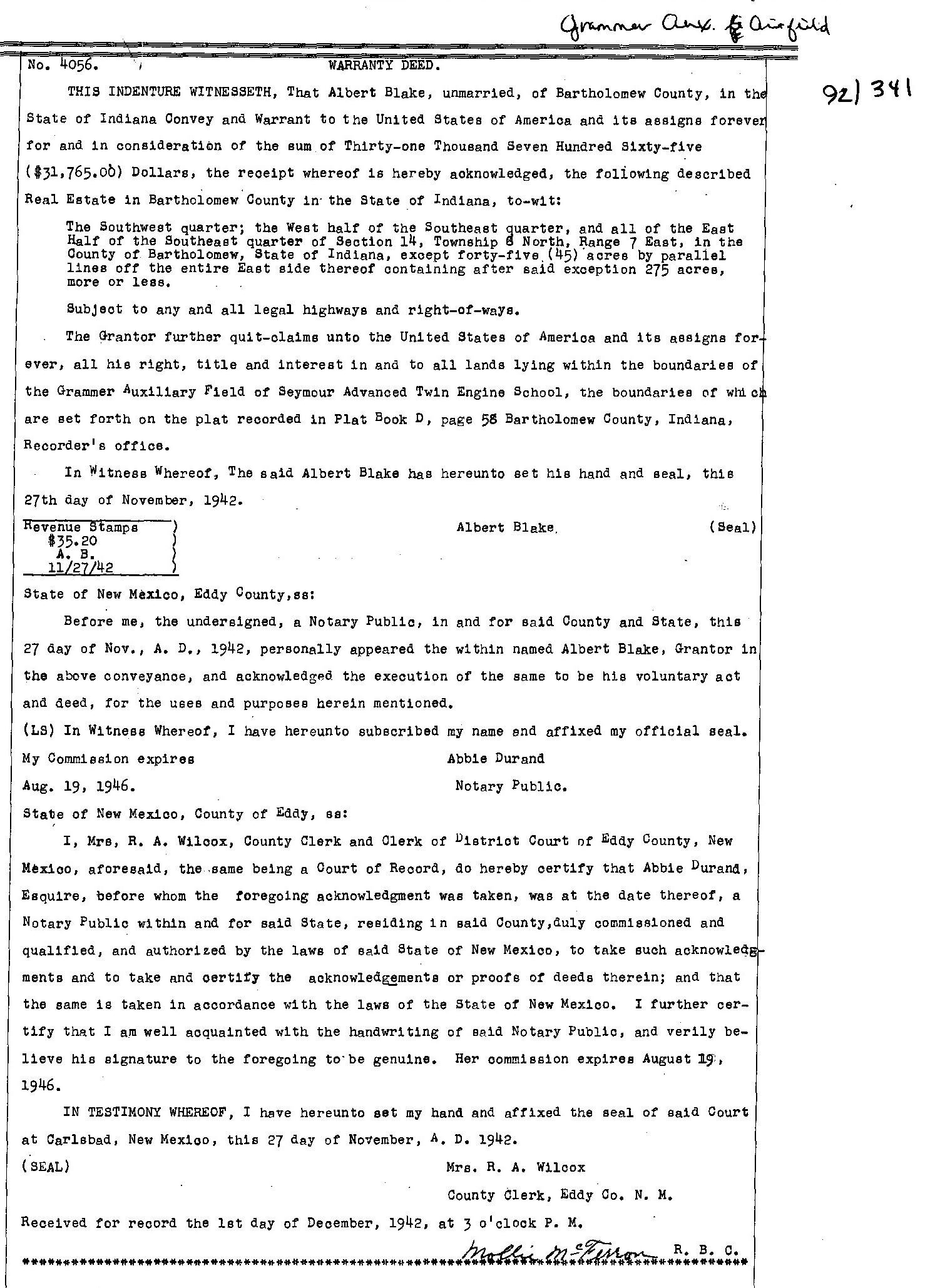 Grammer Field - Freeman Army Air Field Auxiliary No. 3, Grammer, IN