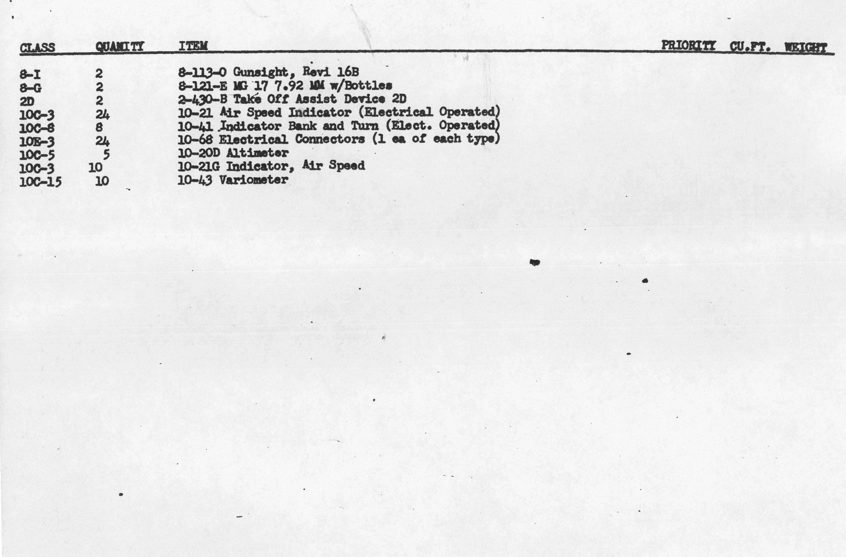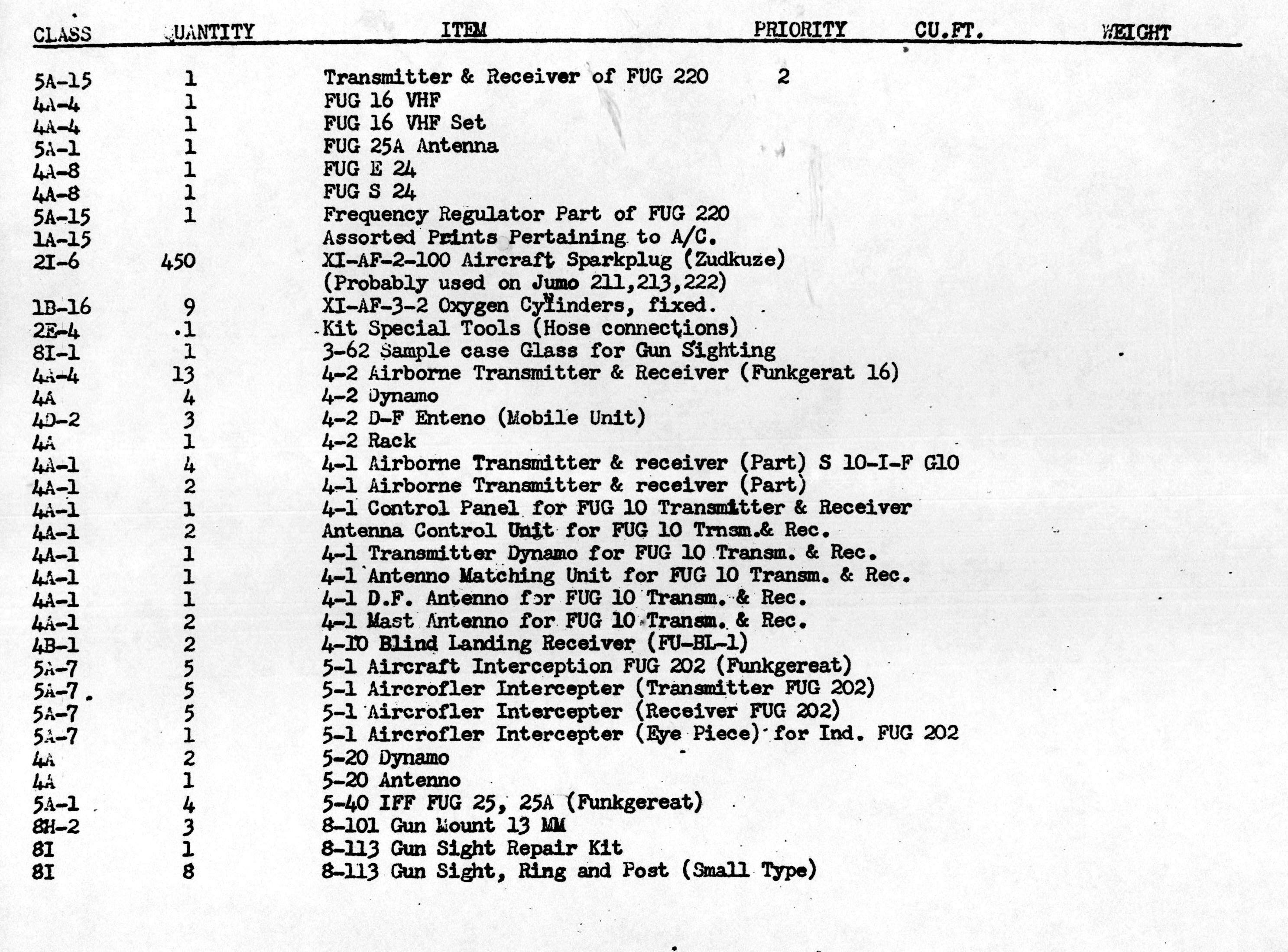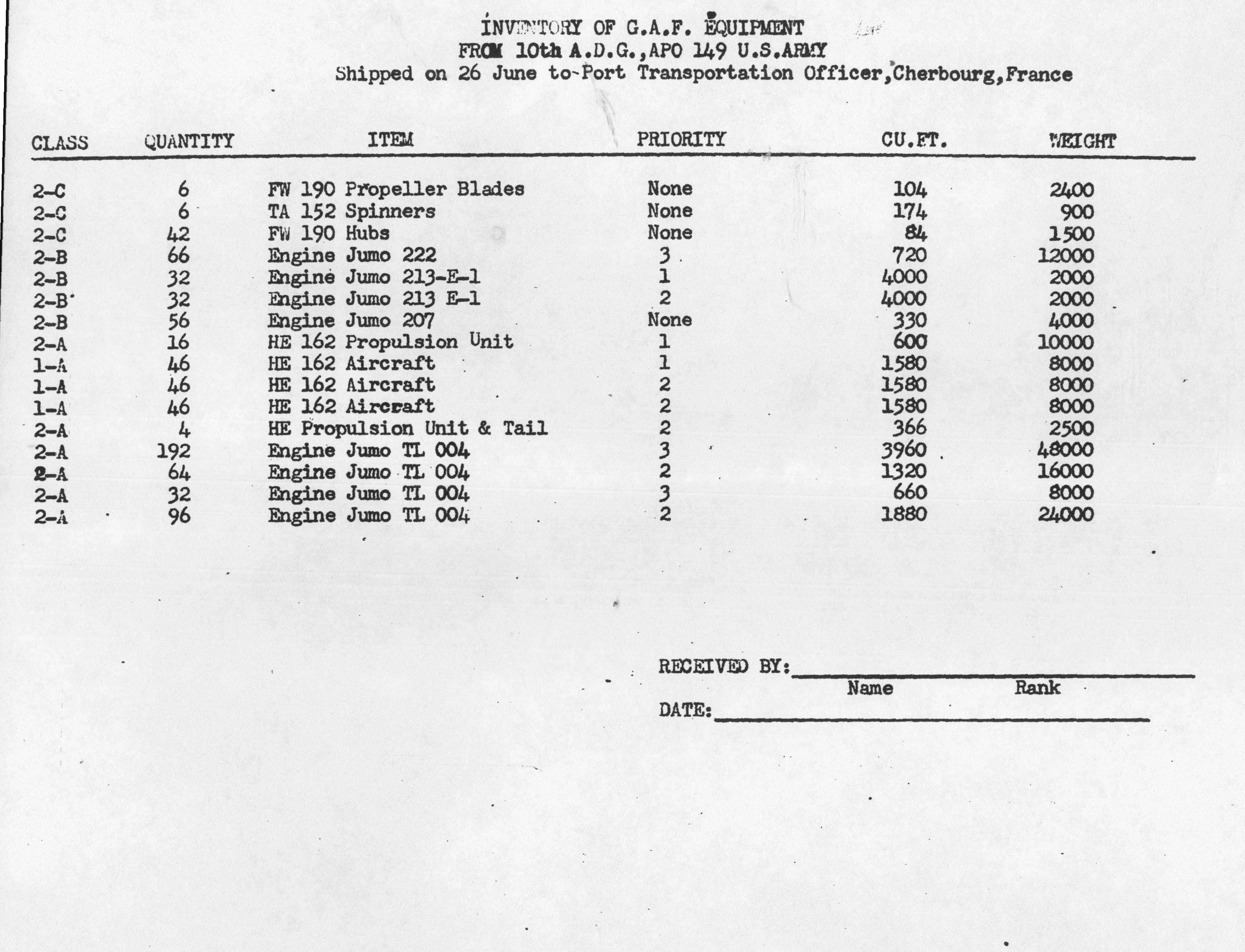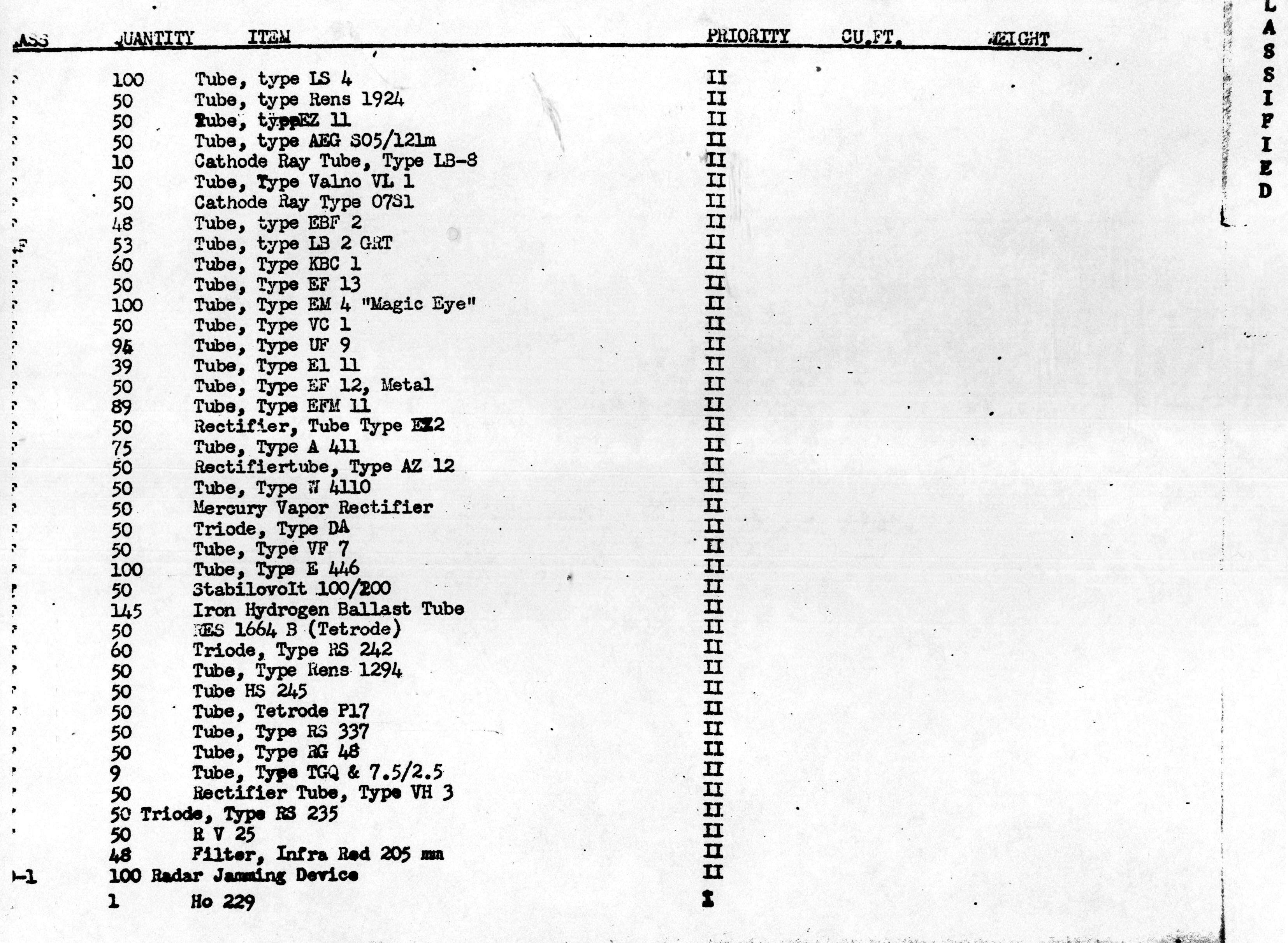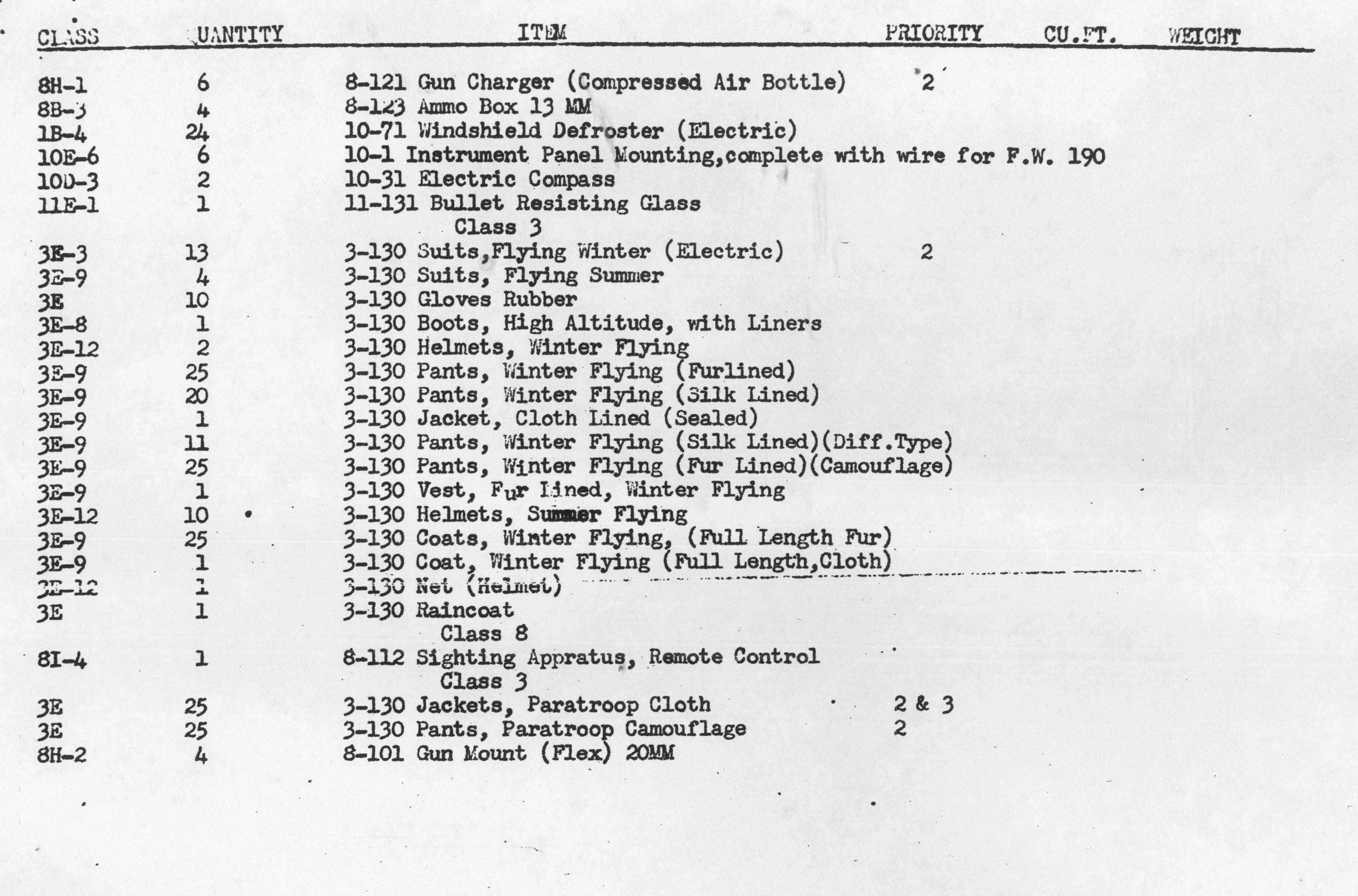 Inventory List of German Military Items Loaded Aboard the Liberty Ship Richard J. Gatling.