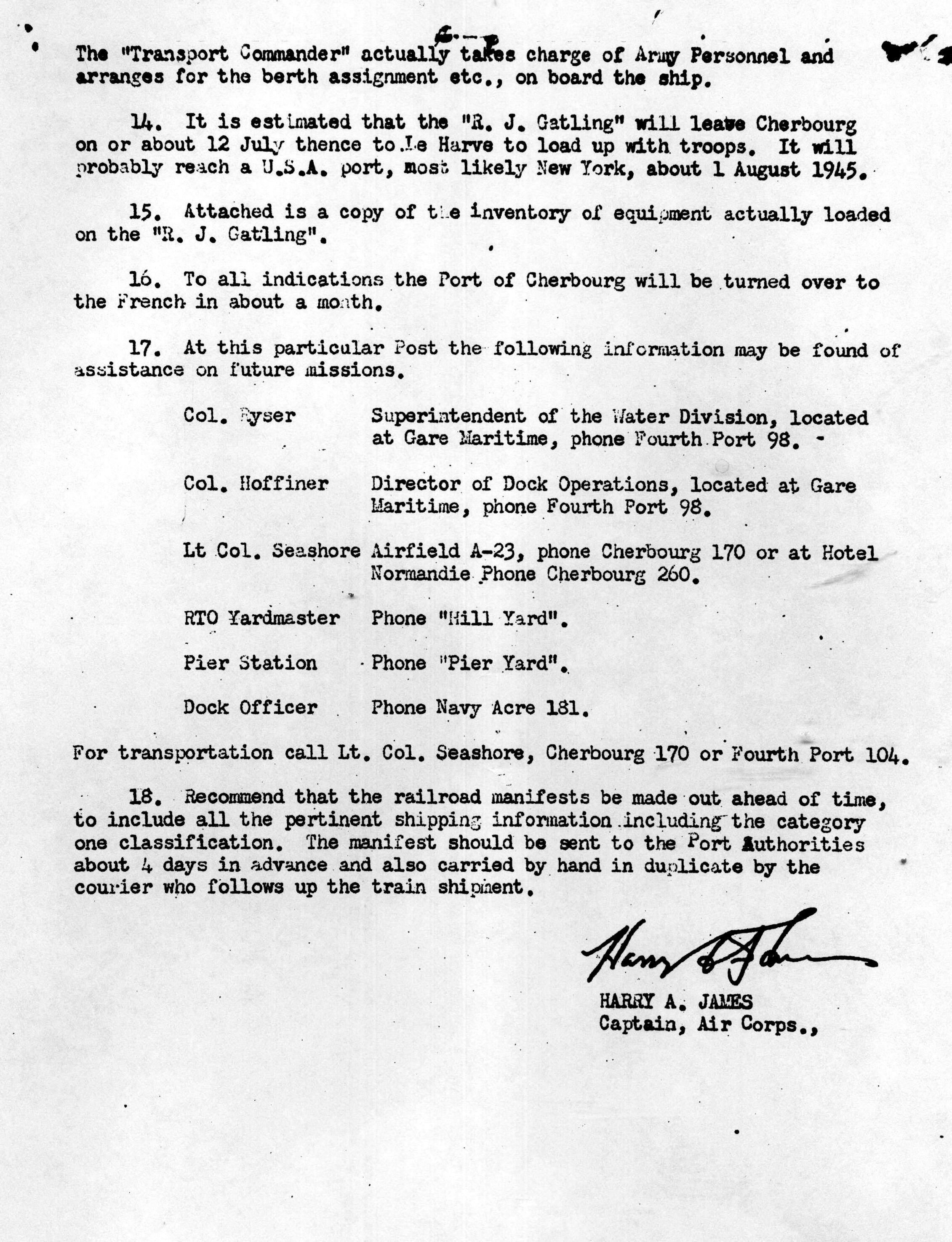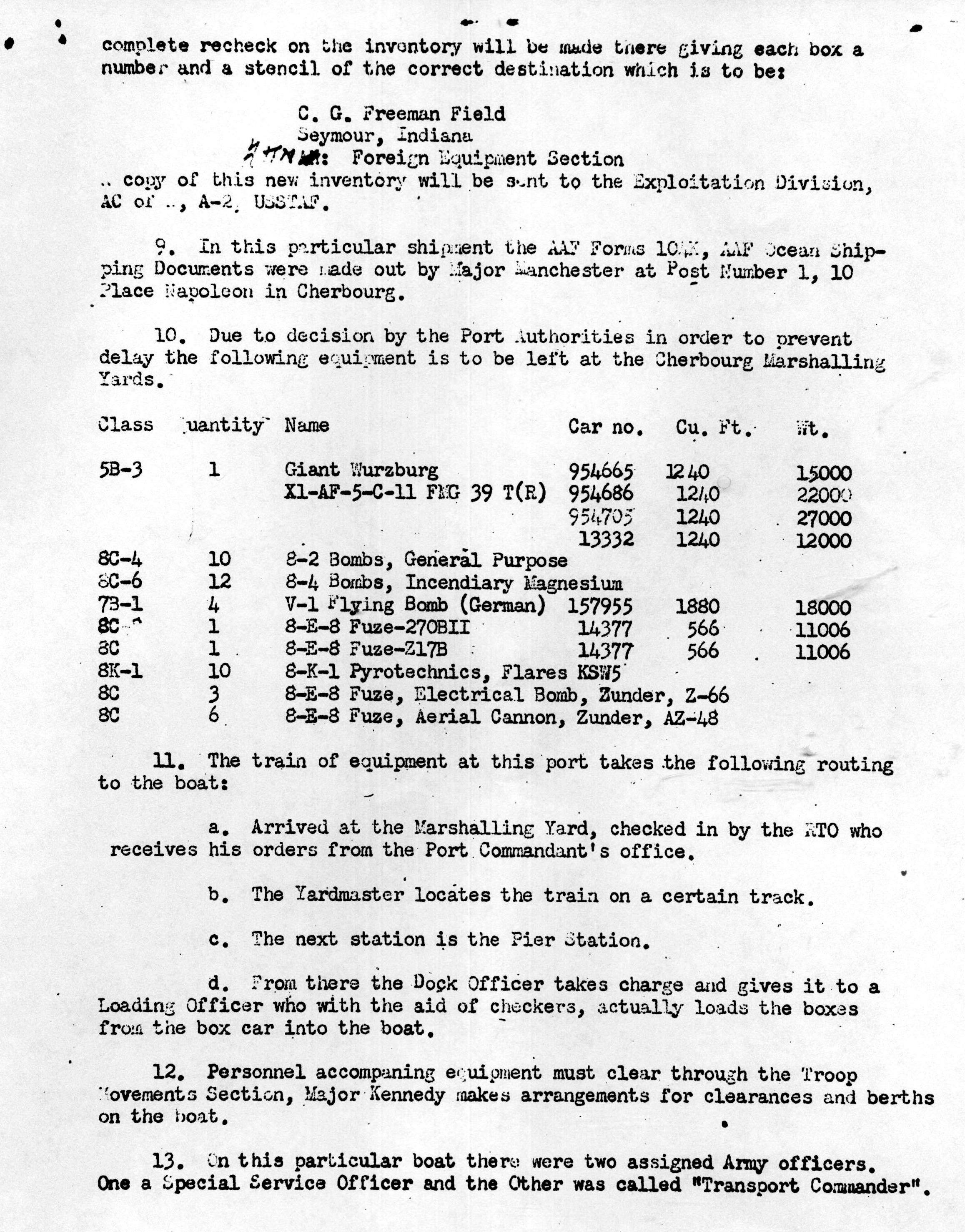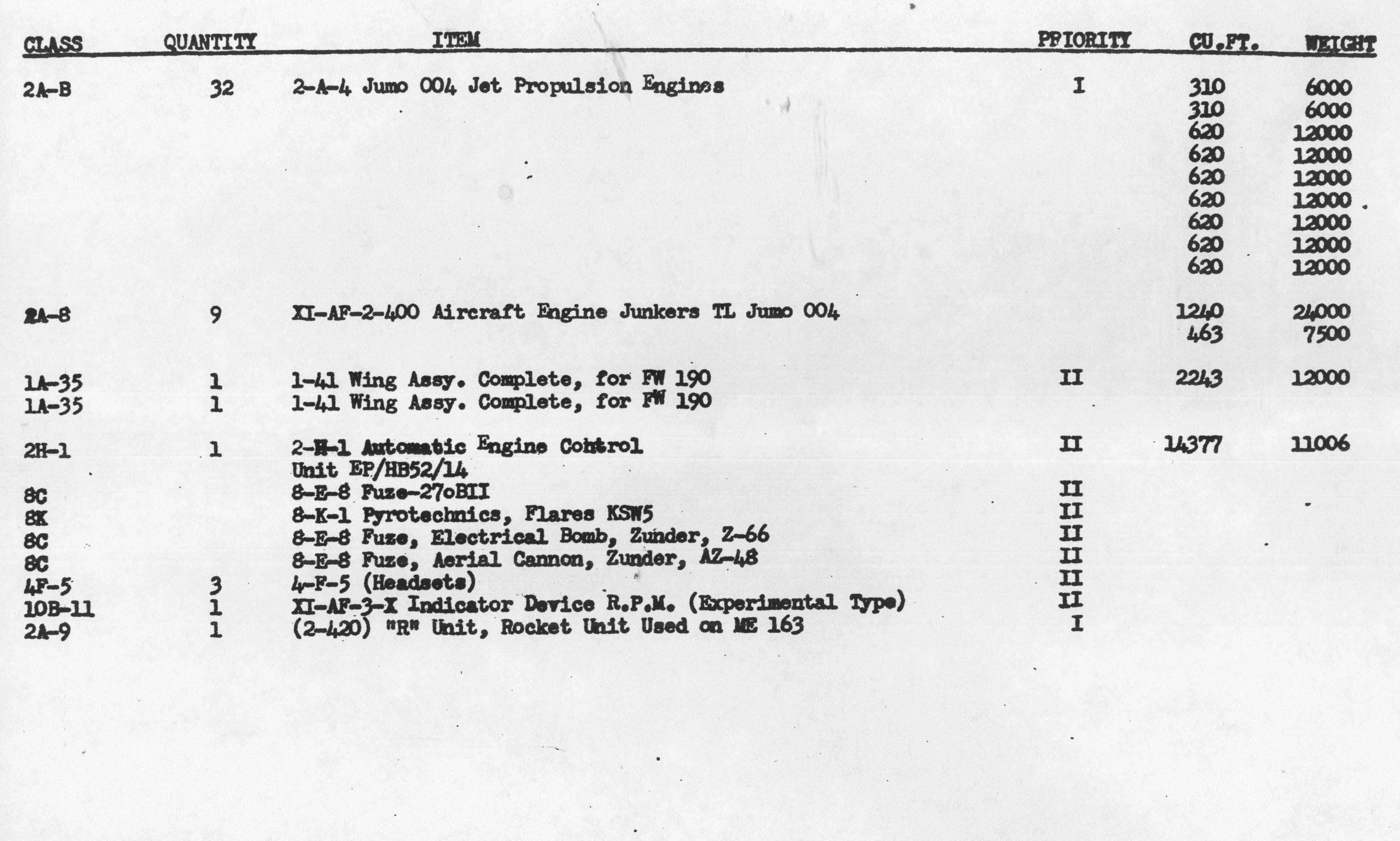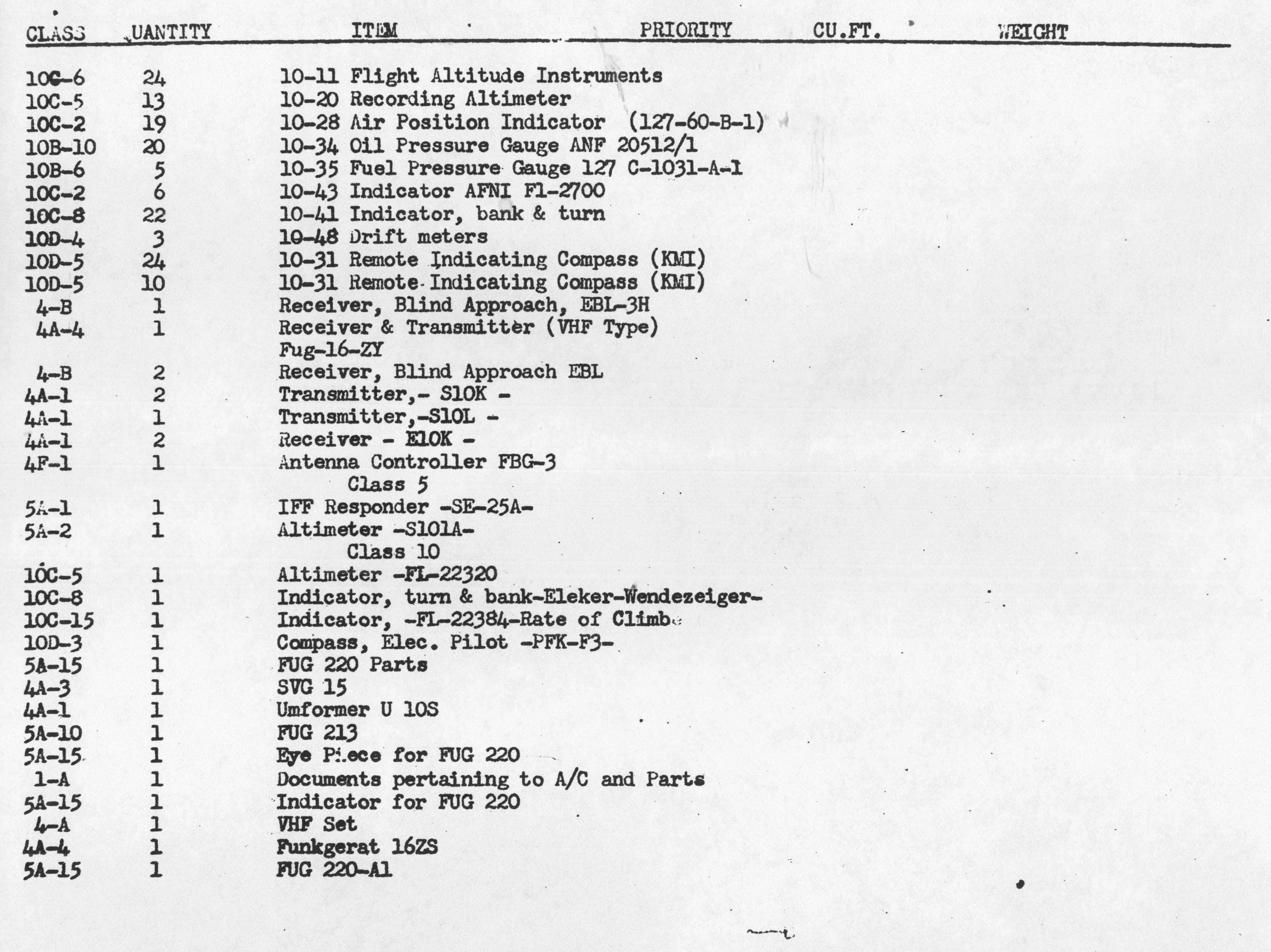 Inventory List of German Military Items Loaded Aboard the Liberty Ship Richard J. Gatling.