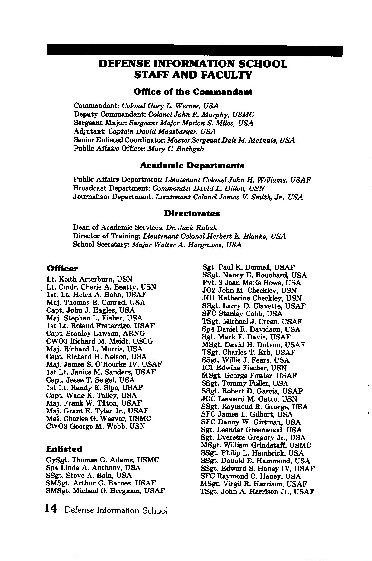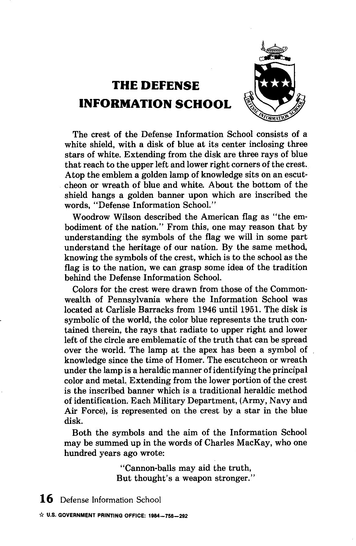 20th Anniversary Defense Information School Fort Benjamin Harrison 1964-1984