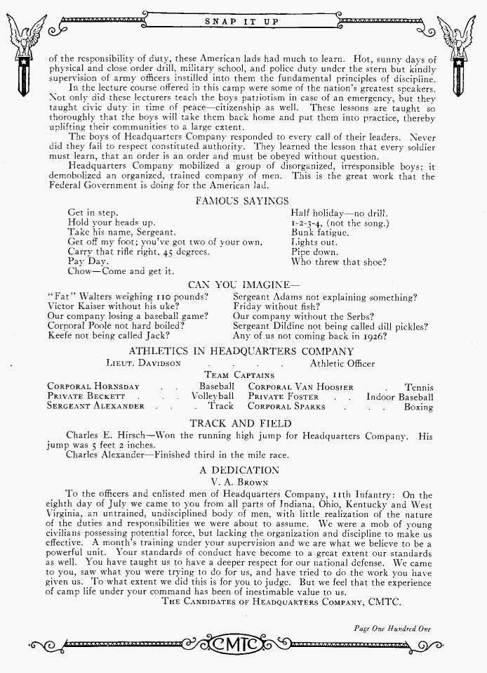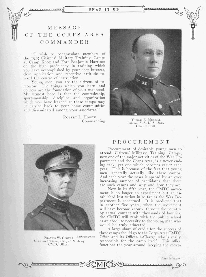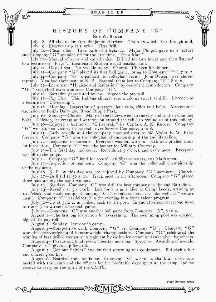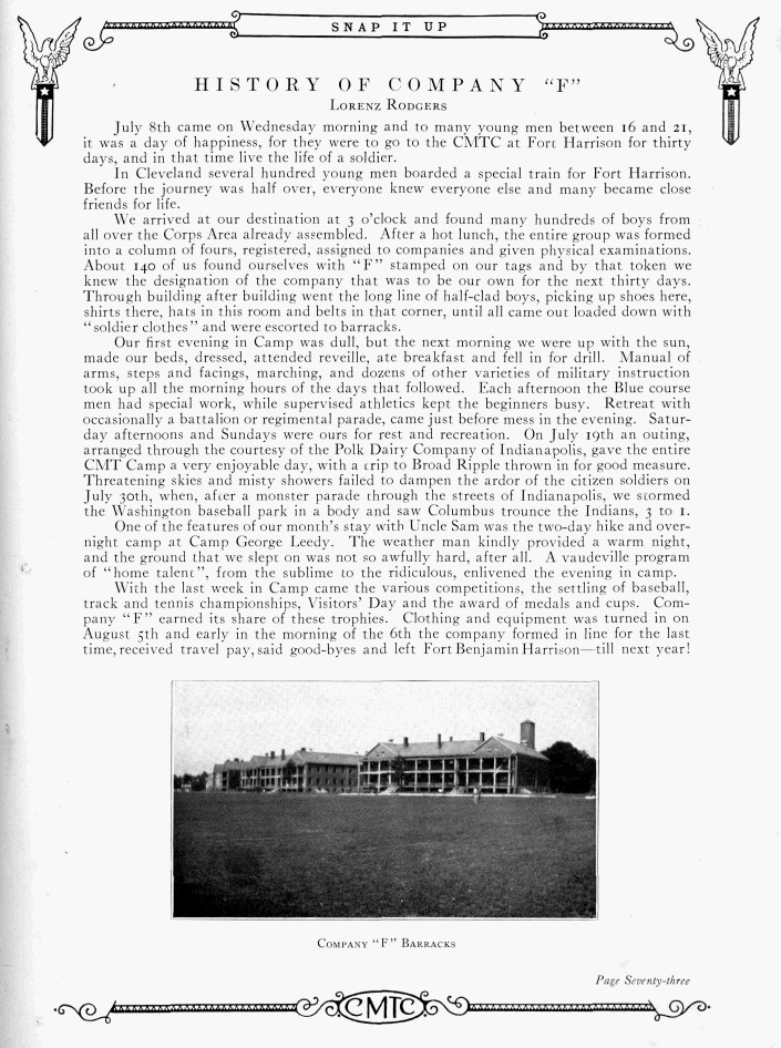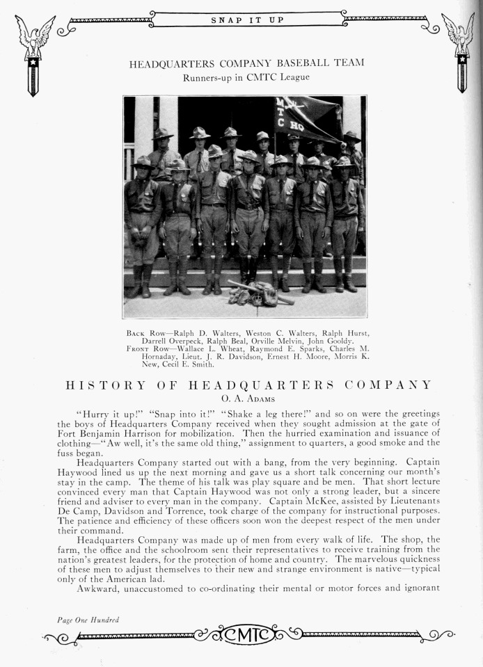 Snap It Up Fort Benjamin Harrison Citizen's Military Training Camp (CMTC) 1925