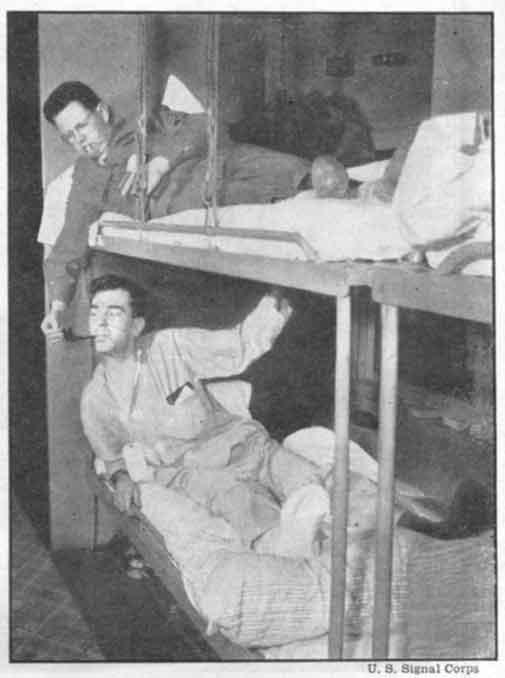 An attractive Red Cross girl made the rounds with cigarettes, magazines,