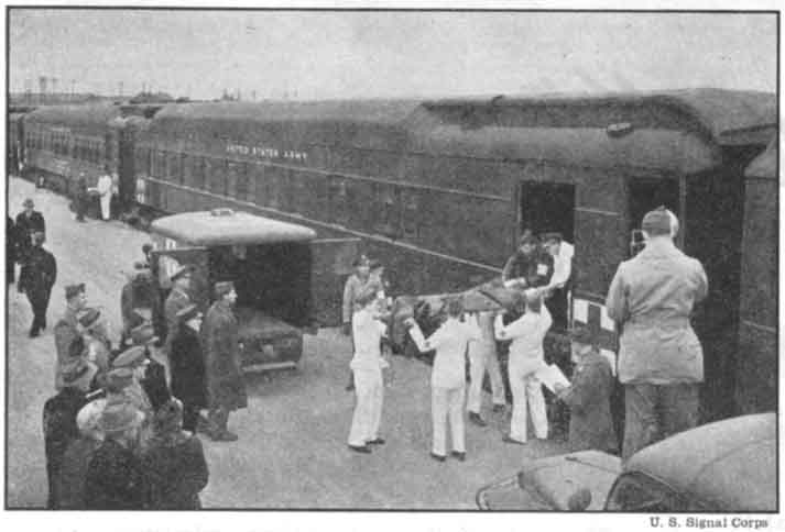 Silver Spring, Md., the hospital train stopped beside two rows of Army