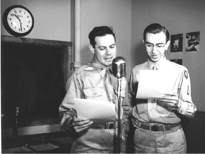 In July, Lt. Gillis attended AFRS School in Hollywood, and Pfc. Bob