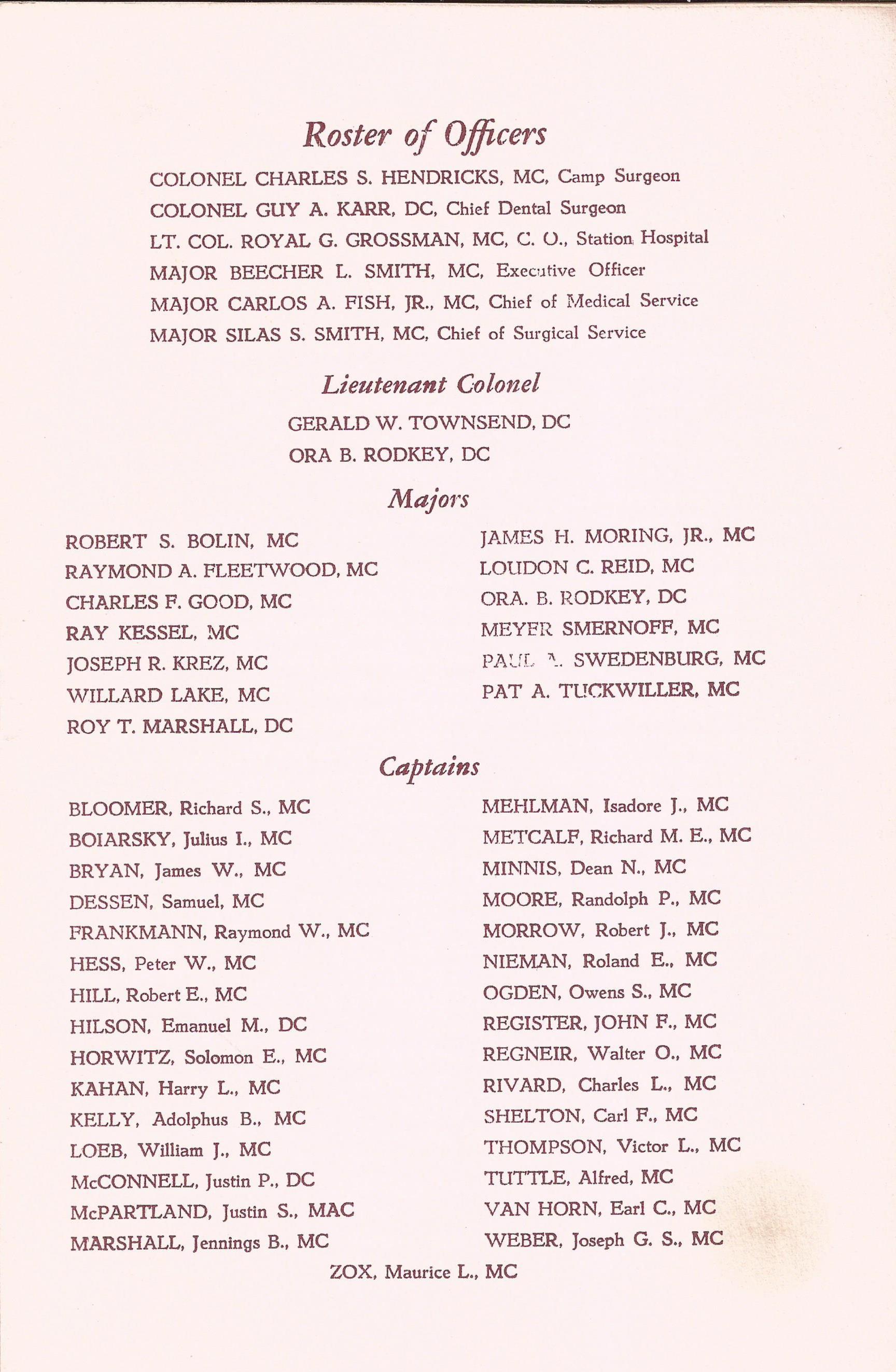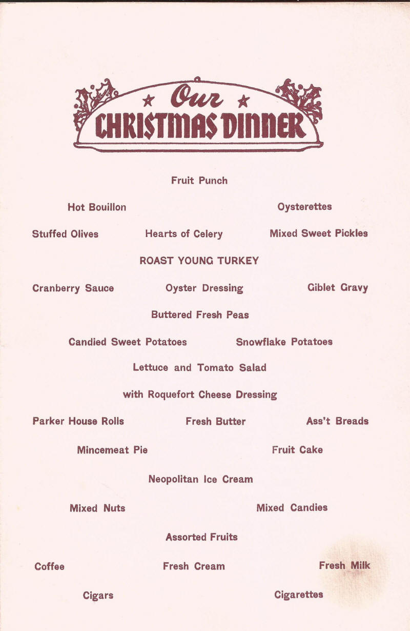 Christmas Menu Station Hospital 1942 Station Hospital was the forerunner of the Wakeman General & Convalescent Hospital