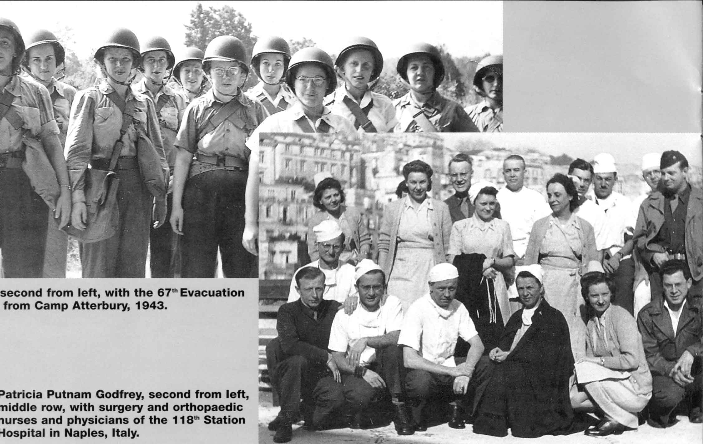 Six weeks later she and her cadre from the 118"' Station Hospital sailed on British ships to a beach just outside of Naples, Italy, where the German resistance was steadfast. She remembers it like it was yesterday. "I was frightened for the first time. We went ashore the hard way-at night wading through a mined beach. We were wide open walking targets."